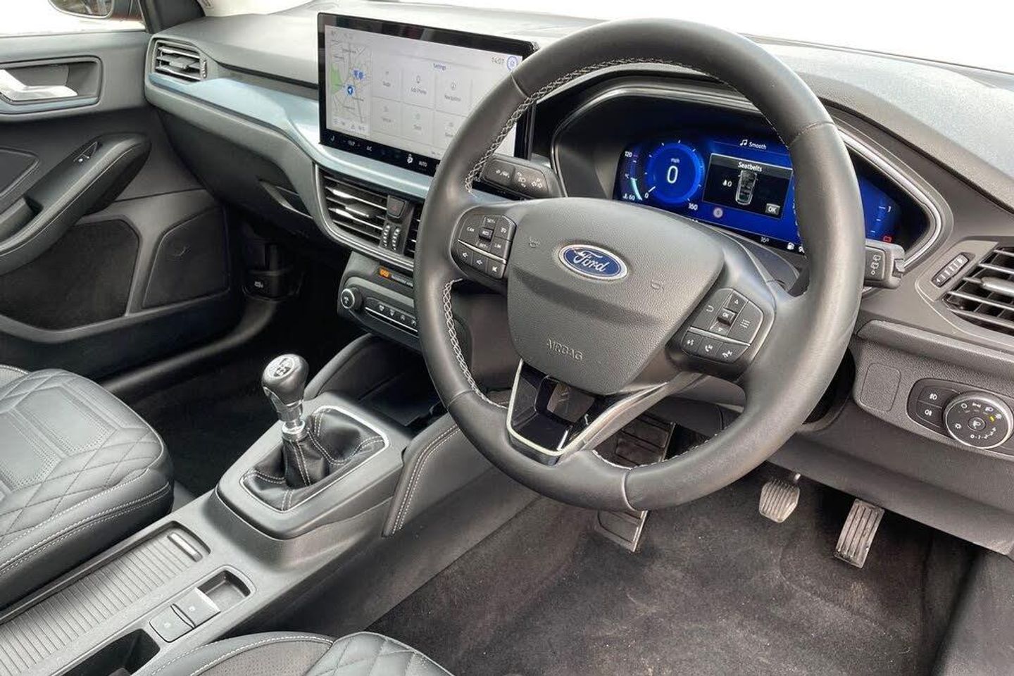 This 2022 Ford Focus T Active Vignale presents an exceptional ownership proposition with its single owner and a full service history, most recently serviced on 2025-09-09 at 18,486 miles, and boasting a low mileage of just 18,495 miles for its age. This Euro 6 compliant 1.0L Petrol Hybrid model offers a smooth driving experience with an acceleration of 0-62mph in 9.0 seconds. The Active Vignale trim enhances the Focus with a desirable panoramic roof that can be opened, a winter pack featuring heated seats and a heated steering wheel for comfort, and full fixed LED headlights with LED daytime running lights for excellent visibility. Convenience is further assured with the Ford Key Free System for keyless entry and start, alongside the advanced Ford SYNC4 Navigation system featuring a 13.2in touchscreen, compatible with Android Auto and Apple CarPlay, and complemented by a premium branded sound system. The comprehensive specification of this Ford Focus Active Vignale sets it apart from other vehicles in its class. The inclusion of the panoramic roof provides an airy and open cabin atmosphere, while the winter pack ensures comfort during colder months, features often absent in standard models. The advanced LED lighting system offers superior illumination compared to traditional headlights, enhancing safety and the vehicle's modern aesthetic. Furthermore, the keyless entry and start system, along with the sophisticated SYNC4 infotainment system offering seamless smartphone integration and a premium audio experience, all contribute to a more refined and user friendly ownership experience. The MOT remains valid until July 2026, providing further peace of mind.
