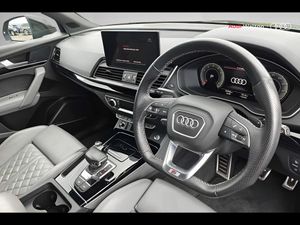 Audi connect safety and service (e-call), Audi connect with Amazon Alexa Integration, Audi drive select, Audi virtual cockpit plus with 12.3" screen and three different layout designs, Audi wireless smartphone interface, Automatic start-stop system with coasting functionality and efficiency programme, Bluetooth interface, Electro - mechanical power assisted steering, MMI navigation plus with 10.1" touch screen, Power tailgate, Reversing camera, Service interval indicator, Voice control system with Audi hotword activation "Hey Audi", Quattro on demand, S line sports suspension, 2 x USB charging port with aux input socket, DAB Digital radio, Acoustic windscreen, Audi matrix LED headlights with dynamic front and rear indicators, Audi rings at front and rear in black, Audi rings decal on rear doors, Auto dimming door mirrors, Auto dimming rear view mirror, Automatic headlights and windscreen wipers, Black door mirrors, Black roof rails, Body colour bumpers, Body colour underbody protection, Chrome plated exhaust trims, Daytime running lights, Door sills in Selenite silver, Electric adjustable/heated/folding door mirrors, Front air inlet surrounds in titanium black, Front and rear electric windows, Headlight washers, High gloss black B pillar trims and triangular rear door trim, High level LED brake light, Rear chrome trim strip below lights, Rear privacy glass and rear side windows, Rear side wing doors, Rear wiper, Roof bars, S Line rear spoiler, 3 rear headrests, 4 way electric lumbar support for driver and front passenger, 40:20:40 split folding 3 rear bench seat in 2nd row with rear centre armrest, Black cloth headlining, Comfort front centre armrest, Contrast stitching on seats, steering wheel and gear lever gaiter, Deluxe 3 zone electronic climate control, Electrically adjustable front seats, Fine Nappa leather upholstery with diamond pattern contrast stitching + front sport seats with S embossed logo, Front/rear floor mats, Gear lever in black leather, Heated front seats, Height adjustable front head restraints, Height/reach adjustable steering column, Illuminated door sill trims with S logo, ISOFIX child seat mounting and top tether, Rear seat bench plus, Removable luggage compartment floor, Single front passenger seat, Stainless steel pedals, Sunvisors with vanity mirrors, Black styling package - Q5 Edition 1, Extended interior upholstery pack - Q5, Extended LED Interior multi coloured Lighting Pack - Q5, 3 point seatbelts on all seats, 6 airbags - Driver, front passenger, curtain and side airbags, Electrically operated child locks on rear doors, Electromechanical parking brake, Electronic stabilisation control including ABS, ASR and EDL, Front and rear brake calipers painted in red, Front passenger airbag deactivation, Hill descent control, Hill hold assist, Multi collision brake assist, Pop-up bonnet for pedestrian protection, Pre sense city, Seat belt force limiter, Seatbelt monitoring, Tyre pressure warning, Warning triangle and first aid kit, Anti theft alarm, Anti-theft wheel bolts, Keyless Go access/ignition system, Remote central locking, Piano black finish inlay