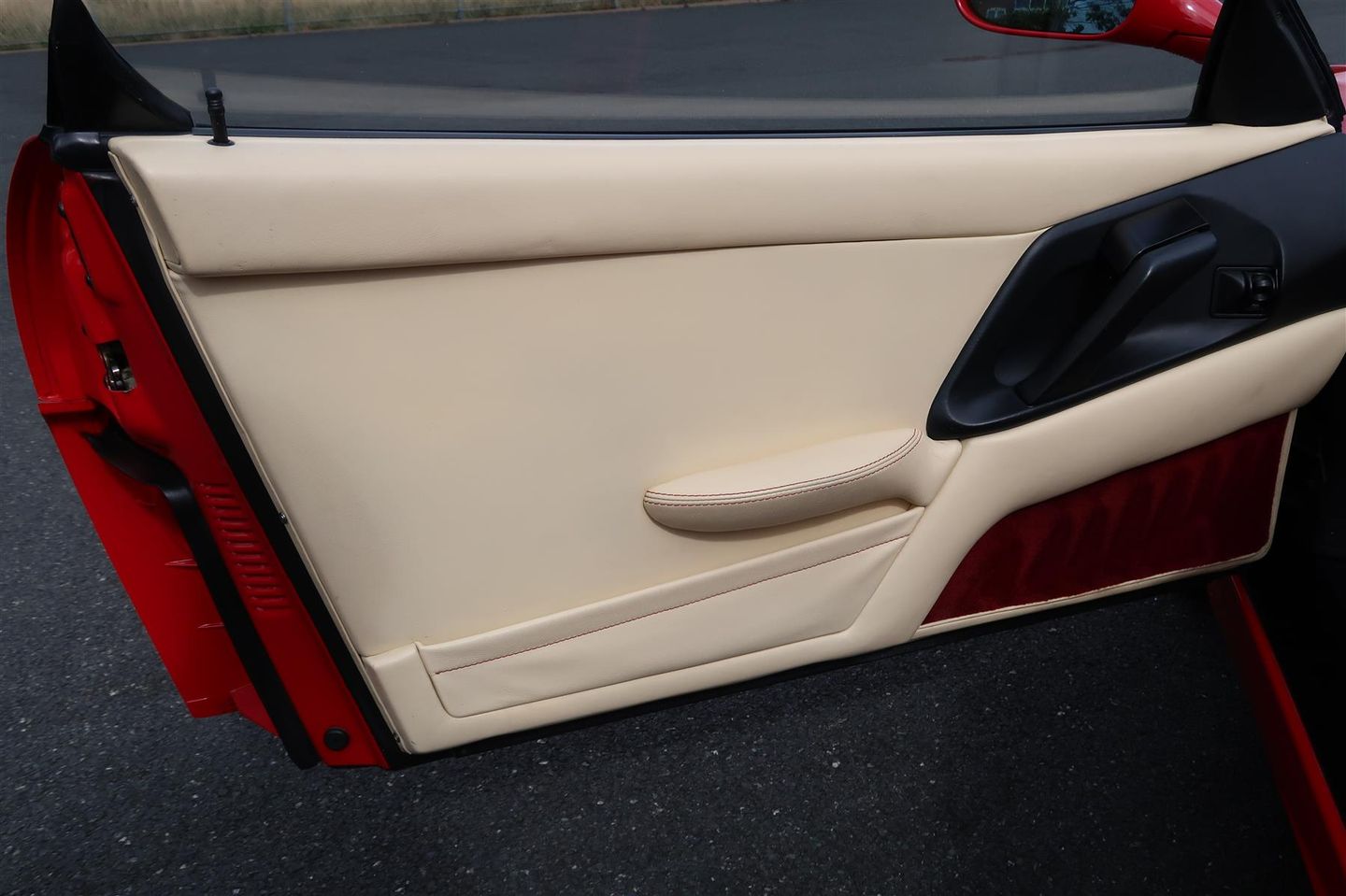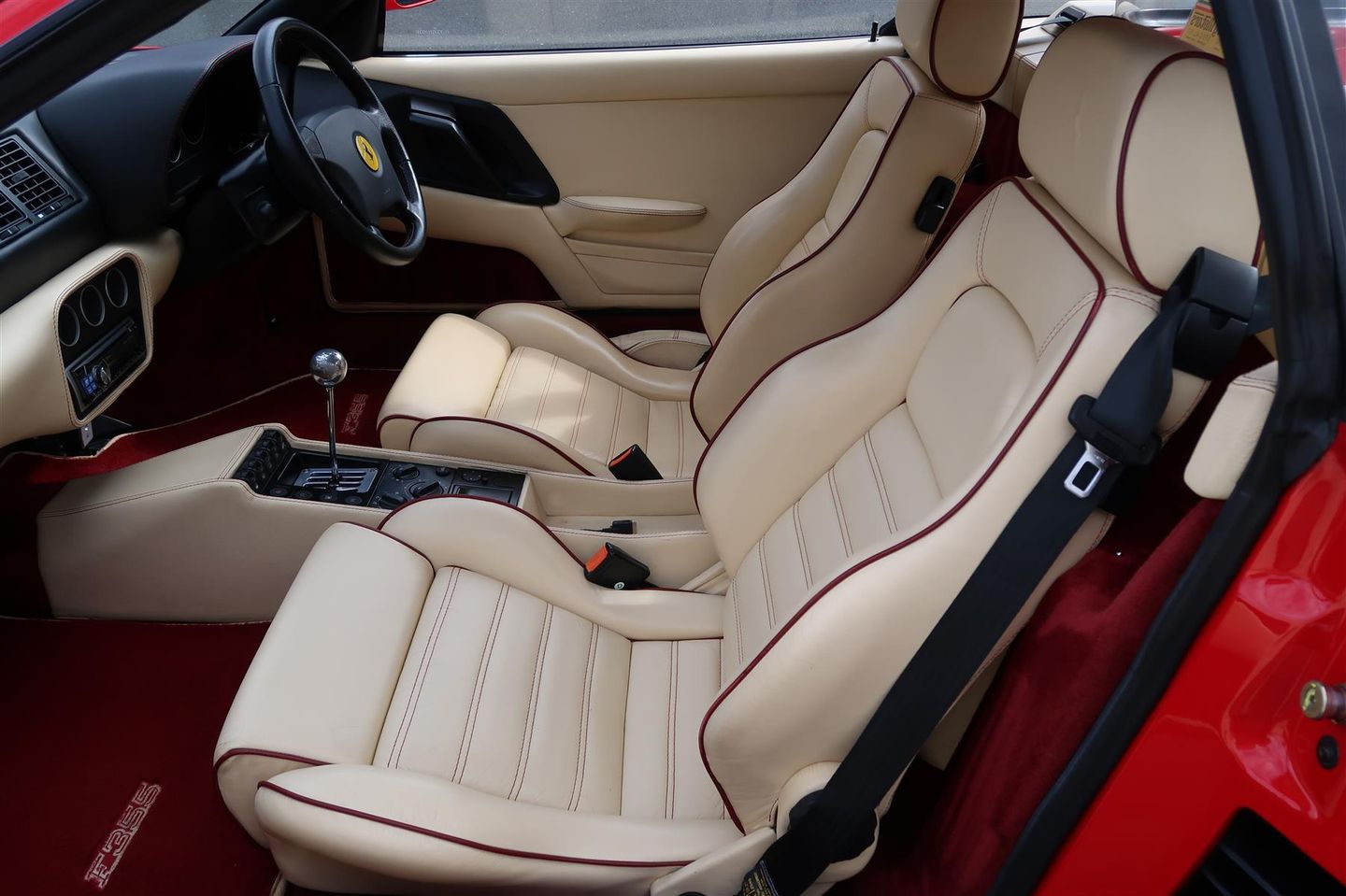 Finished in Rosso Corsa with Cream hide piped Bordeaux with Bordeaux carpets.