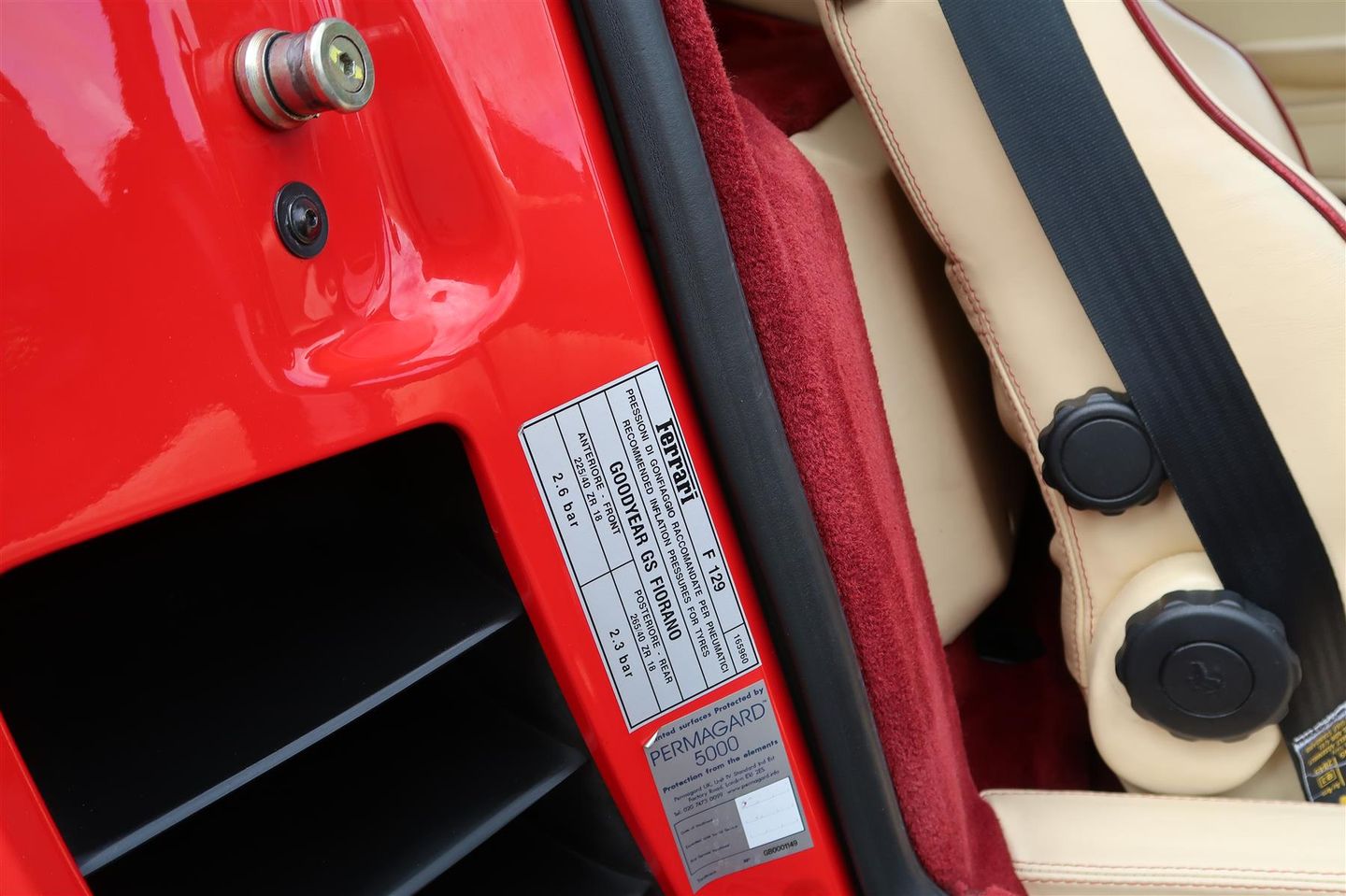Supplied new by Ferrari main dealer Stratton of Wilmslow to a gentleman from Wigan and registered on 1st March 1999. Specification included Rosso Corsa (322DS), Crema leather (VM3997), Bordeaux stitching and piping, Bordeaux carpets, leather lined roof panel, Red brake calibers, Ferrari alarm/immobiliser and Tracker.