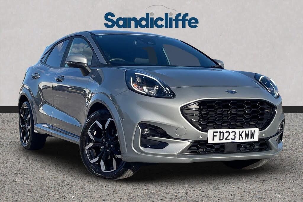 Sandicliffe Nottingham FordStore is proud to present this 2023 Ford Puma 1.0 EcoBoost ST-Line X 5dr, finished in stunning Solar Silver. This sleek and efficient Compact SUV offers a dynamic driving experience, modern technology, and excellent fuel economy, making it an ideal choice for families and long journeys. Engine: Powering this little toy is a 1.0-litre EcoBoost Petrol engine, this Puma delivers Plenty of strong performance partnered with enhanced efficiency making it perfect for both city driving and motorway cruising. Tech and other features: This model has equipped,19-inch alloy wheels, ST-Line eye catching body styling, LED daytime running lights, and rear parking sensors. Inside, enjoy a Half - leather interior, touchscreen infotainment system with Apple CarPlay & Android Auto, Satellite Navigation, Climate Control, Bluetooth connectivity, and Cruise Control, ensuring a comfortable and connected drive. With an insurance group of 12E, this Ford Puma is a stylish and practical choice. As a trusted retailer, our technicians ensure all our vehicles are prepared to the highest standard. For added peace of mind, we also provide a minimum 6-month MOT. Dont miss outexperience the 2023 Ford Puma ST-Line X at Sandicliffe Nottingham FordStore. Contact us today to arrange a test drive
