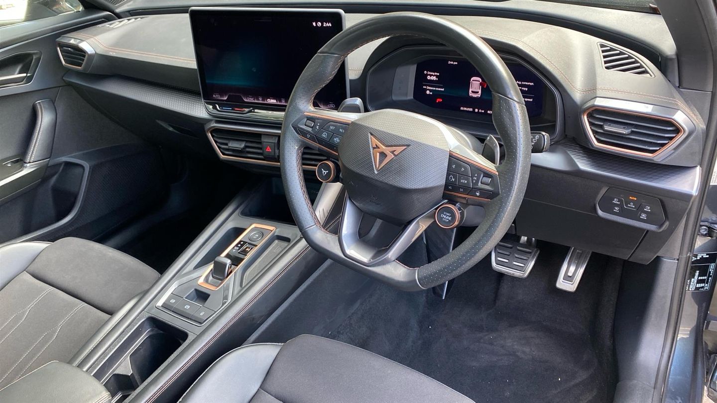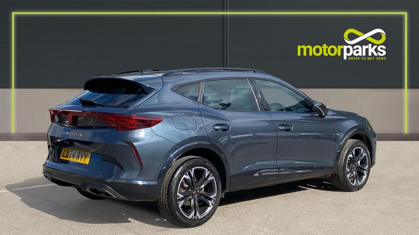 The 2024 Formentor 1.5 eTSI V1 turns up the premiumhigh spec, smart tech, and standout styling make it feel far above its price band. The 2024 CUPRA Formentor 1.5 eTSI 150 V1 combines stylish design with a rich set of interior and convenience features. It comes with 18 Sonora machined alloy wheels, full LED lighting (including rear infinite light strip with CUPRA logo), and gloss-black roof rails and window surrounds. Inside, you get a large 12.9-inch touchscreen navigation system (with wireless Apple CarPlay and wired Android Auto), a 10.25-inch digital cockpit, three-zone Climatronic climate control, ambient interior lighting, heated supersport leather steering wheel with satellite buttons and shift paddles, and sport seats with contrast (copper) stitching. Safety and driver-assistance tech are well covered with adaptive cruise control, front and rear parking sensors, lane assist, front assist, dynamic road sign display, and drive profile selection. The trim also includes cloth/sport upholstery, copper detailing, LED headlights with dynamic indicator, heated + folding mirrors, and welcome lightsall wrapped up in a compact SUV that balances style, tech, and daily usefulness..