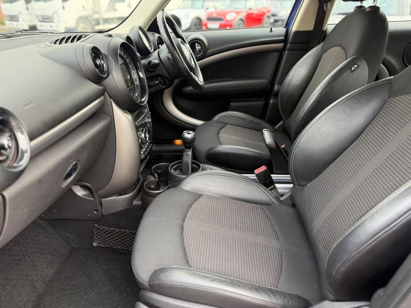 12V Socket - Rear, 17in Alloy Wheels - 5-Star Triangle Spoke, 3-Spoke Sport Leather Steering Wheel, 3rd Brake Light, 6.5in High-Resolution Colour Liquid-Crystal Display, Air Conditioning - Automatic, Airbags - Driver, Airbags - Front Passenger, Airbags - Front Passenger with Deactivation Switch, Airbags - Front Side, Airbags - Head, Alarm - Thatcham CAT1, Anti-Lock Braking System - ABS, Aux-In Connection, Bag Holder for Attachment to the Centre Rail, Basic Bluetooth Function with USB Audio, Bike Rack Preparation at Rear, Brake Assist, Brake Pad Wear Indicator, CBC - Cornering Brake Control, Central Bass Hi-Fi System, Central Locking - Activated At 10mph, Central Locking - Remote, Centre Rail, Child Seat ISOFIX Attachment, Cooled Glovebox, Crash Sensor - Hazard Warning Flashers and Interior Light, Crash Sensor - Unlocking Doors, Cruise Control, Cupholders - Two in Front, DAB Tuner, DTC - Dynamic Traction Control, Daytime Running Lights - LED, Door Handles - Chrome Plated, Door Handles - Interior - Chrome Plated, Door Mirrors - Electrically Adjustable and Heated, Dynamic Stability Control - DSC, EBD - Electronic Brake-Force Distribution, Electric Windows - One Touch Up and Down Front and Rear, Electronic Power Steering, Electronic Vehicle Immobiliser, Exhaust Tailpipe - Visible - Single - Round - Right - Chrome Finisher, Floor Mats - Velour, Front Fog Lights - LED, Gearknob or Selector Lever - Leather, Grab Handles, Halogen Lights for Low Beam and High Beam Headlights, Headlight - Beam-Throw Control Electrical with Manual Adjustment, Headlights - Follow Me Home, Headlights - Piano Black Bezels, Headlining - Beige, Heated Front Windscreen Washer Jets, Hill Assist, Inlay Colour Line - Carbon Black, Interior Light Pack, Lashing Eyes in Luggage Compartment, MINI ALL4 Exterior Styling, MINI Mobility System, MINI Navigation System, Microfilter, Mirror Caps in Body Colour, Multifunction Controls for Steering Wheel, On-Board Computer, PDC - Park Distance Control - Rear, Passenger Seat Height Adjustable, Piano Black Exterior Trim, Radiator Grille - Frame Chrome-Plated Radiator-Grille Bars Black, Radio BOOST CD, Radio VISUAL BOOST, Rain Sensor, Rain Sensor and Automatic Headlight Activation, Roof Rails - Silver, Roof in Body Colour, Seats - 40:20:40 Split Rear Backrests, Seats - Height Adjustable Front, Second Radio Remote Key, Security Locking Wheel Bolts, Side Scuttles with Integrated Indicators, Start-Stop Button, Steering Column Height and Length Adjustment, Storage - Pockets on Back of Front Seats, Storage Compartment Pack, Sun Visors with Integrated Vanity Mirrors on Drivers and Passengers Sides, TPWS - Tyre Pressure Warning System, Two Cupholders in Rear for Attachment to the MINI Centre Rail, White Direction Indicators Lights, CHILI Pack, Sport Seats for Driver and Front Passenger, Interior Surfaces - Dark Silver, Interior World - Carbon Black, Cloth-Leather Parallel Lines - Light Tobacco