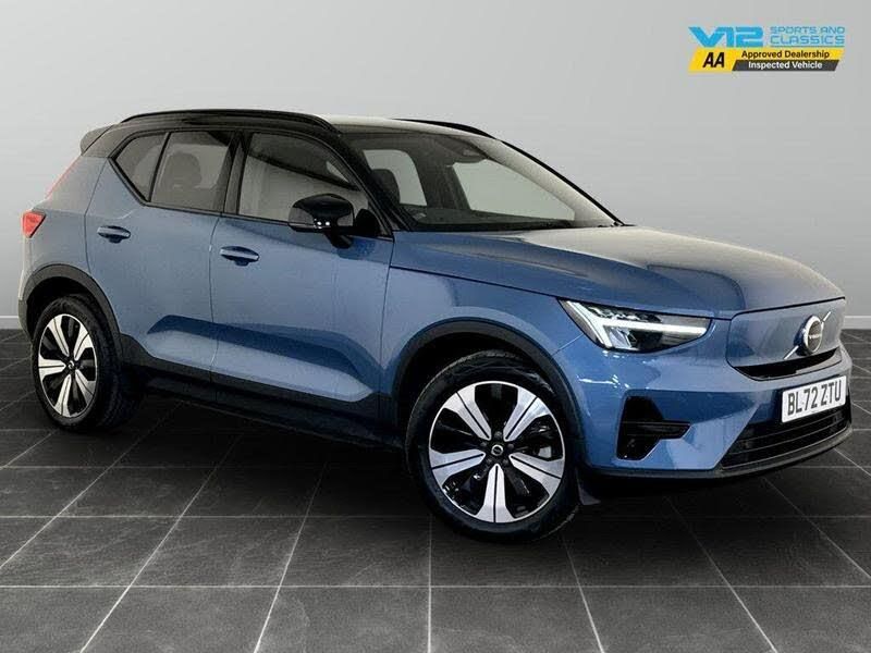 Black Stone - Pillars - Roof and Door Mirrors, [Audio and Communications]12v Socket - Front Tunnel Console and Luggage Compartment, 9in Centre Console Portrait Touch Screen, Bluetooth Handsfree System, DAB - Digital Audio Broadcasting Radio, Google Automotive Services, High Performance Sound, Roof Antenna, Volvo Cars Services with App, Wireless-Inductive Mobile Phone Charging, [Drivers Assistance]Cruise Control, Rear Park Assist, Road Sign Information Display, Tyre Pressure Monitoring System, [Exterior]19in Alloy Wheels - 5 Double Spoke - Diamond Cut - Black, Autofolding Heated Power Door Mirrors, Colour Co-Ordinated Front Covered Grille, Dark Tinted Windows - Rear Side Windows and Rear Screen, Front and Rear Power Windows, Locking Wheel Nuts, Recharge Embossed Rear Side Roof Pillar, Roof Rails - Integrated High Gloss Black, Roof Spoiler, [Illumination]Automatic Headlight Levelling System, Automatic LED Headlights with Active High Beam incorporating Day Running Lights, Home Safe and Approach Lighting, [Interior]Climate Pack, Textile - Charcoal - City Canvas, 12.3in Progressive Driver Display, 2-Zone Electronic Climate Control with Rear Air Vents - CleanZone Air Quality System with Pollen Filter, 3-Spoke Tailored Sports Steering Wheel, A-Pillar Parking Ticket Holder, Autodimming Interior Mirror, Centre Console Cupholders and Storage, Convenient Entry and Start, Fixed Rear Seat Headrests, Front Footwell Illumination, Front Load Compartment - 31 Litres, Front Reading Lights and Theatre Lighting, Front Seat Cushion Extensions, Front Tunnel Pocket and Integrated Waste Bin, Glovebox Bag Hook, Glovebox Compartment Illumination, Height Adjustable Passenger Seat, Height and Reach Adjustable Steering Column, Height and Tilt Adjustable Driver Seat, High Gloss Black Centre Tunnel and Centre Screen Surround Deco, Illuminated Vanity Mirrors with Ticket Holder, Load Protection Net, Luggage Compartment Illumination, Multi-Directional Lumbar Support, Origin Inlay, Power Operated Tailgate, Rain Sensor - Automatic Windscreen Wiper Activation, Rear Armrest with Cupholders, Recharge Tread Plates - Front, Steering Wheel Remote Infotainment Controls, Underfloor Luggage Compartment Storage, Versatile Split Folding Rear Seats - 60-40, [Performance]7m 10amp Charge Cable with 3-Pin Plug and 4.5m 3-Phase 32 amp Type 2 - Mode 3 Charge Cable, Adjustable Steering Force, Electric Front Axle Drive, Speed Limiter, Speed Sensitive Steering, Touring Chassis, [Safety and Security]Adaptive Brake Lights including High Level LED Brake Light, Anti-Theft Alarm including Immobiliser - Volume Sensor and Level Sensor, City Safety, Driver Knee Airbag, Dual Stage Driver and Passenger Airbags, High Gloss Black Window Trim - Front and Rear Skidplate and Deco Lower Front Bumper, Hill Descent Control, Hill Start Assist, IC - Inflatable Curtains - Full Length, ISOFIX Attachment - Front Passenger and Outer Rear Seats, Key Integrated Remote Control Central Locking including Fuel Flap with Deadlocking System and Auto Open-Close Power Windows, Lane Keeping Aid with Driver Alert Control, Low Speed Exterior Sound Speaker, Oncoming Lane Mitigation, Passenger Airbag Cut-Off Switch, Power Child Locks - Rear Doors, Private Locking for Tailgate, Run-Off Road Mitigation, Run-Off Road Protection, SIPS - Side Impact Protection System, SIPS Airbags - Front Seats, Seatbelt Reminder and Pretensioners, Slippery Road and Hazard Light Alert, Stability and Traction Control, Vehicle Deceleration Control, Visible VIN Plate, WHIPS - Whiplash Protection System - Front Seats