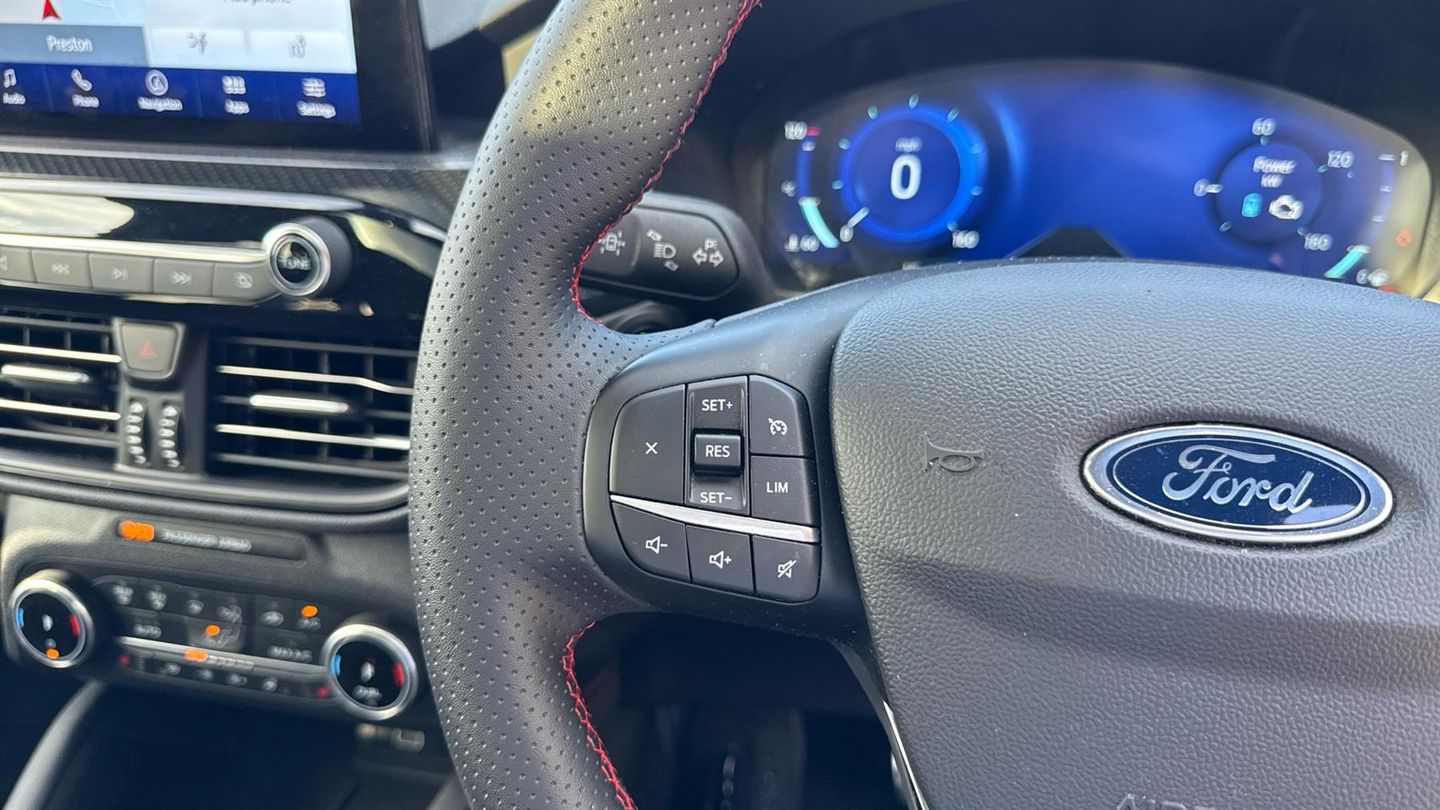 Features include Cruise Control+Speed Limiter, Keyless Entry+Go, a Opening Panoramic Roof, a B+O Sound System and even Dual Zone Climate Control. Bring together sporty design and cutting-edge efficiency with this 2023 Ford Kuga ST-Line X Plug-in Hybrid, finished in the eye-catching Chrome Blue Metallic. Powered by a seamless combination of petrol and electric energy, it delivers spirited performance with the flexibility of zero-emission driving when you need it, alongside excellent fuel economy. The ST-Line X trim adds a bold edge, with a striking body kit, unique alloy wheels, red-stitched interior, and a host of premium touches including advanced infotainment, digital displays, and driver-assist technologies. Spacious, comfortable, and refined, the Kuga blends athletic styling with family-friendly practicality, making it just as suited to city streets as long-distance adventures. Efficient, stylish, and packed with techthe Kuga ST-Line X PHEV is a modern SUV that ticks every box..