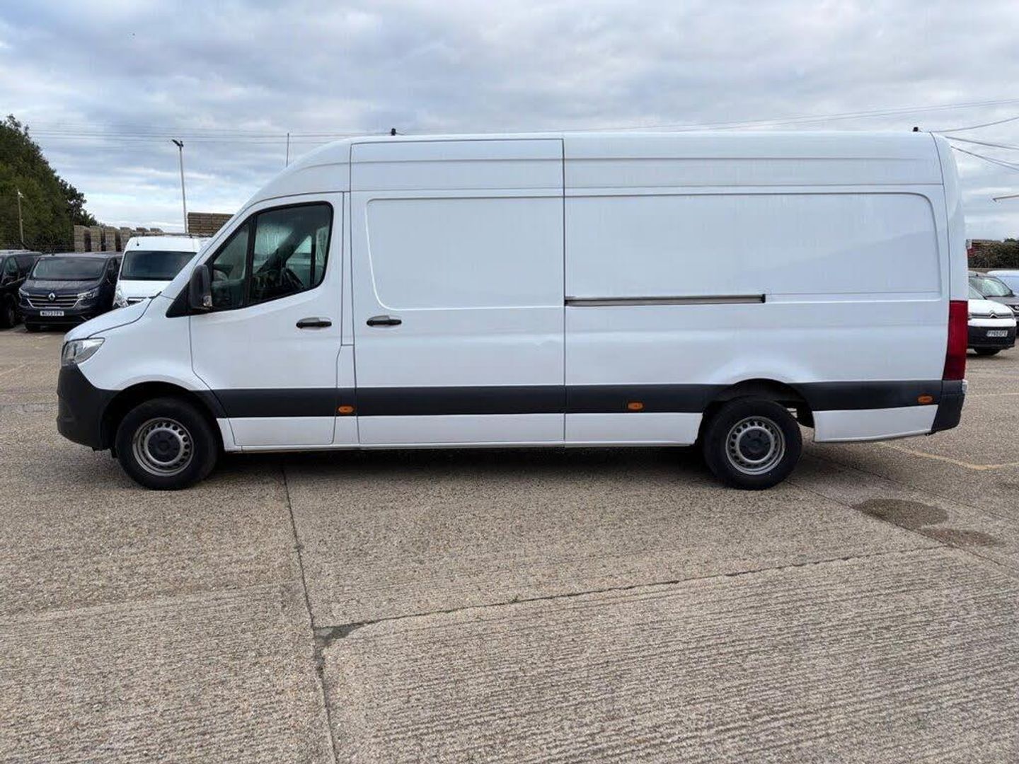 16in Steel Wheels, 270 Degree Double-Wing Rear-End Doors - Opening to Side Wall, ABS - Anti-Lock Braking System, ATTENTION Assist, Active Brake ASSIST, Adaptive Brake Lights, Adaptive ESP - Electronic Stability Programme, Additional USB-C, Airbag - Driver, Alternator 14V - 180A, Anti-Theft Protection Package, Armrest for Drivers Seat, Breakdown Management, Bulkhead - Full-Width Partition, Comfort Overhead Control Panel, Communication Module - LTE - For Digital Services, Crosswind Assist, Cruise Control, DAB Digital Radio Tuner, Doors - Sliding Side Load Door on Left Side, Double Co-Driver Seat, Double Locks, Electric Windows - Front, Entrance Handle on Right-hand Rear Corner Pillar, Fuel Filter with Water Separator, Grab Handle - Load Compartment Sliding Door at Partition, Heat-Insulating Glass with Filter Band on Windscreen, Heavy Duty Battery - 12V 92Ah, Hill Start Assist, Hydraulic Jack, Integrated Connected Alarm System, Interior Courtesy Light Door Operated, Jump Start Contact, Keyless Start, Lighting - Headlight Assistant, Lights for Left Hand Traffic, Longitudinal Member Reinforcement, MBUX Multimedia System with 7-inch Touch Screen, Mercedes-Benz Emergency Call System - eCall, Multifunction Steering Wheel, Outside Air Temperature Gauge, Power-Assisted Steering, Pre-Installation for Switch Panel, Prewiring for Parameterizable Special Module - PSM, Remote Central Locking, Seat Belt Reminder for Co-Driver Seat, Shelf Above Windscreen, Side Marker Lights, Spare Wheel, Spare Wheel Bracket Below Frame End, Steering Column - Manually Adjustable, Steering Wheel - Rake and Reach Adjustment, Storage - Hinged Lid for Stowage Compartment, Storage Compartment Underneath Cockpit, Summer Tyres, Suspension - Stabilisation Level I, Terminal Strip for Electrical Connection, Third Brake Light, Tyres 235-65 R16 C, Tyres Resistance-Optimised, Tyres without Name of Make, USB-C Socket - 5V, USB-C and Bluetooth Interface - WIFI Hotspot -Apple CarPlay - Android Auto and a DAB Radio, VIN Visible from Outside, Wood Load Flooring