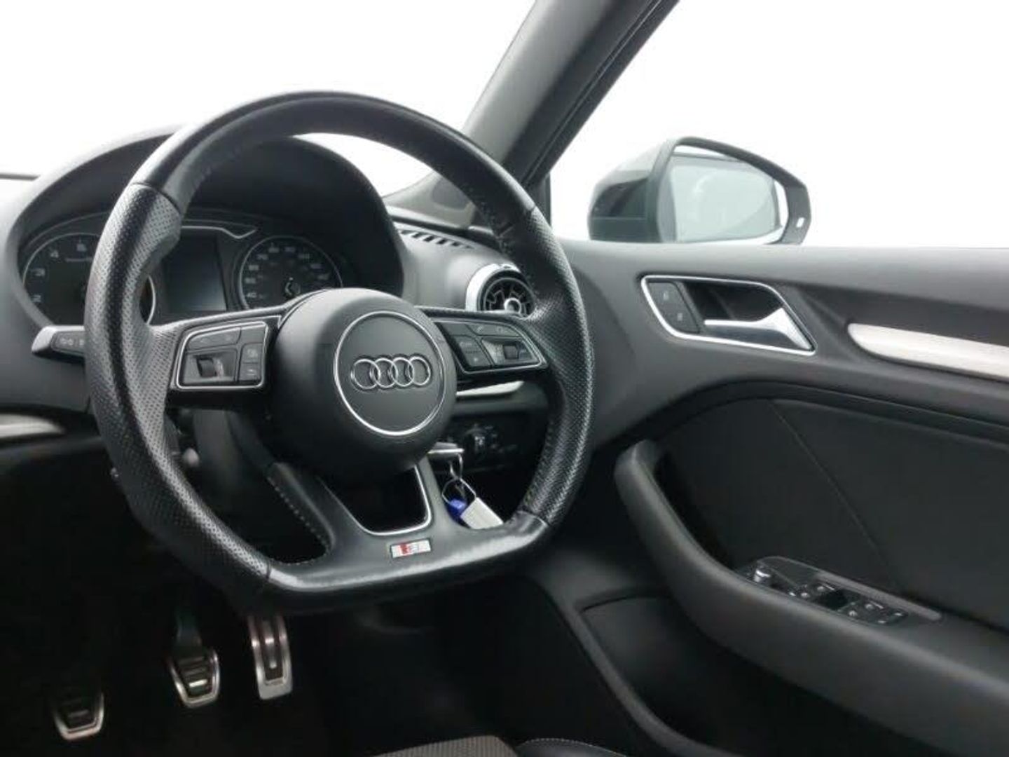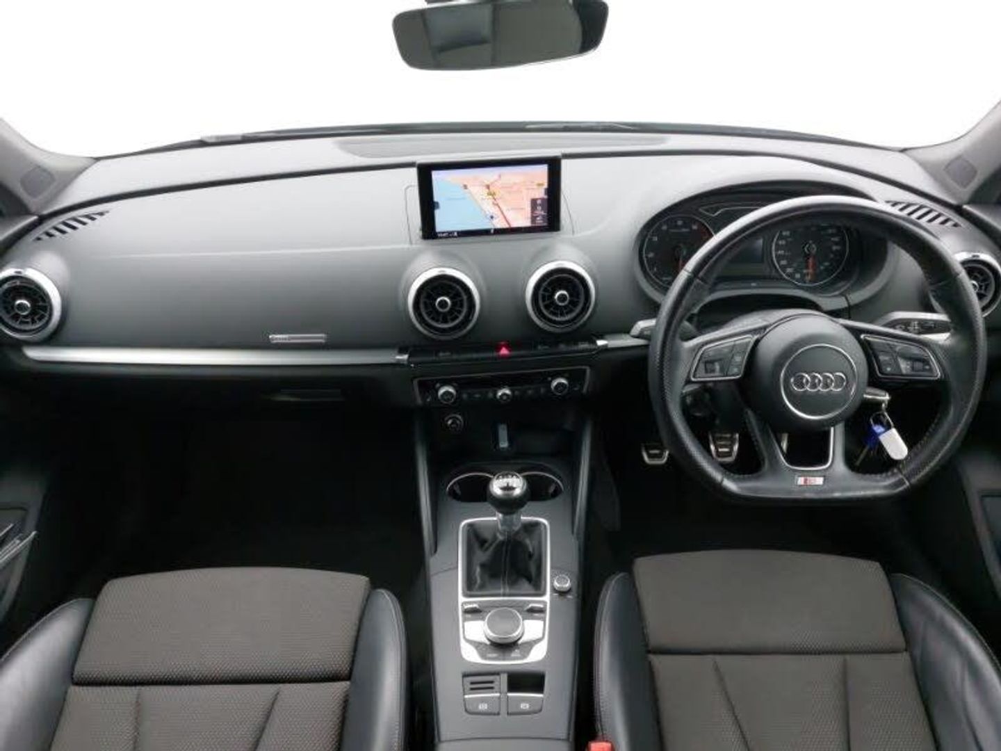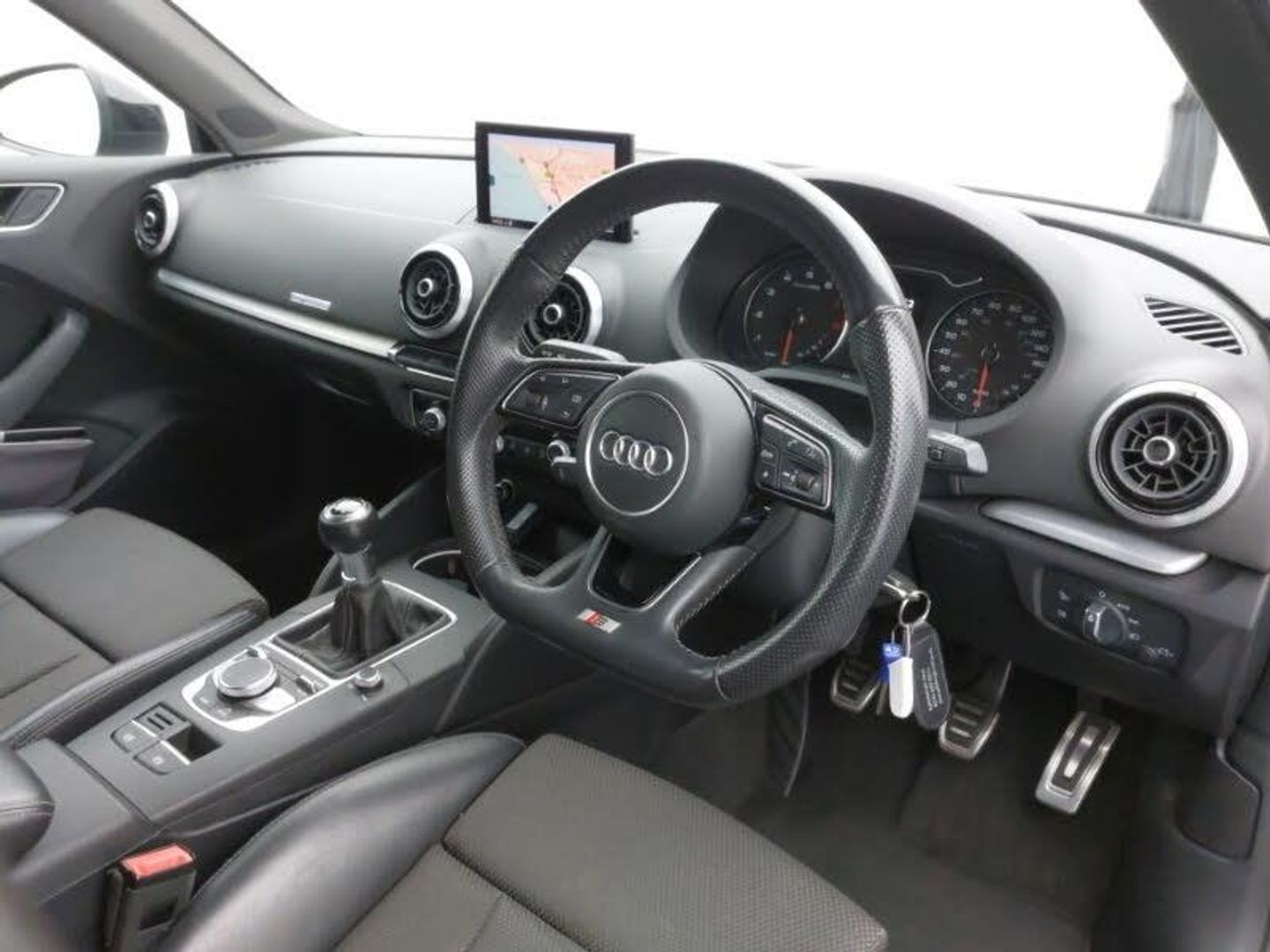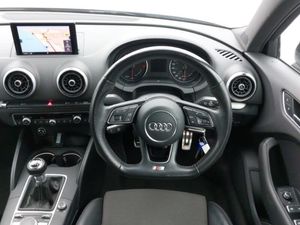 Audi sound system with 10 loudspeakers, MMI radio plus with 7" colour MMI screen and MMI controller, 3 spoke flat bottomed multi-function leather steering wheel, Heated windscreen washer jets, S Line body styling, Audi drive select, Front sports seats, ISOFIX child seat preparation+airbag deactivation, Black styling pack - A3/S3, 18" 10 spoke design alloy wheels in matt titanium look with diamond cut finish, Active front headrests, ESC - Electronic Stability Control + traction control, Hill hold assist, Thatcham category 1 alarm + immobiliser