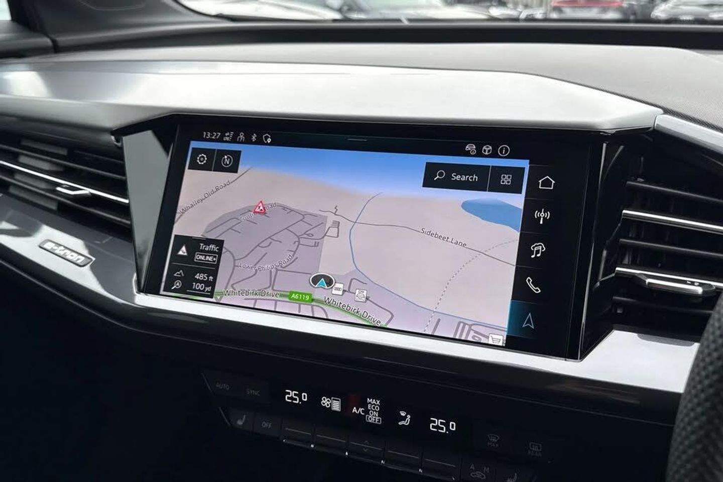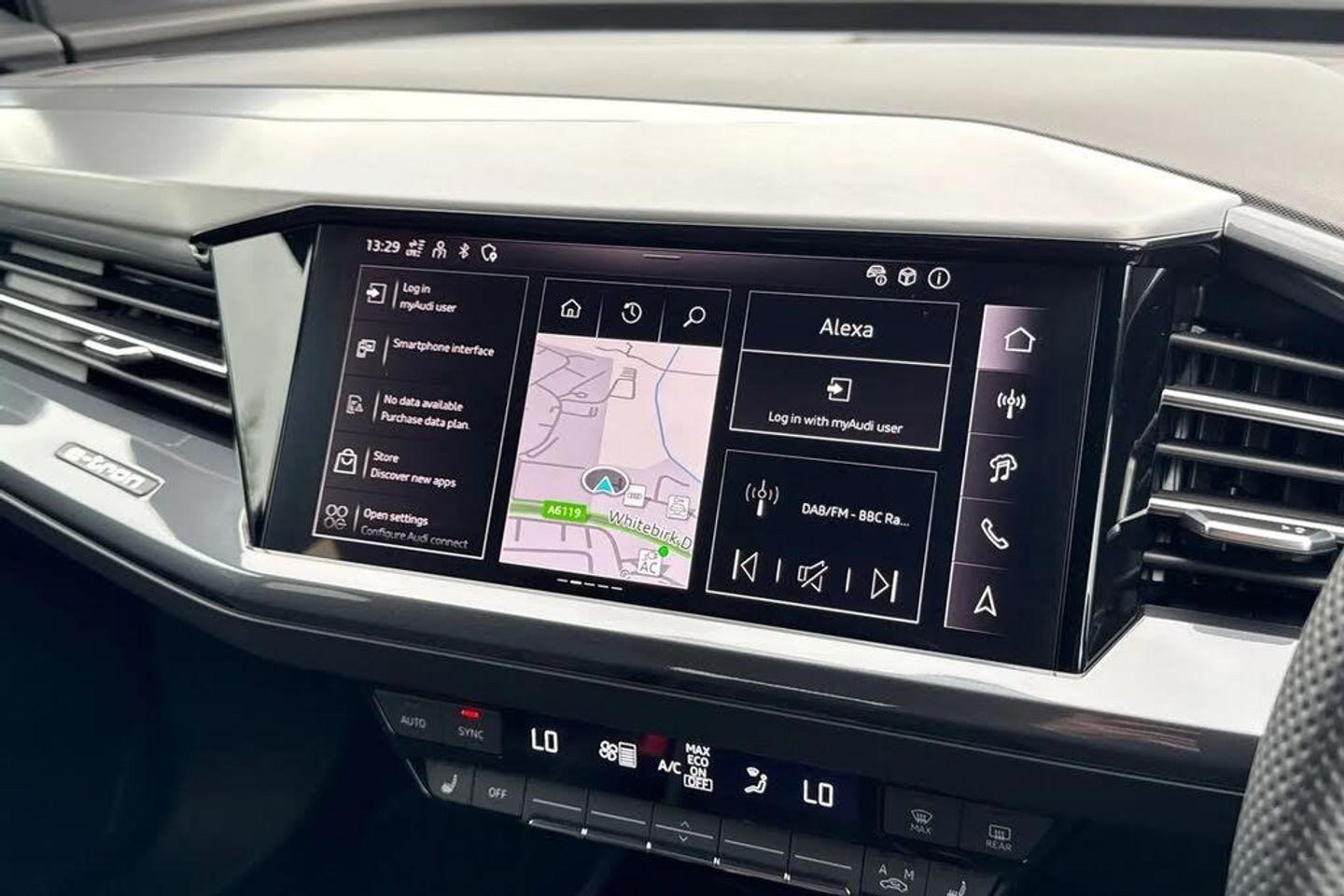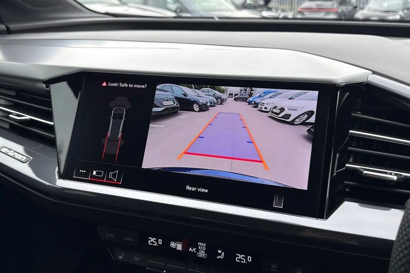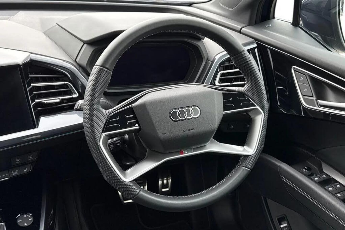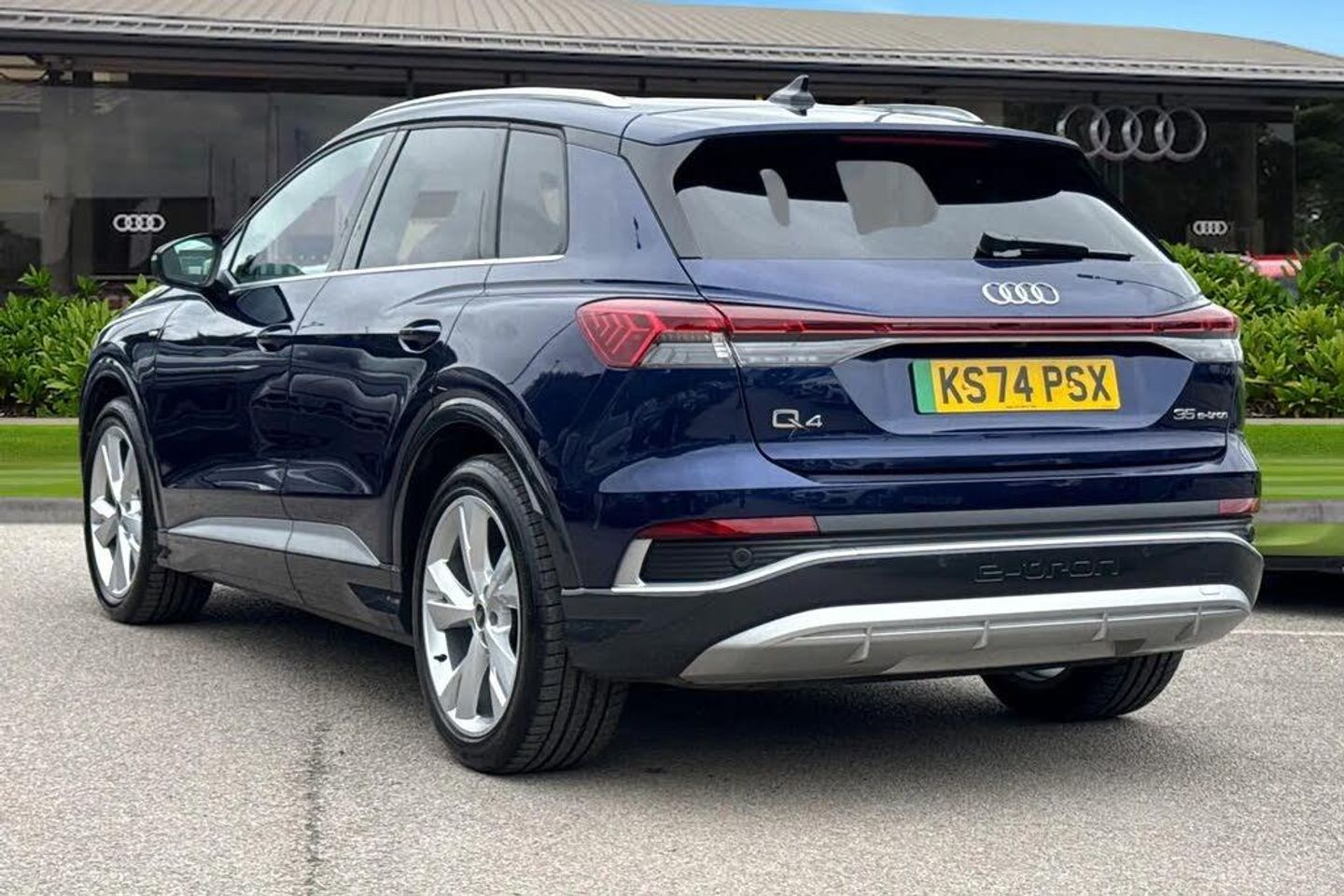 Ambient Lighting, Alloys;Discover the Audi Q4 E-tron Q4 S line in striking Navarra Blue, where performance meets premium design. Its 125?kW electric motor delivers smooth, instant power, paired with a sport suspension and 20-inch alloy wheels for dynamic handling and a confident ride. The S line styling is highlighted by contrasting bumpers in Manhattan Grey, projection lights in the exterior mirrors, and illuminated S line door sill trims for that unmistakable premium presence. The LED headlights with daytime running lights provide exceptional visibility, while LED rear lights complete the sleek, modern exterior. Step inside to a cabin finished with S line Twin Leather, matt brushed aluminium inlays, stainless steel pedals, and ambient lighting package plus?creating a luxurious yet sporty environment. Front sport seats with 4-way electric lumbar support ensure comfort on every journey, complemented by sun protection tinted glass and three-zone climate control. Cutting-edge technology is at your fingertips, including the Audi Virtual Cockpit 10.25?inch display, MMI Navigation Plus with 11.6?inch touchscreen, Audi Connect services, smartphone interface, and an Audi Sound System for premium audio. Practicality is also uncompromised, with split-folding rear seats, a 520?L boot, keyless Go, rear-view camera, and multiple USB-C ports for seamless charging. With adaptive cruise control, lane departure warning, and Audi Pre-Sense front safety systems, the Q4 S line blends performance, luxury, and advance...