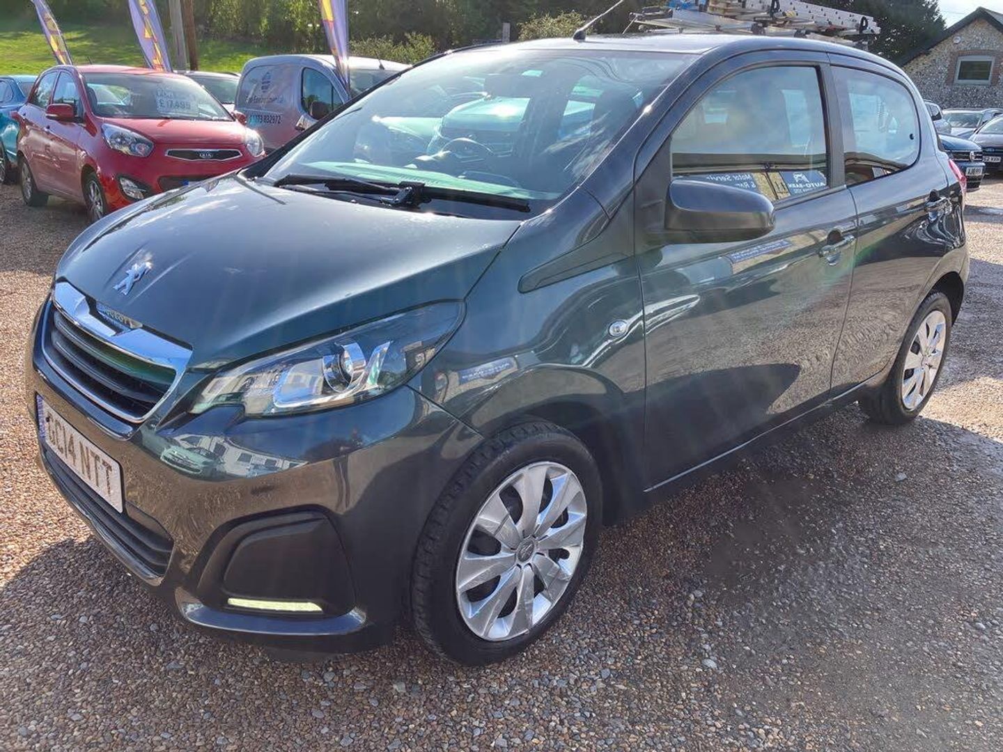 EXTERIOR: Grey paintwork, colour coded bumpers and mirrors. 14'' Peugeot alloy wheels. Some marks consistent with age / value.