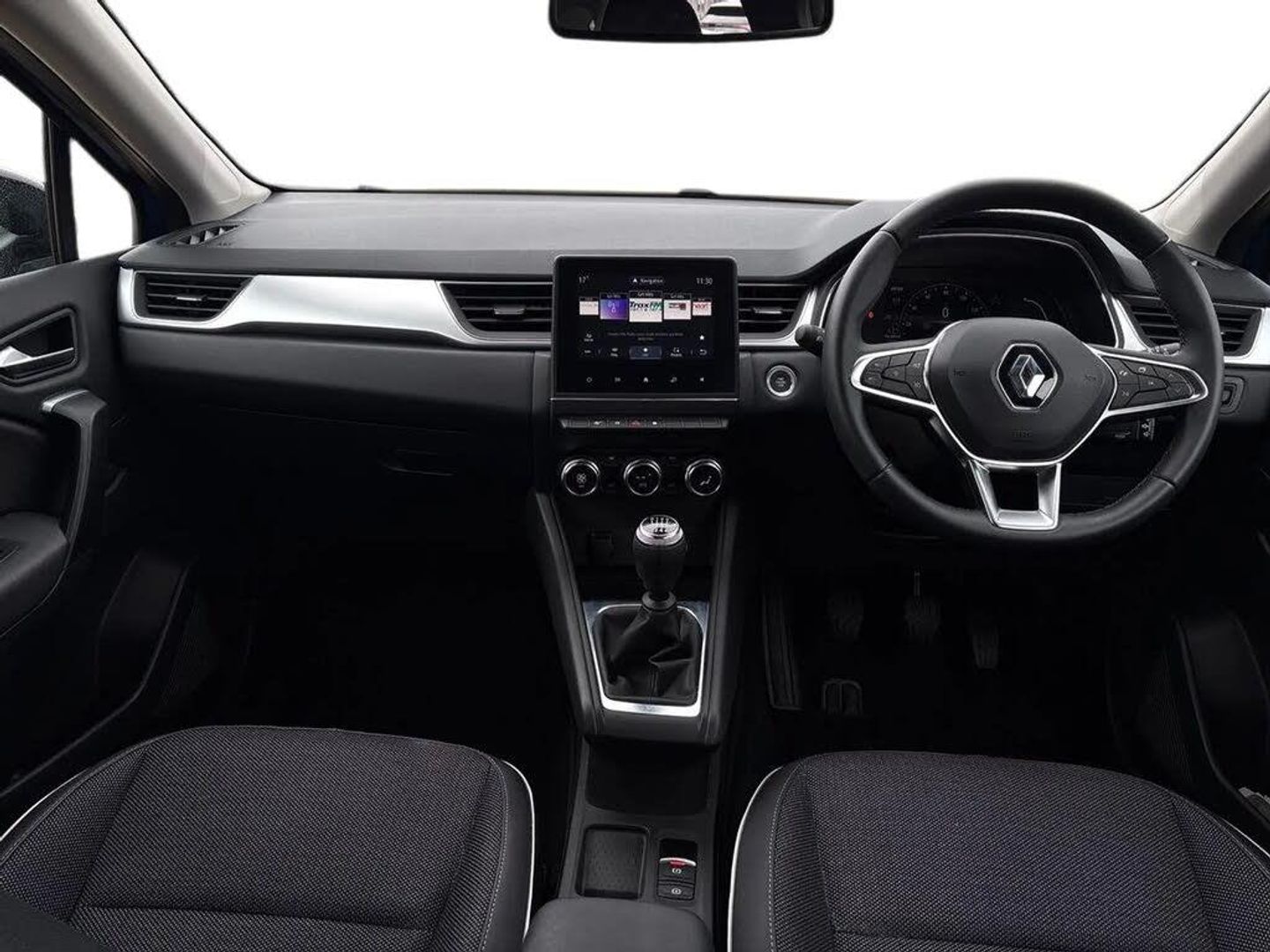 7" TFT Driver information display,Cruise control + speed limiter,eCall emergency call system,Eco mode,Front and rear parking sensors with rear view camera,Gear change indicator,Lane departure warning system,Lane keep assist,Multisense with 3 driving modes + 8 ambient lighting colours,Traffic sign recognition with over speed prevention,Trip computer,Variable assistance power steering,Wireless phone charger,EasyLink 7" touchscreen with navigation, bluetooth, DAB radio,USB ports,compatible with Apple carplay/Android auto,Auto dimming rear view mirror,Automatic front wipers with rain sensors,Automatic headlights,Automatic high/low beam,Black side door protection with chrome effect,Body colour door handles,Body coloured bumpers,Body coloured door mirrors,C Shaped LED front and rear lighting signatures with 3D effect on the rear lights,Chrome around front air deflectors, on front wing deco element and window lining,Drivers one touch window with anti-pinch feature,Electric rear windows,Extra tinted glass in rear windows and tailgate,Front grille with chrome upper trim,Full LED headlights,Gloss black side door protection with chrome effect,Grey front and rear skid plate,LED daytime running lights,LED front fog lights,LED high level brake lights,LED rear fog light,Longitudinal roof bars,Rear side wing doors,Rear wing door,Rear wiper,Variable speed on front windscreen wipers,12V Accessory socket,3 rear headrests,60/40 split and fixed base rear seat bench,Automatic climate control with one touch demist function,Centre console storage tray,Front head restraints,Glovebox,Heating system with pollen filter,Height adjustable driver's seat,Height adjustable passenger seat,Height/reach adjust steering wheel,ISOFIX child seat fixing points on rear outermost seats,LED front roof lights,Middle console with armrest and storage,Modular boot floor,Rear air vents,Single front passenger seat,Sliding rear bench,Synthetic leather steering wheel,Synthetic leather/cloth upholstery,3 rear seatbelts,ABS+EBA,Driver and front passenger, side, head and curtain airbags,Driver height adjustable seat belt,Electric parking brake with auto hold function,Electronic stability control,Front and rear no seatbelt warning sound,Front dash warning indicator in case of heavy braking,Front driver and passenger side airbag deactivation,Hill start assist,Rear door and window child locking function for rear door,Tyre pressure warning light,Anti drill door locks and locking fuel cap,Central door locking,Deadlocking system,Hands free keycard with push button and start/stop function,RAID (Renault Anti-Intruder Device) automatic door locking,Black soft touch dashboard,18" Pasadena diamond cut alloy wheels with grey inserts,Iron Blue with Diamond Black Roof