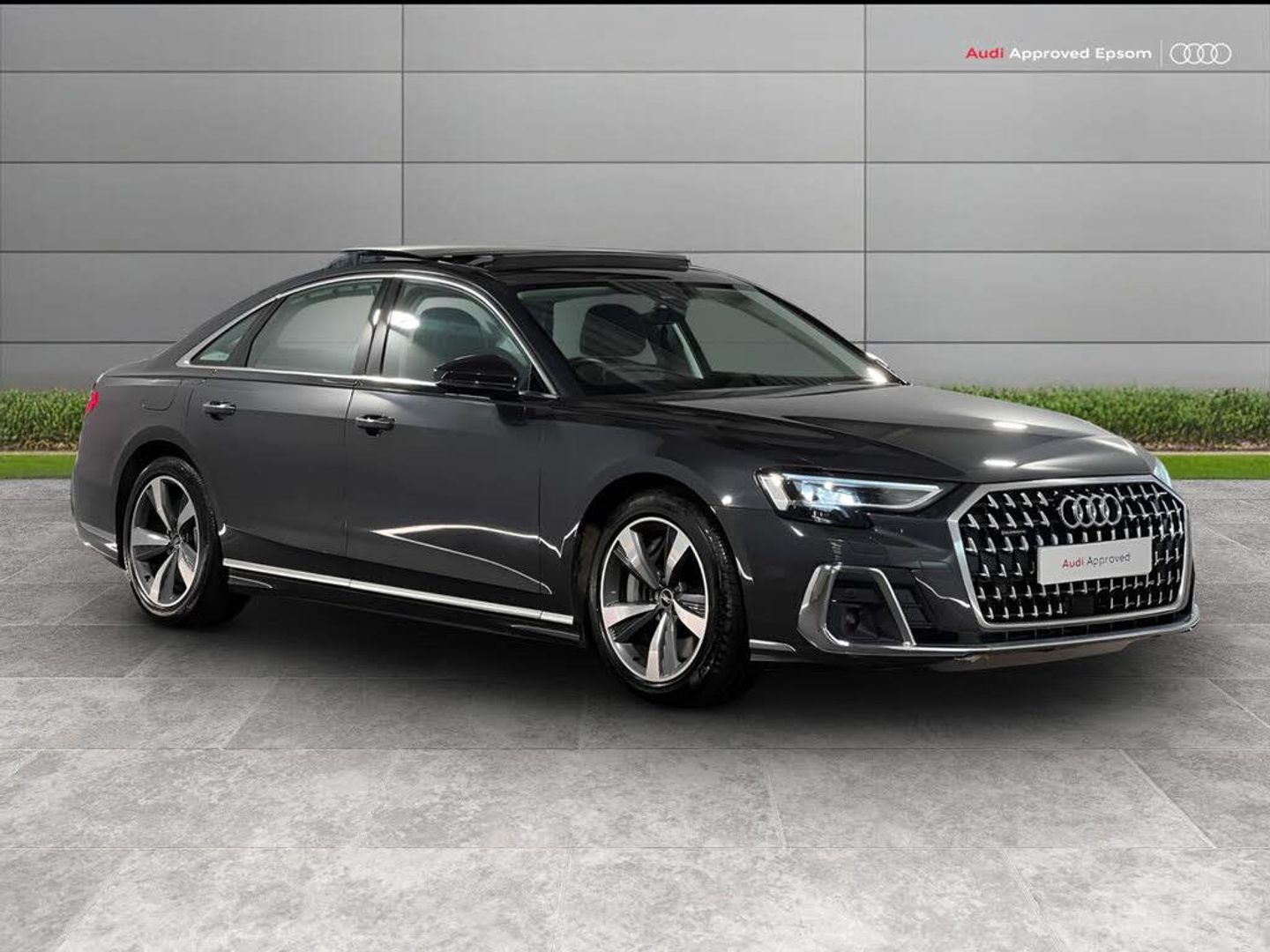'Lights On' Reminder warning buzzer, Adaptive cruise control with cruise assist, emergency assist, efficiency assist, swerve assist, turn assist and speed limiter, Audi connect safety and service (e-call), Audi drive select, Audi parking system plus with front and rear sensors, Audi smartphone interface with app store includes wireless Apple carplay, Android auto and Amazon alexa integration, Audi virtual cockpit, Bluetooth interface, Camera based traffic sign recognition, Convenience key, Electro - mechanical power assisted steering, Head up Display, MMI navigation plus with MMI touch + Twin touch screens with haptic feedback, Operating buttons in black, glass look with haptic feedback, Power door closure, Power operated tailgate, Rear view camera, Remote fuel filler release, Service interval indicator, 3 pin 10 amp domestic charging cable, 65 litre fuel tank, 7.4 kW onboard charger, 8 speed transmission with hill hold assist, Adaptive air suspension, Hybrid drive system PHEV, Industrial connector CEE 32A, 230V, long and straight for the e-tron charging system, Mode 3 charging cable for public charging (AC), Quattro all wheel drive with self locking centre differential, Type 2 socket for AC charging, Audi music interface, Audi sound system, DAB digital radio module, DVD System, MMI radio plus, USB connection, All-weather, manoeuvring, position, static cornering, turning and motorway lights with automatic dynamic headlight range control, Audi space frame, Auto dimming rear view mirror, Body colour bumpers, Body colour exterior mirror housings, Body colour side protection with aluminium trim strips, Electric front windows, Electric rear windows with isolation switch, Electric sunblinds for rear window and rear door windows, Electrically adjustable heated folding + automatically dimming exterior mirrors with memory function and integrated LED indicators, Front wash/wipe with interval delay, HD matrix LED headlights with dynamic light presentation and dynamic indicators, Headlight cleaning system, Heat insulating darkened glass in side and rear windows, Heat insulating glass windscreen, Heated rear window, Heated windscreen washer jets, High beam assist, LED brake lights, LED daytime running lights, LED third brake light, OLED rear lights with changeable rear light signature, Rear boot, Rear side wing doors, Side skirts, Welcome/leaving lighting, 12V socket, 3 seat rear bench with centre armrest in 2nd row, 4 way electric lumbar support for driver and front passenger, 4 zone control automatic air conditioning, Audi phone box light, Auxiliary climate control with remote precondition, Centre console with cupholders, Comfort centre armrest front, Door pockets with bottle holder, Driver and front passenger side sunvisors with illuminated vanity mirrors, Dust/pollen filters, Electric front seats with memory function, Front floor mats, Glove compartment cooling, Heated front seats, Height/reach electric steering column with easy exit function, Isofix child seat mounting points on outer rear seats, Leather gearknob, Passenger footwell storage net, Reading lights, Rear floor mats, Rear headrests, Roof mounted sunglasses holder, Silver cloth headlining, Single front passenger seat, Valcona leather upholstery with contour comfort front seats, Chrome exterior pack - A8, Extended LED Interior multi coloured light pack - A8, High gloss styling pack - A8, 3 point seatbelts on all rear seats, ABS/EBD, Acoustic vehicle alerting system, Active front headrest system, ASR traction control, Audi pre sense basic, Audi pre sense front, Black brake calipers, Driver/Front Passenger airbags, EDL traction control, Electromechanical parking brake, ESP, Extended pedestrian protection measures, Front and rear disc brakes, Front and rear side airbags with head airbag system, Front passenger airbag deactivation, Rear child proof door locks, Seatbelt reminder + electric contact in buckle + advanced safety equipment, Tyre pressure loss indicator, Warning triangle and first aid kit, Anti theft alarm tow away protection, Anti-theft wheel bolts and wheel loosening detection, Remote central locking, Dark matt brushed aluminium lower inlays, Fine grain ash natural grey brown upper inlay, Tyre repair kit