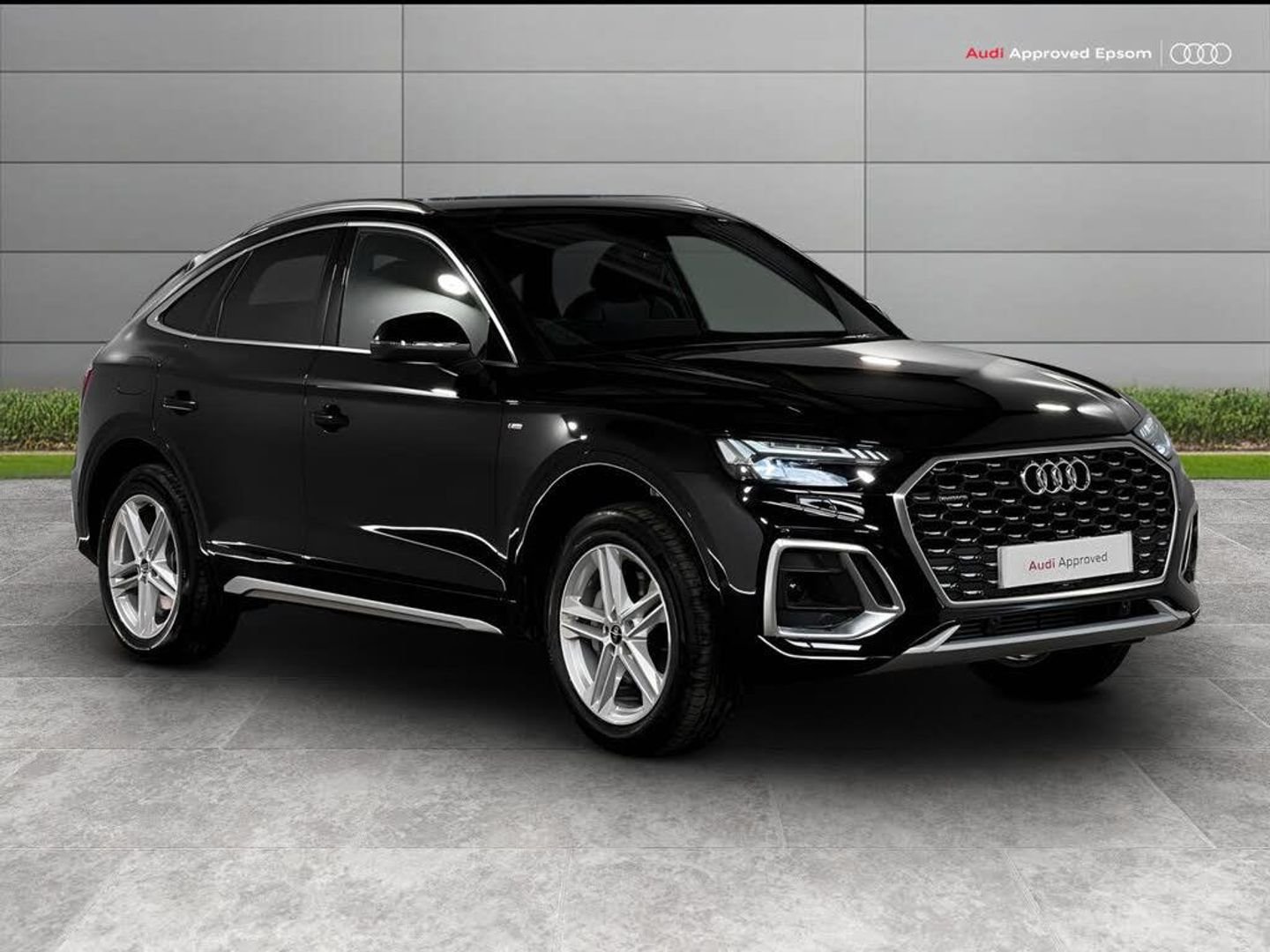 Acoustic front and rear parking sensor, Audi connect safety and service (e-call), Audi drive select, Audi virtual cockpit with 12.3" screen with specific display, Audi wireless smartphone interface, Automatic start-stop system with coasting functionality and efficiency programme, Bluetooth interface, Camera based traffic sign recognition, Electro - mechanical power assisted steering, Lane departure warning, MMI navigation plus with 10.1" touch screen, Power tailgate, Reversing camera, Service interval indicator, Voice control system with Audi hotword activation "Hey Audi", 3 pin 10 amp domestic charging cable, 7.4 kW onboard charger, Dynamic suspension, Industrial connector CEE 32A, 230V, Quattro on demand, Type 2 mode 3 22kW 32 amp charging cable, Type 2 socket for AC charging, 2 x USB charging port with aux input socket, 8 loudspeakers, DAB Digital radio, Acoustic windscreen, Aluminium roof rails, Auto dimming door mirrors, Auto dimming frameless rear view mirror, Automatic headlight adjustment, Automatic headlights and windscreen wipers, Body colour bumpers, Body colour door mirrors, Body colour rear diffuser with matt aluminium silver surrounds, Body colour underbody protection, Chrome plated exhaust trims, Daytime running lights, Door sills in Selenite silver, Electric adjustable/heated/folding door mirrors, Front air inlet surrounds in aluminium, Front and rear electric windows, Front radiator grille in honeycomb design, LED 3rd brake light, LED headlights and LED tail lights, Loading edge protection in stainless steel, Lower bumpers painted in contrast Manhattan grey, Rear chrome trim strip below lights, Rear privacy glass and rear side windows, Rear side wing doors, Rear wiper, Roof bars, S Line badges on the front wing panels, S Line front and rear bumpers, S Line rear spoiler, S Line side skirts, 3 rear headrests, 3 seater rear seat bench, 3 spoke leather multifunction steering wheel with S badging perforated leather grips, Black cloth headlining, Comfort front centre armrest, Contrast stitching on seats, steering wheel and gear lever gaiter, Deluxe 3 zone electronic climate control, Front head restraints, Front sport seats with S embossed logo, Front/rear floor mats, Gear lever in black leather, Heated front seats, Height/reach adjustable steering column, Illuminated door sill trims with S logo, Luggage compartment cover, Manual seat adjustment with 4-way electric lumbar support, Rear seat bench plus-adjust for forwards/backwards position/backrest angle, load through hatch and remote backrest release, Single front passenger seat, Sunvisors with vanity mirrors, Top surface of the rear centre armrest in artificial leather, High gloss pack - Q5, LED interior light pack - Q5, 3 point seatbelts on all seats, 6 airbags - Driver, front passenger, curtain and side airbags, Attention and drowsiness assist, Electrically operated child locks on rear doors, Electromechanical parking brake, Electronic stabilisation control including ABS, ASR and EDL, First aid kit with warning triangle and vests, Front passenger airbag deactivation, Hill descent control, Hill hold assist, ISOFIX child seat mounting for front passenger seat and ISOFIX child seat mounting with Top Tether for outer rear seats, Multi collision brake assist, Pop-up bonnet for pedestrian protection, Pre sense city, Seatbelt monitoring, Tyre pressure warning, Anti theft alarm, Anti-theft wheel bolts, Remote central locking, Remote control key with SAFELOCK and keyless go, Air vents inserts and centre console in gloss black, Matt brushed aluminium inlays, Tool kit, Tyre repair kit
