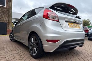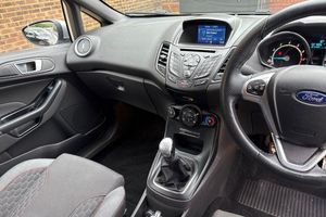 This 2016 Ford Fiesta ST Line is a remarkable find, boasting an exceptionally low mileage of just 22,996 miles from its single owner, supported by a full dealership service history with its last service completed on 16th September 2025 at 22,966 miles. This well maintained example features a responsive 1.0L petrol engine, meeting Euro 6 emissions standards, and comes with a 3 month warranty for your peace of mind. Inside, you'll appreciate the convenience of the Ford Navigation System with DAB and Ford SYNC, which includes Bluetooth connectivity, alongside manual air conditioning to ensure a comfortable journey. FULL MAIN DEALER SERVICE HISTORY! SPEC INCLUDES NAVIGATION & BLUETOOTH CONNECTIVITY. The ST Line trim enhances the already popular Fiesta, offering a sporty appeal. This particular model stands out with its impressive fuel economy, achieving up to 63 miles per gallon, and its low CO2 emissions make it an economical choice. Furthermore, its acceleration from 0 to 62 miles per hour in just 9.0 seconds indicates a lively performance that is better than many other vehicles in its class. Rear privacy glass adds a touch of style and comfort.