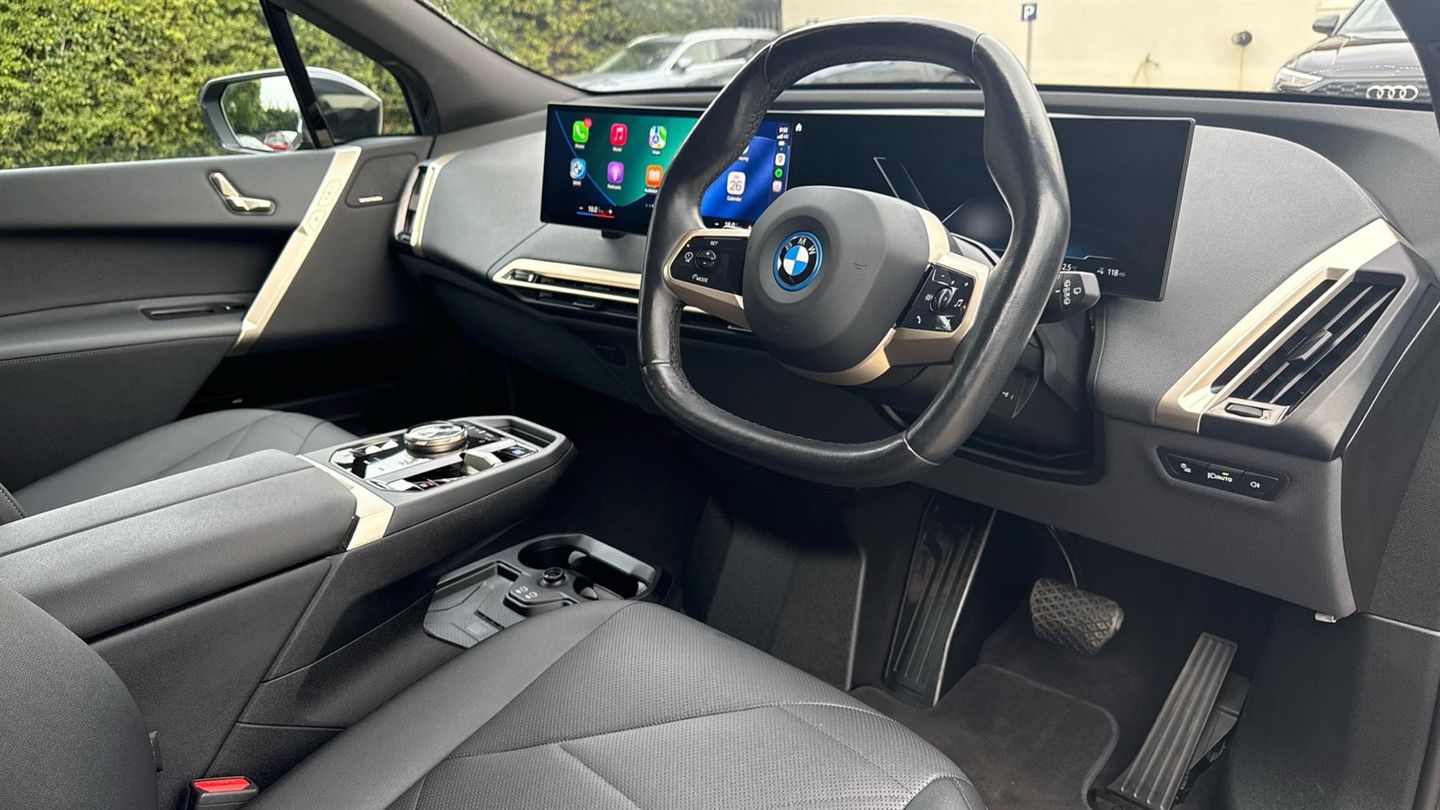 This BMW iX 240kw M Sport Edition in Sophisto Grey is 1 owner with Full BMW History. It features Soft Leather, Nav, Elec Seats, Carplay and a real world range of 250miles. Introducing this 2022 BMW iX, where luxury meets innovation. Experience the ultimate in driving refinement with Soft Leather seating that cradles you in comfort. Navigate with confidence using BMW HD quality Pro Navigation, while Collision Alert keeps you protected. Self Drive technology offers unparalleled convenience, transforming your journey. With a real-world range of 250 miles and All-Wheel Drive, explore further with assured performance. Seamlessly integrate your devices with CarPlay and immerse yourself in the pristine sound of the Harman Kardon Audio system. This car also feature the fully electric BMW Tow Bar with Electrics, this towbar folds away at the touch of a button. The BMW iX isn't just a vehicle; it's the future of electric driving excellence. Call our friendly team today..