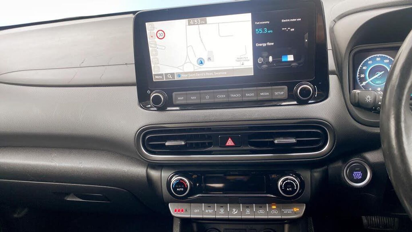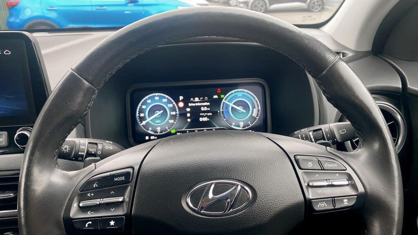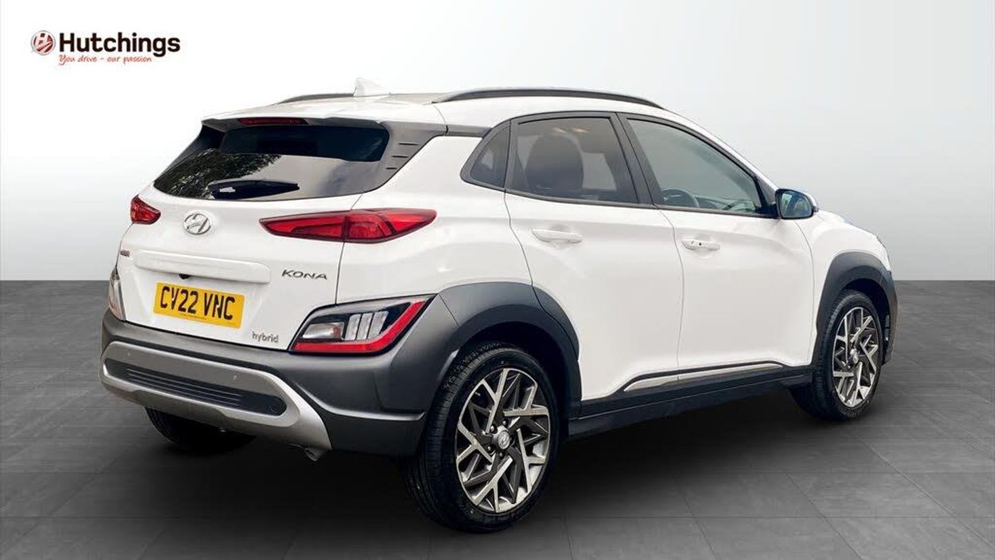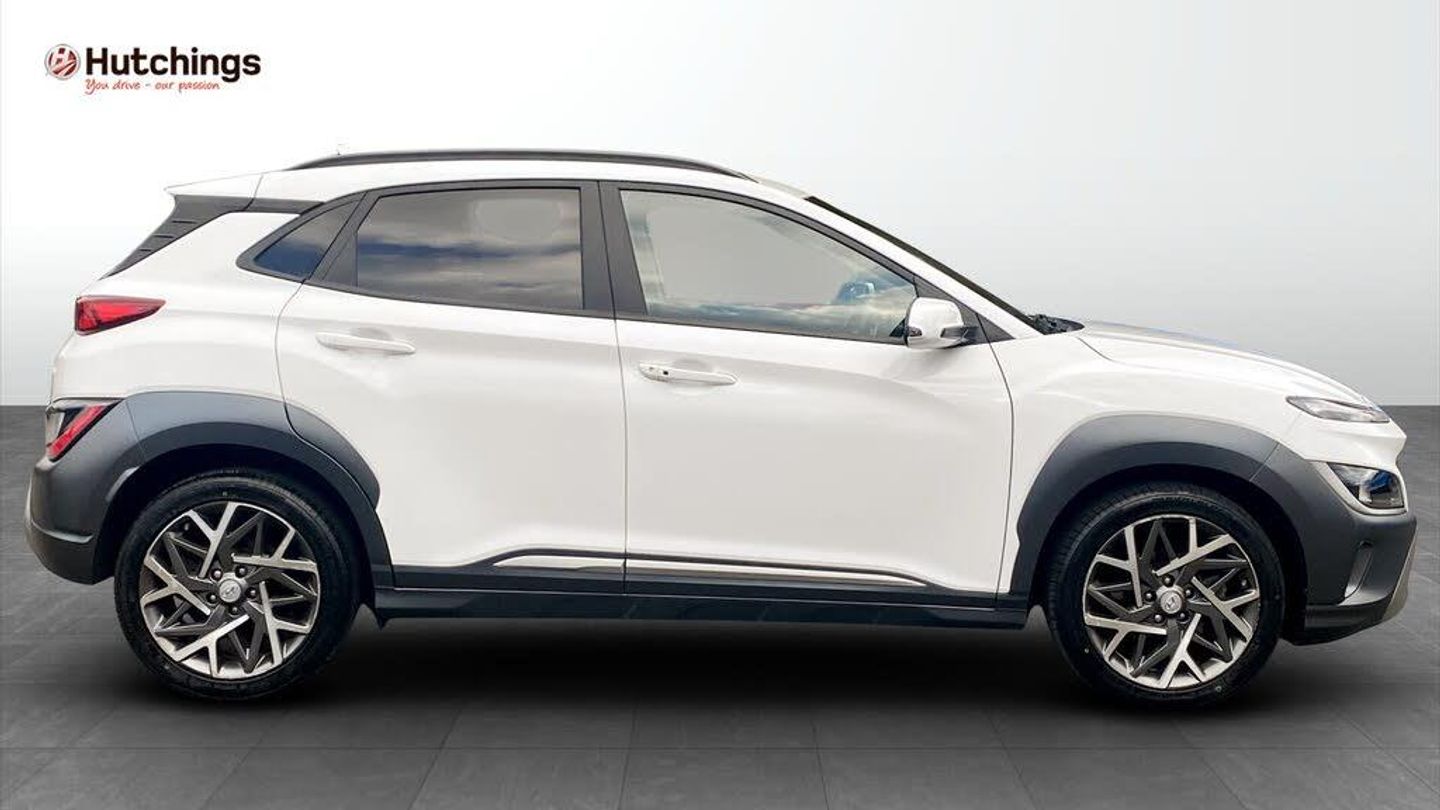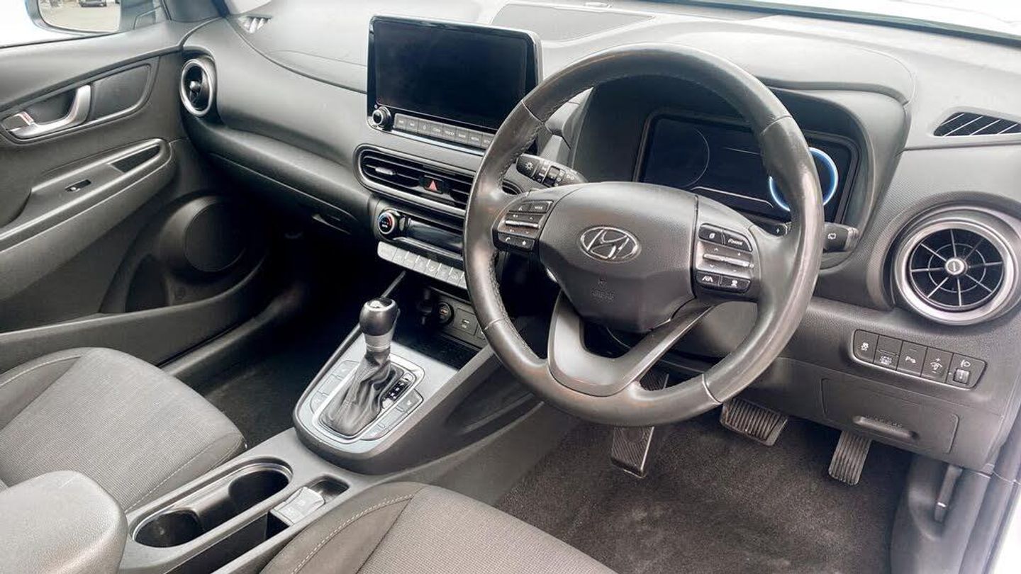 Hello, and thank you for taking the time to view our Approved Used Car listing.Here we are offering a superb Hyundai KONA 1.6 h-GDi Premium SUV 5dr Petrol Hybrid DCT Euro 6 (s/s) (141 ps), finished in elegant Atlas White. First registered in 2022 (22 plate) and with just 31,442 miles, this KONA offers the perfect mix of efficiency, technology, and practicality in a stylish compact SUV package.Performance & Efficiency141ps 1.6 Petrol Hybrid engine with smooth DCT Automatic transmissionSelf-charging hybrid technology for lower running costs and improved efficiencyExcellent fuel economy up to 55 mpg combined (WLTP)Euro 6 compliant and ULEZ-friendlyPremium Design & ComfortStriking Atlas White paint with Hyundais sleek SUV stylingPremium interior with quality finish and comfortable seatingHeated front seats and steering wheel for year-round comfortDual-zone climate control for personalised settingsTechnology & ConnectivityLarge touchscreen Satellite Navigation systemReversing camera with front & rear parking sensors for stress-free manoeuvringApple CarPlay & Android Auto smartphone integrationPremium audio system for an enhanced listening experiencePracticality & SafetyCompact SUV versatility with spacious cabin and practical boot spaceSplit-folding rear seats for added flexibilityHyundai SmartSense safety suite including Lane Keep Assist, Blind Spot Detection & Forward Collision AvoidanceAdaptive Cruise Control for more relaxed motorway drivingPeace of MindBalance of Hyundais 5-Year Unlimited Mileage WarrantyFull service history and meticulously maintainedExcellent condition inside and outThis Hyundai KONA Premium Hybrid is the perfect choice if youre looking for a modern, efficient, and stylish SUV thats packed with technology and designed for everyday life. Contact us today to arrange your test drive or request a personalised video walkaround of this fantastic KONA.-Stylish Hybrid KONA SUV