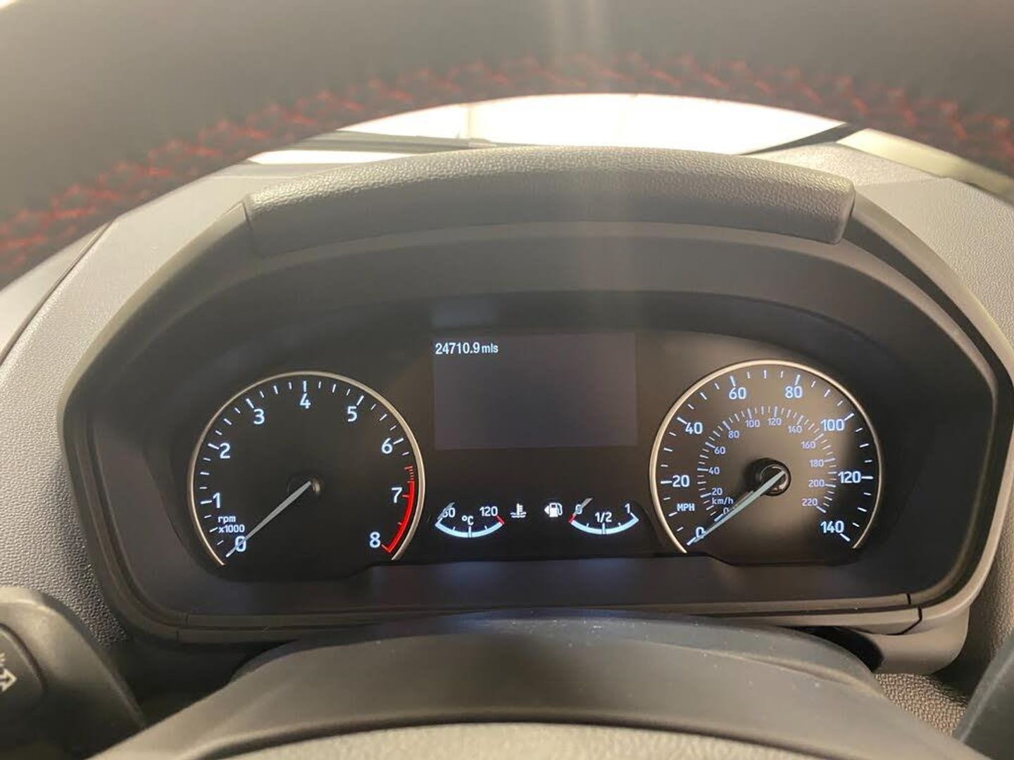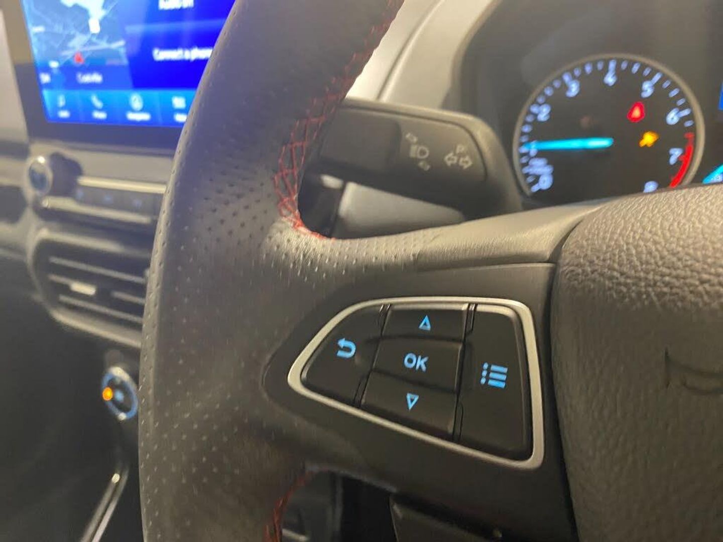Cruise control, e-Call (emergency call), Easy fuel capless refuelling system, Ford SYNC 3 nav system with DAB radio,8" screen, emergency assistance,Apple car play/Android auto, 2x USB, 6 speakers, Ford pass connect, Intelligent speed limiter, PAS, Rear parking sensors, Rear view camera, Traffic sign recognition, Trip computer, Sports suspension, Steering wheel mounted audio controls, Auto dimming rear view mirror, Automatic front wipers, Automatic headlights, Black roof rails, Body colour door handles, Body coloured bumpers, Chrome lower window surround, Electrically adjustable and heated door mirrors, Front fog lights, Front grille bars and surround in black, Headlight levelling control, Large rear roof spoiler, LED day running lights, LED third brake light, Power front and rear windows, Puddle lights, Quick-clear heated windscreen, Rear side wing doors, Rear wiper, ST Line body styling kit - Black headlamp bezel, front and rear sport bumpers, body colour lower door claddings, 12V socket in front and rear, 3 seat bench in 2nd row, 60/40 split rear seats, Ambient lighting, Centre console with sliding front armrest, Cooled glovebox, Courtesy lights with map reading light, Driver seat height/lumbar adjust, Driver's side glovebox, Driver/passenger sunvisors and lidded vanity mirrors, EATC - Electronic Auto Temperature control, Folding grab handles, Front head restraints, Front seat back map pockets, Illuminated glovebox, Illuminated luggage compartment, Isofix system on outer rear seats, Luggage compartment carpet, Neosuede/Partial sensico leather upholstery, Overhead console with sunglasses holder, Rake adjustable rear seats, Reach + rake adjustable steering column, Rear headrests, Sensico trimmed steering wheel, handbrake and gearshift gaiter with red stitching, Single front passenger seat, ST-Line Front floor mats with red stitching, Stainless steel sports pedals, Storage drawers under front seats, Tie down hooks, Variable boot floor, 3x3 point rear seatbelts, ABS, Autonomous emergency braking, Child locks on rear doors, Curtain airbags, Driver airbag, Drivers knee airbag, Electronic Stability Programme with hill launch assist, Front passenger airbag deactivation, Front side airbags, Passenger airbag, Pre collision assist system with AEB, Seatbelt reminder for driver and front passenger, Traction control, Tyre pressure monitoring system, Immobiliser, MyKey system, Remote central locking, Thatcham 1 volume sensing alarm, Low rolling resistance tyres, Tyre inflation kit