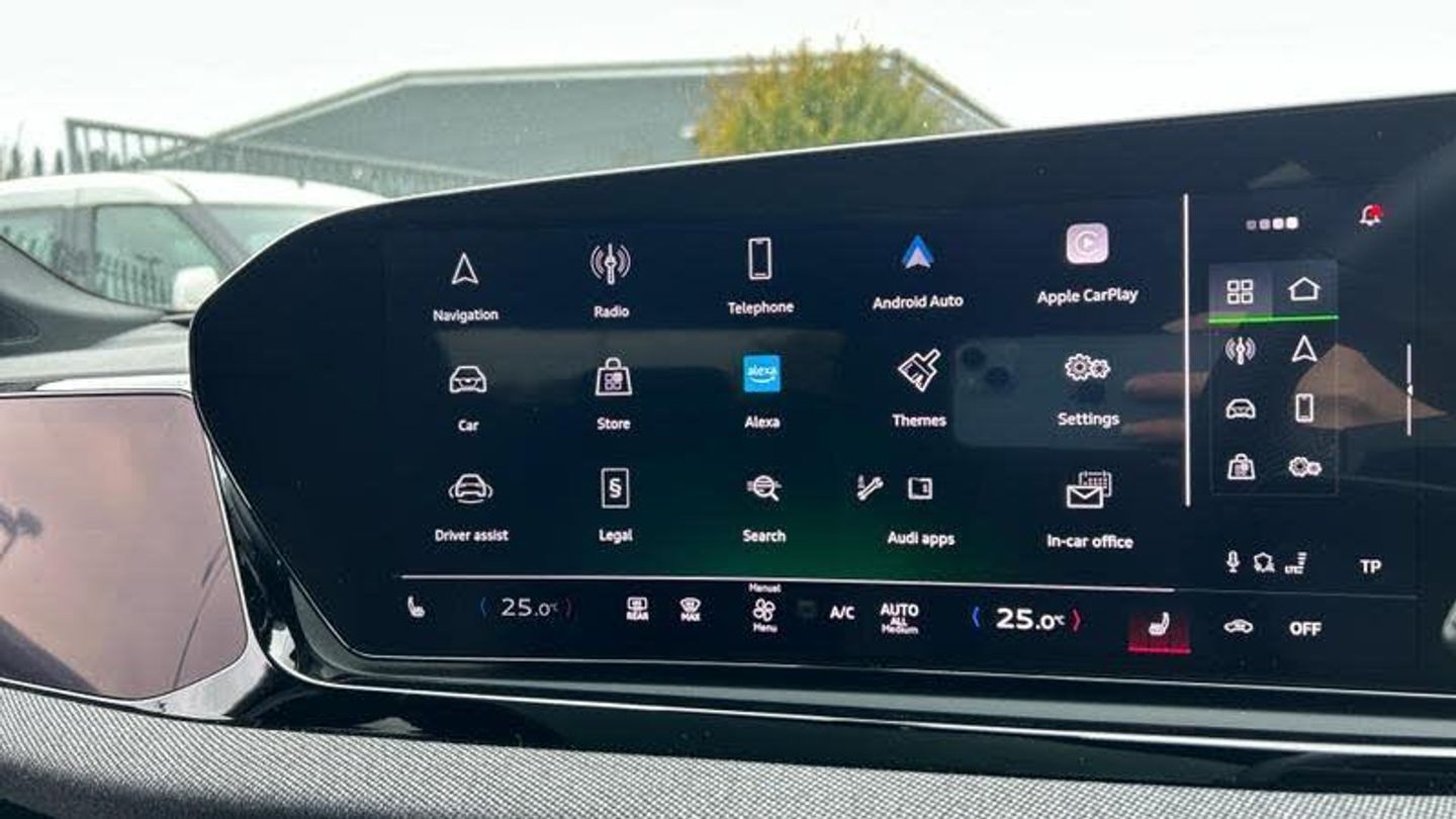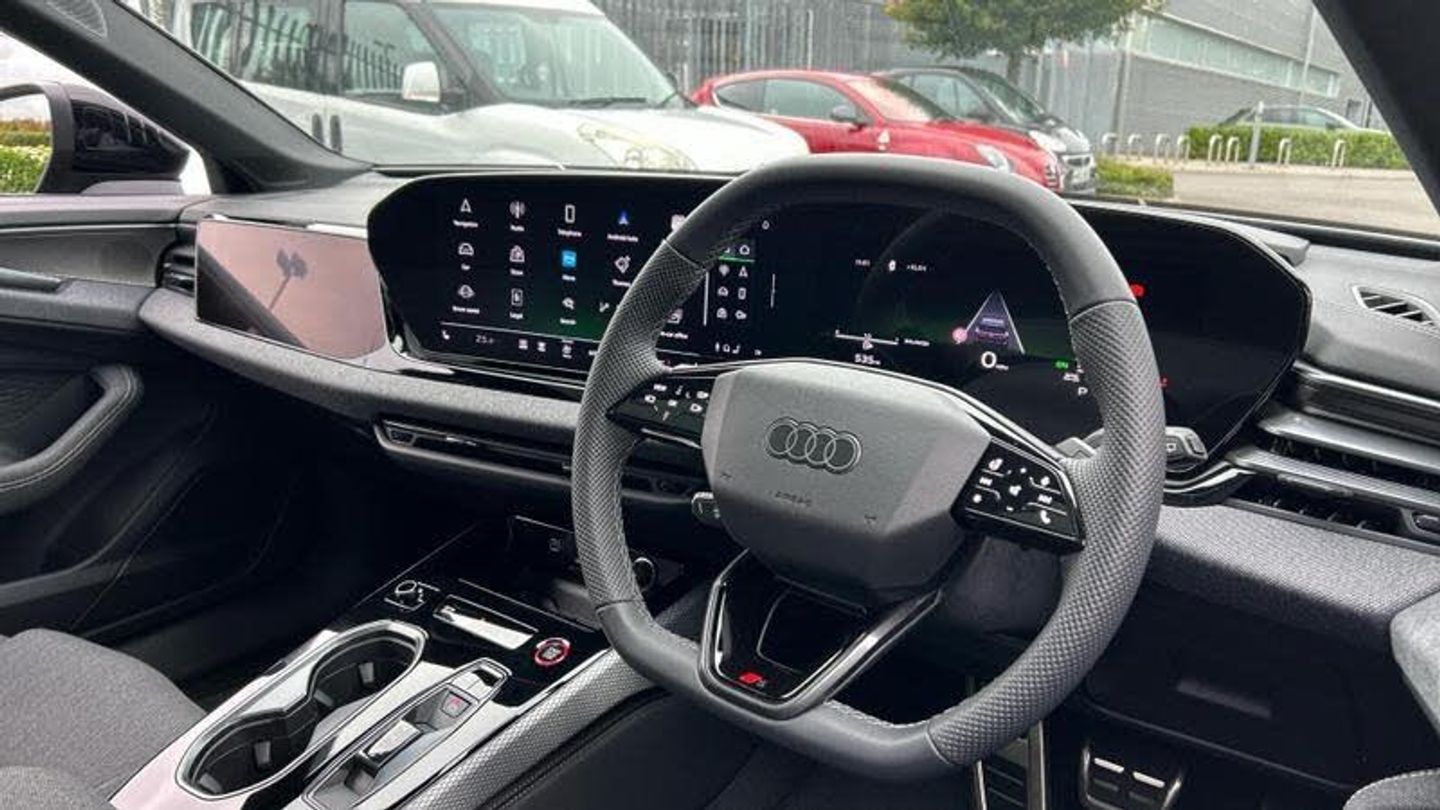 Steering wheel heating, Special edition, Power door closure, Front cross-traffic assist, Surround view cameras, Cascade cloth with rhombus pattern and embroidered 'S' emblem, edition one, Tech pro, Cascade cloth / leatherette combination, MMI experience pro, Interior trims in vanadium look, Sun protection glass - tinted, Ambient lighting package plus with dynamic interaction light, Sport seats - front, Wraparound interior elements in Cascade cloth, Increased charging capacity for USB ports, Stainless steel pedals and footrest, Door sill trims with aluminum inlays - front - illuminated - S emblem, Ramp-up scenario F, Internal control code, AER:0P9, Projection light in the exterior mirrors, Sport leather steering wheel - 3-spoke - flat top and bottom with multifunction and shift paddles, Increase in initial standard fuel filling, Steering wheel adjustment - electric, Bumpers - S line, Panoramic Roof with switchable transparency, Rail system with load-securing kit, Roof rails in Black, Seat heating - front and rear, Swerve assist and turn assist, Window trim strips and attachments - dark, Head restraints - front, Side airbags - front and rear with head airbag system and interaction airbag - front, Comfort center armrest - front, Black exterior mirror housings, Steering wheel trim in chrome look - S emblem - st. wheel grips in perforated leather and contrasting stitching, Exterior mirrors - electrically - adjustable - heated and folding - on automatically dimming on both sides, Audi Sport wheels - multi-spoke, Upper and lower interior elements with contrasting stitching, 4-way lumbar support for the front seats, Proactive passenger protection system for front - sides and rear, Matrix LED headlights with dynamic indicator, 4-zone deluxe automatic air conditioning, Bang & Olufsen 3D Premium Sound System, Control number for comfort package, Climate Control package plus, MMI experience pro, Assist package Drive and Park plus, Assist package - protective and warning systems plus, Interior equipment 9, Equipment options subset for Great Britain, [Audio and Communications]MMI front passenger display, [Drivers Assistance]Adaptive cruise assist plus, Head-up display, Lane departure warning with emergency assist, [Exterior]S line exterior, Acoustic glazing for door and side windows, Black door handle inserts, [Illumination]LED headlights plus, Digital OLED rear lights, Headlight cleaning system, [Interior]Garage door opener, Air Quality package, Inlays - matt brushed aluminium with linear embossing - anthracite, Headlining in cloth - Black, [Performance]All-wheel steering, Adaptive air suspension, [Safety and Security]Side assist with exit warning and rear cross-traffic assist