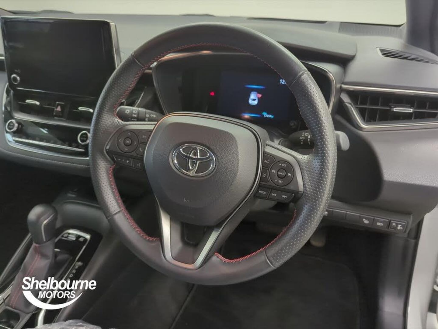 7" Multi information display screen, Bluetooth telephone connectivity, Connected car functionality upgrade, tracker, remote status and e-care, Dynamic radar cruise control (with RSA) including switch on steering wheel, E-call, Electrically assisted power steering, EV drive indicator, Head up Display, Intelligent park assist, Lane Departure Alert (LDA) switch on steering wheel, Memory on adjustable speed limiter, Push button start, Reversing camera, Smartphone integration with Apple CarPlay and Android auto, Gasoline particulate filter, Vehicle Stability Control (VSC), 6 speakers, 8" Touchscreen with MM19 Multimedia system and voice recognition, AM/FM radio, DAB Digital radio, Toyota touch 2 with go navigation system, USB and Aux in connectors + 12V front outlet, Anti-jam protection on power windows, Auto dimming inside rear view mirror, Auto up and down function on all power windows, Automatic folding mirrors, Automatic headlights with high beam assist, Black toyota logo in front, Black window frames, Body colour rear spoiler, Body coloured bumpers, Body coloured door mirrors, Body coloured outside door handles, Follow me home headlights, LED daytime running lights, LED front fog lights, LED Headlights, LED High mounted stop light, LED rear combi lights with LED lightguide, Piano black surround on lower front grille with dark chrome mesh effect, Power adjustable heated door mirrors, Power front windows, Power rear windows, Privacy glass, Rain sensing wipers, Rear bumper with satin chrome plated inserts, Rear side wing doors, Rear window defogger, Rear window wiper, Reverse tilting door mirrors, Shark fin antenna, Time adjustment on intermittent wiper, Turning signal integrated indicators in door mirrors, Unique lower skirt, Unique side rocker with black insert, UV-filter on driver and passenger windows, 3 rear headrests, 3 seat bench in 2nd row, 3 spoke leather steering wheel + gear knob, 60/40 split folding rear seat, Adjustable speed limiter switch on steering wheel, Alcantara/partial leather upholstery, Audio, multimedia and telephone switches on steering wheel, Boot light, Centre room light, Clean air filter, Driver and front passenger personal light, Driver and passenger assist grip, Driver and passenger seatback pockets, Driver and passenger sun visor with mirror and light, Dual zone automatic air conditioning with ECO mode switch, Fabric armrests, Front and rear cup and bottle holders, Front door pockets, Front head restraints, Front passenger seat, Heated driver and front passenger seats, Illuminated entry system in room lamp, ISOFIX seat fixing (2 fixings on rear outer seats), Leather gear shift with satin chrome on gear shift console, Manual height adjustable for driver and front passenger seat, Parcel shelf, Pollen filter, Power adjustable lumbar support on driver seat, Power window switches with satin chrome inserts, Rear armrest with 2 cupholders, Rear passenger coat hooks (2), Satin chrome inside door handles, Shopping bag hooks in luggage compartment, Sliding armrest on centre console box, Slow opening glovebox with lights, Sports seats, Tilt/telescopic steering column, Voice recognition switch on steering wheel, Whiplash Injury Lessening (WIL) feature (active headrest) for seats, Parking pack - Corolla, Toyota safety sense 2 pack - Corolla, 3x3 point rear seatbelts, Adjustable driver and front passenger seat belt extender to top anchor point, Anti lock braking system + Electronic brake force distribution, Brake assist function, Child locks on rear doors, Downhill Assist Control (DAC), Electronic parking brake, Emergency brake light signal (EBS), Front passenger airbag on/off switch, Front seatbelt reminder, HAC - Hill start assist control, Rear seat belt reminder, Seatbelt pretensioners and force limiters, Supplemental restraint system (SRS) 7 airbags - dual driver, dual side curtain, side impact and driver knee airbags, Traction control, Tyre pressure warning system, Acoustic vehicle alert system (AVAS), Alarm with motion sensor and immobilizer, Remote central locking + deadlocks, Smart entry, Satin chrome dash trim, Soft touch texture on upper dashboard, Tyre repair kit, Unique wheel finish with red wheel cap