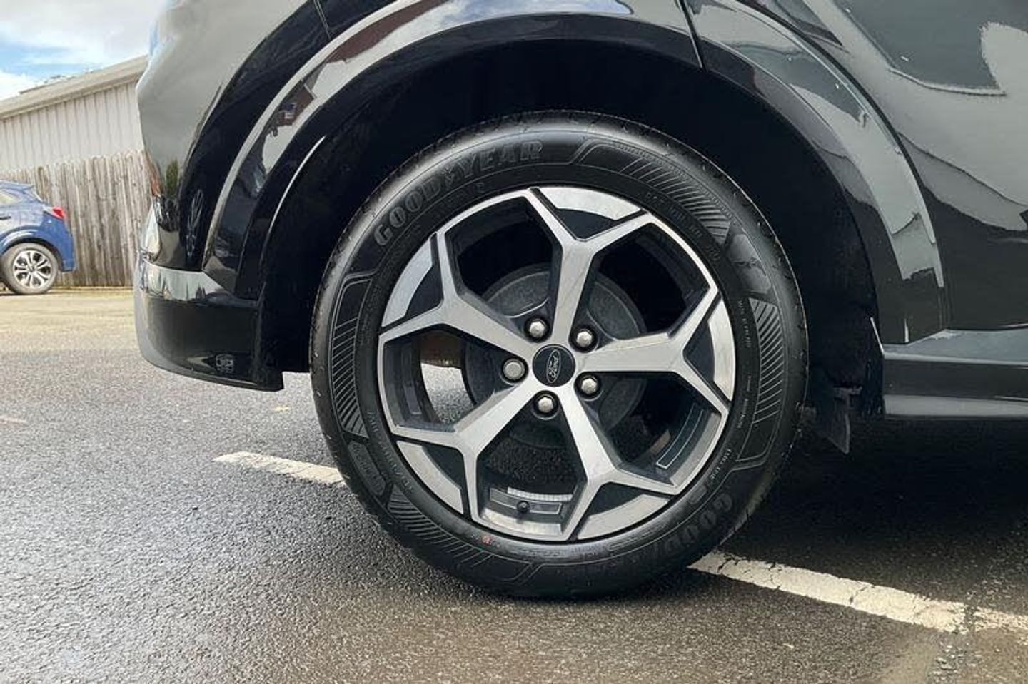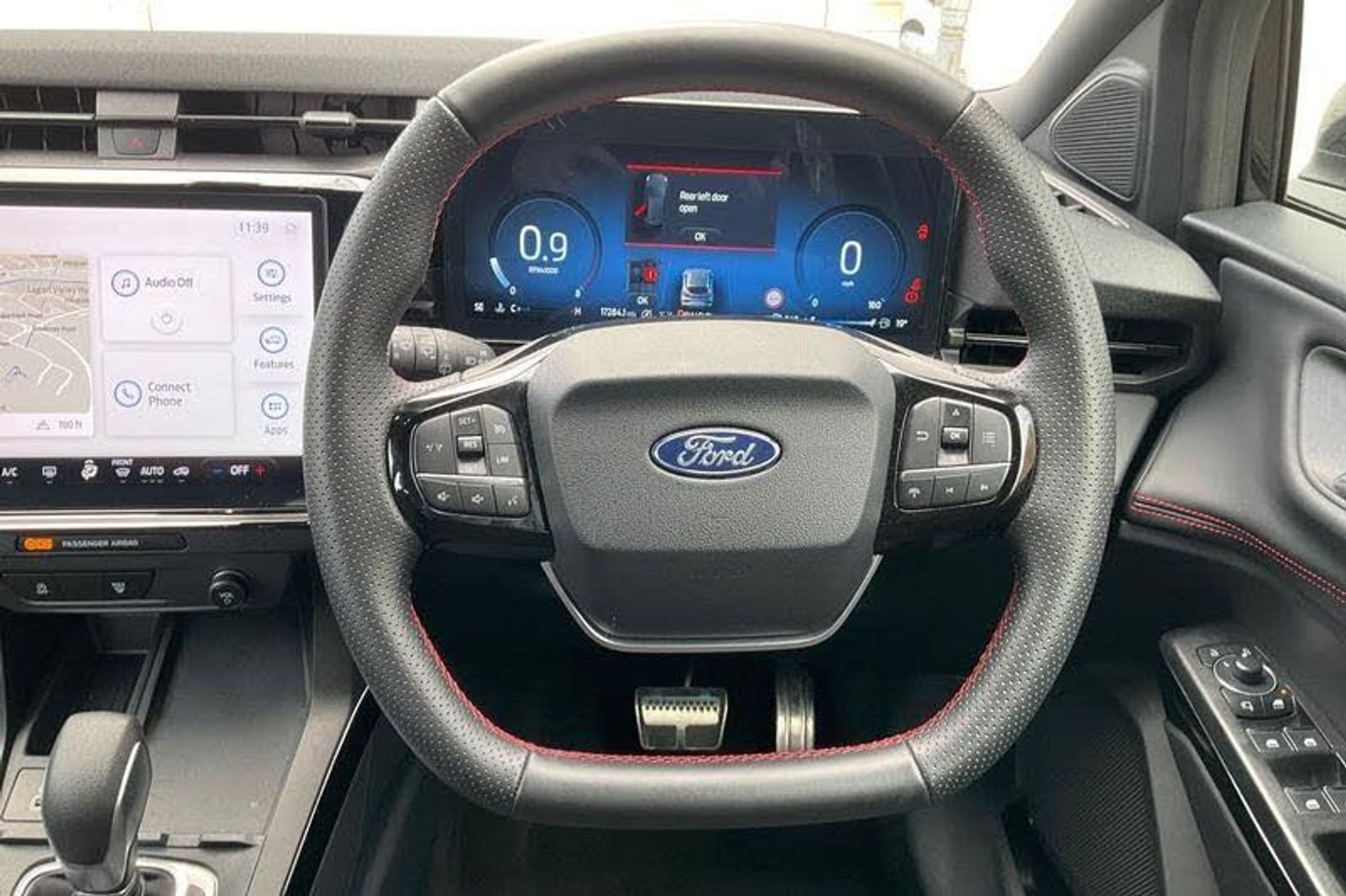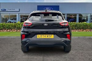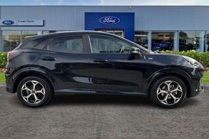 Driver impairment monitor, Emergency call service, Ford easy fuel, Full digital 12.8 instrument cluster, Lane keeping aid with lane departure warning, Power assist steering, Selectable drive modes(Normal, sport, Eco, trail, slippery), Speed sign recognition, Automatic headlights with rain sensing wipers and auto high beam, Front fog lamps, LED daytime running lights, LED rear lamps, LED third brake light, Power foldable heated door mirrors with puddle lamps and puma logo protection, Quickclear heated windscreen, Rear privacy glass, Rear side wing doors, Rear wiper, ST-Line body styling kit with unique grille, 3 seat bench in 2nd row, Centre console with armrest and stowage, Electronic automatic temperature control (EATC), Ford megabox extended bootspace, Front and rear head restraints, Front floor mats, Manual 4 way driver seat adjust with lumbar adjustment, Single front passenger seat, ST- Line cloth trim with red stitching, 3 rear seatbelts, Child safety lock, Electronic stability control (ESC) and hill start assist, Pre-collision assist with autonomous emergency braking, pedestrian/cyclist detection & post-collision braking, Tyre pressure monitoring system (TPMS)