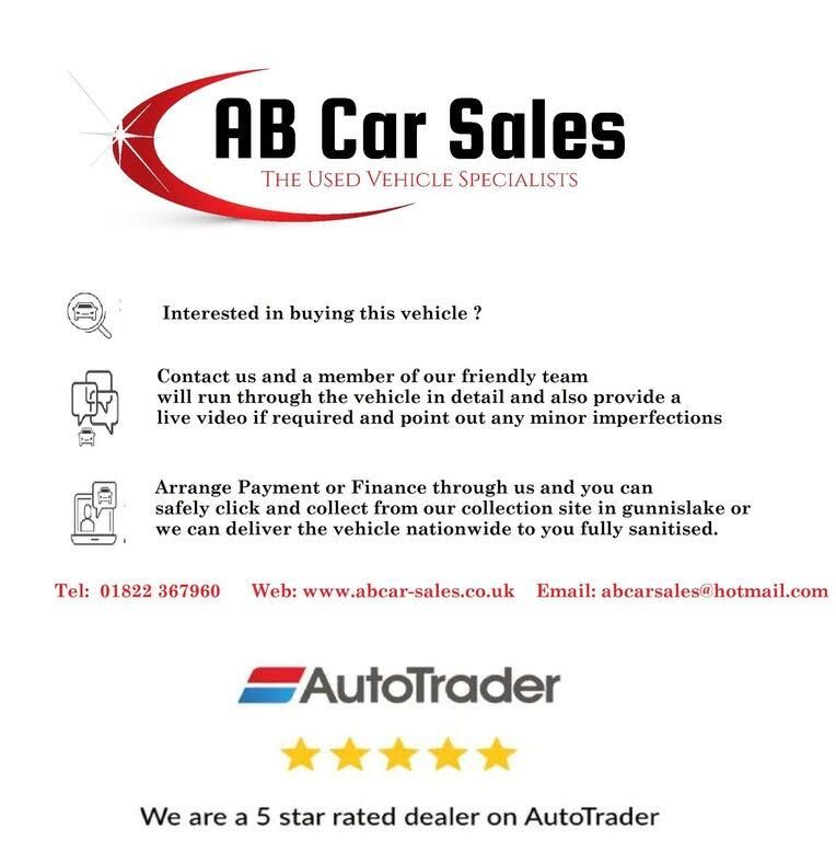 Welcome to AB Car Sales Your 5-Star Rated Used Vehicle Specialist in CornwallAt AB Car Sales, we take pride in offering a premium selection of quality used vehicles, all prepared to the highest standards. Every car we sell comes with a new or long MOT and is serviced if required for your peace of mind.Where possible, we supply each vehicle with two keys and, if not a full service history, then a comprehensive one to ensure you know exactly what youre buying.Interested in a vehicle? Were happy to offer live video viewings via FaceTime or WhatsApp so you can see the car in detail from the comfort of your own home. Our team will walk you through its condition and answer any questions to ensure youre completely satisfied before making a purchase or placing a deposit over the phone.As finance specialists, we can help you secure competitive finance options, with same-day drive-away finance available.We also offer:Evening appointments in our indoor showroom.Nationwide delivery at a reasonable rate.Let us help make your car buying experience as smooth and convenient as possible.-UK DELIVERY+FINANCE AVAILABLE-CALL US TODAY ON 07342171858 TO ARRANGE A VIEWING, OPEN 7 DAYS A WEEK BY APPOINTMENT ONLY.