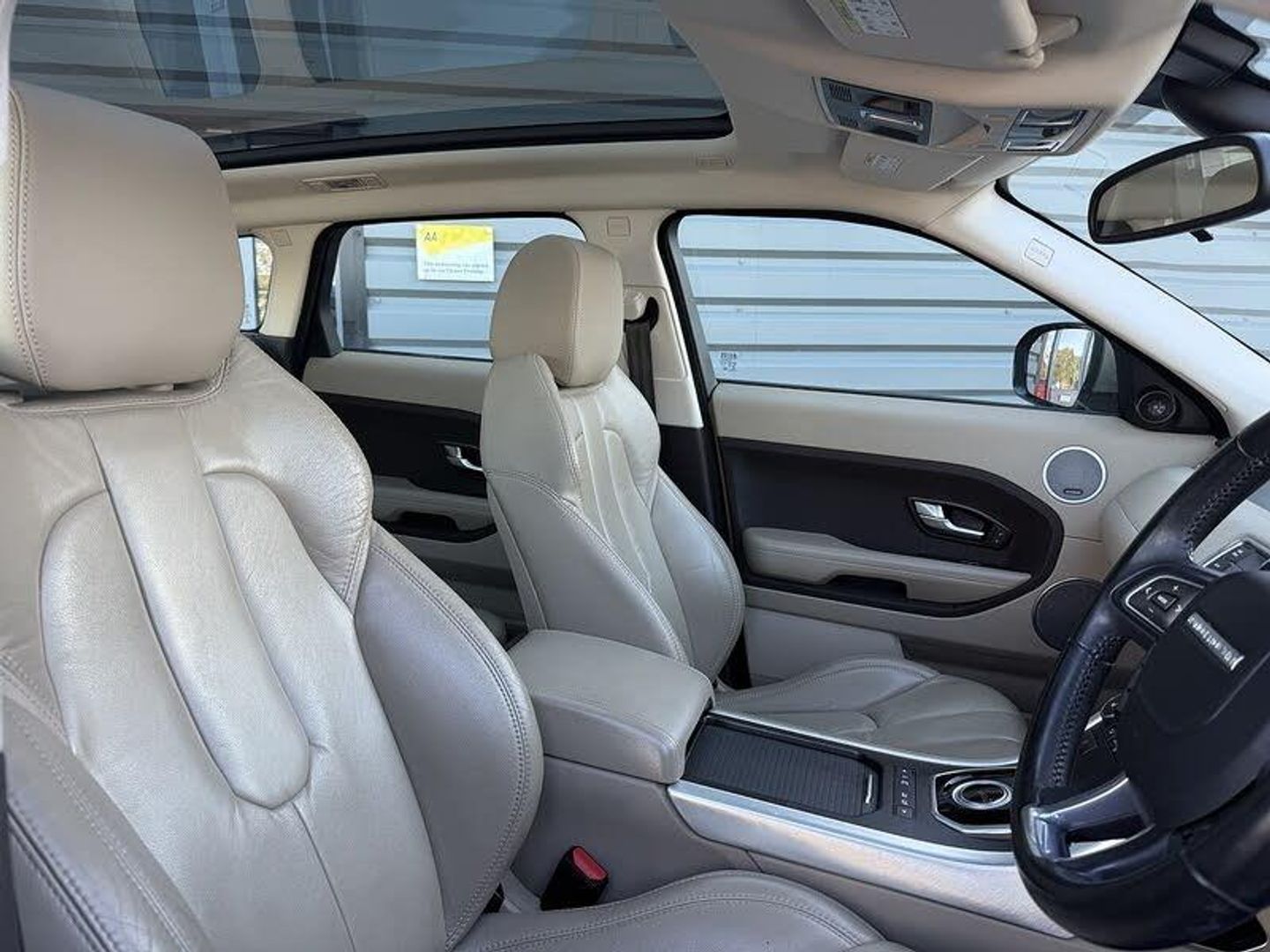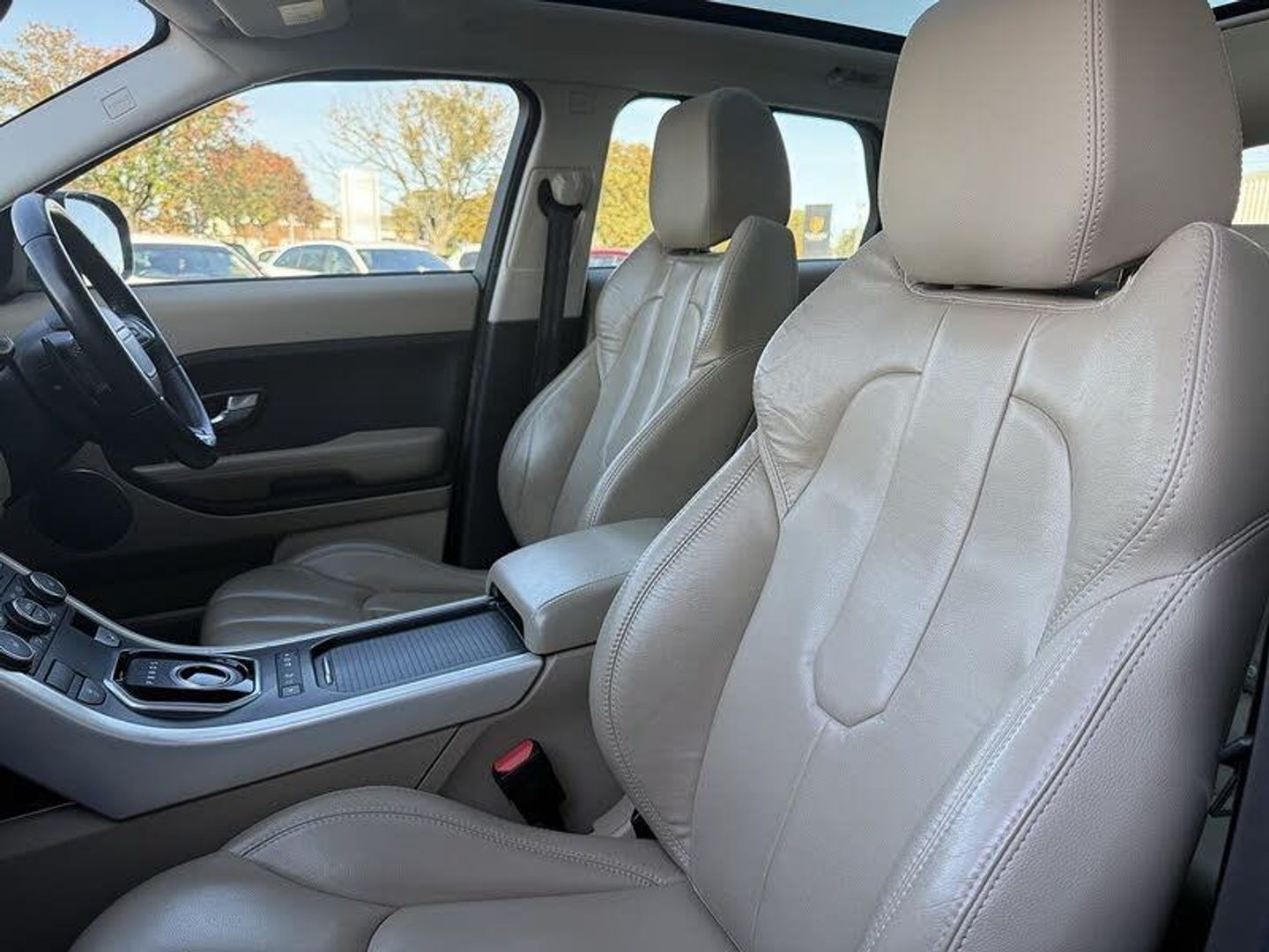 Audio System - 825W Meridian Surround Sound System with radio and single slot CD - 16 speakers,Glass - Privacy - Rear of B Post,Grained Leather - Almond/Espresso,HDD Premium Navigation with Touch Screen,Ipanema Sand,Roof - Fixed Panoramic, 10 Speakers, 3.5mm Stereo Auxiliary Input Socket, 380W Meridian Surround Sound System, 5in TFT Driver Information Centre, 8in High Resolution Touch Screen, Audio Connectivity System, Audio System - 380 Watt Meridian Sound System with Radio and Single Slot CD, Audio System - DAB, Auxillary Power Sockets - front-rear and load space, Auxillary Power Sockets - Rear and Load Space, Bluetooth Telephone Connectivity, MP3 disc and file compatibility, Subwoofer, USB Connectivity, Cruise Control, Parking Aid - Rear, Terrain Response, 18in Alloy Style 2 - Sparkle Silver, Door Mirrors - Electric Adjustment and Heated, Evoque Badge in Black, Four electric windows with one touch opening, Front bumper blade, Global opening for windows - windows open via remote key, Land Rover - Tyre Repair System, Locking Wheel Nuts, Rear spoiler, Side fender blade grille and tailgate finisher in brunel, Waist finisher - High Gloss Black, Windows - Heated Rear Windscreen, Headlights - Halogen and Manual Levelling, Armrest - Rear Centre with Storage Compartment and 2 Cupholders, Auxiliary Heater - Electrical Positive Temperature Coefficient, Centre console - Covered Storage Compartment, Climate Control - Automatic with Air Filtration, Cupholders x2, Electric drivers seat height adjustment, Heated Front Seats, Illumination - Footwell, Illumination - Front Header Cour with delay Theatre dimming + Maplights, Illumination - Glovebox, Illumination - Load Compartment Light, Illumination - White Lighting in door release and over head console downlighter, Interior Mood Lighting, Leather Gear Knob, Leather Steering Wheel, Light Pipe with Controllable Colour and Intensity x2 - LED, Luggage Compartment - Anchor Points, Luggage Cover, Proximity Sensing and Touch Detection For Overhead Map Lights, Push Button Start, Satin Brushed Aluminium Centre Console Finisher and Satin Brushed Aluminium IP Finisher, Seats - 60/40 Split, Seats - Pure Grained Leather Pack 1, Seats - Rear Centre Head Restraint, Steering Column - Manual For Height and Reach Adjustment, Steering Wheel Mounted Audio Controls, Sun Visors - Illuminated Vanity Mirrors, EPAS - Electronic Power Assisted Steering, ABS - Anti Lock Braking System, Airbags - Driver Knee, Airbags - full length curtain, Airbags - Full Size Driver, Airbags - Full Size Passenger, Alarm System - Volumetric, Audible Seat Belt Warning, DSC - Dynamic Stability Control, EBA - Emergency Brake Assist, EBD - Electronic Brake-Force Distribution, EDC - Engine Drag Torque Control, EPB - Electronic Park Brake, Hazard Warning Lights Under Heavy Braking, HDC - Hill Descent Control, HSA - Hill Start Assist, ISOFIX Child Seat Anchor Points, Range Rover Smart Key Controls - Remote lock-Unlock-Double Lock-Lights on Tailgate Open, Remote Central Locking, RSC - Roll Stability Control, TCS - Traction Control System, TSA - Trailer Stability Assist