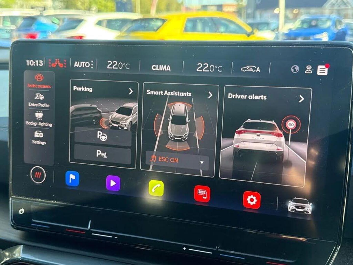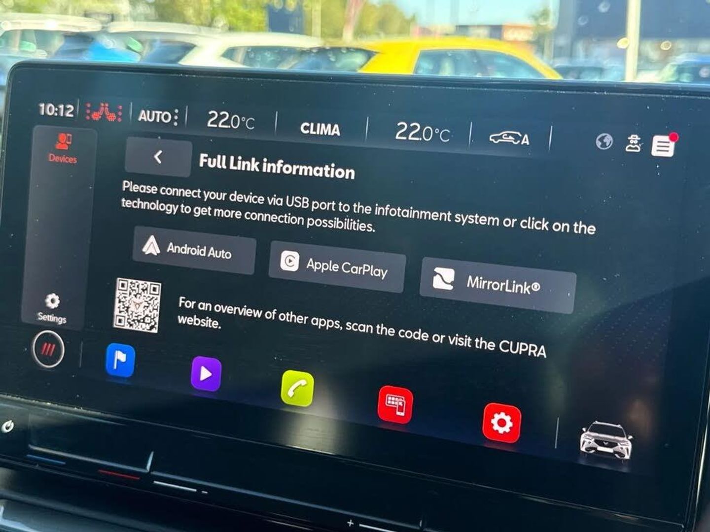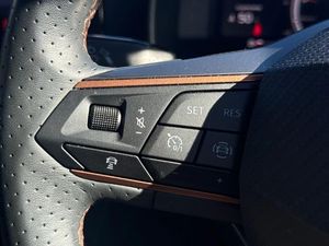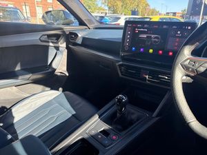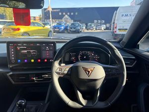 Digital cockpit and configurable dashboard,Driver alert system,Driving profile selection,Forward collision warning with automatic braking,Lane assist,Navigation system with 12'' Touchscreen Display,Park assist (inc front/rear parking sensors),PAS,Predictive adaptive cruise control with speed limiter,Rear view camera,RPM, trip computer, outside temp gauge, instrument light brightness, low fuel warning light, lights on reminder, gearshift indicator,Service interval indicator,Start/stop system with regenerative braking,Voice control system,Wired Android Auto,Wireless apple carplay,Wireless phone charger,Electronic locking differential and dynamic traction support,Standard suspension,2 front and 2 rear USB type C sockets,Auxiliary input socket,DAB radio,Auto dimming rear view mirror,Body colour door handles,Body coloured bumpers,Dark grey wing mirror,Daytime running light with automatic headlight control and coming home feature,Dynamic headlight range control,Electric front/rear windows,Electrically adjustable heated and folding door mirrors with memory function,Front fog lamps with cornering function,Gloss black roof rails and window surrounds,LED Headlights,LED Taillights with dynamic indicator,Rain sensing wipers,Rear diffuser with black simulated exhaust pipes,Rear side wing doors,Rear wash/wipe,Third brake light,Tinted rear windows,Welcome lights,12v power supply in centre console,12V socket,12v socket in loadspace,2 front and 2 rear reading lights,230V socket,3 seat bench in 2nd row,60/40 split rear bench seat with armrest and mechanical seat release,Black headlining,Dust/pollen filter,Front and rear head restraints,Front centre armrest,Height/reach adjust steering wheel,Illuminated interior front door sills,Illuminated sunvisor with mirror,Isofix,Leather multi function steering wheel,Luggage tie-down hooks,Single front passenger seat,Three zone climate control with control panel in rear,Variable luggage/load compartment floor,Wraparound lighting,Genuine Nappa leather Pack - Cupra,Safety and driving pack (M) - Formentor,3 point seatbelts on all rear seats,ABS,Brake control system - ESC and brake booster,Child proof door locks,Driver and front passenger airbags with front passenger airbag de-activation,Electronic parking brake,Front and rear disc brakes,Front side curtain airbags,Hill hold control,Public e-call,Seat belt reminder for front and rear seats,Tyre pressure monitoring system,Anti theft alarm system,Keyless entry and start system (KESSY),Locking wheel bolts,Copper and aluminium interior detailing,19" 'Exclusive' machined sport matte black and silver alloy wheels