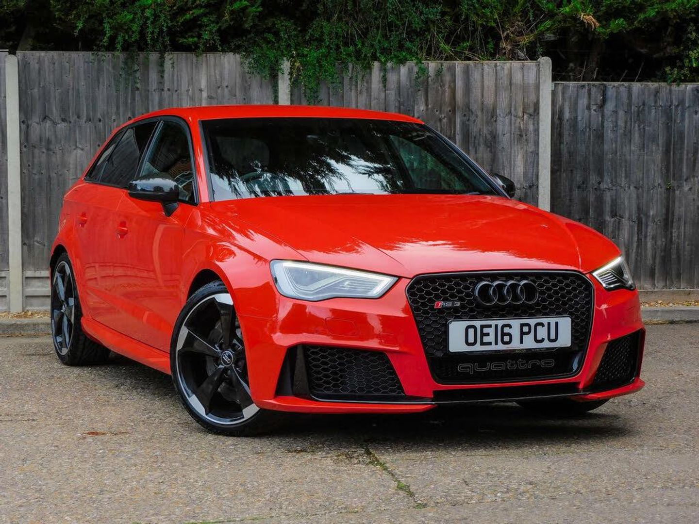 Audi Sound System, 19in Alloy Wheels - 5-Arm Rotor Design Diamond Cut - Anthracite Black High Gloss Finish, Brake Calipers - Red with RS3 Logo, Privacy Glass, Styling Package - Extended Matt Aluminium, Headlights - High-Beam Assist, Auto-Dimming Rear-View Mirror, Catalunya Red, Fine Nappa Leather with Diamond Quilting - RS Super Sports Seats - Black/Rock Grey Stitching RS3 Logo