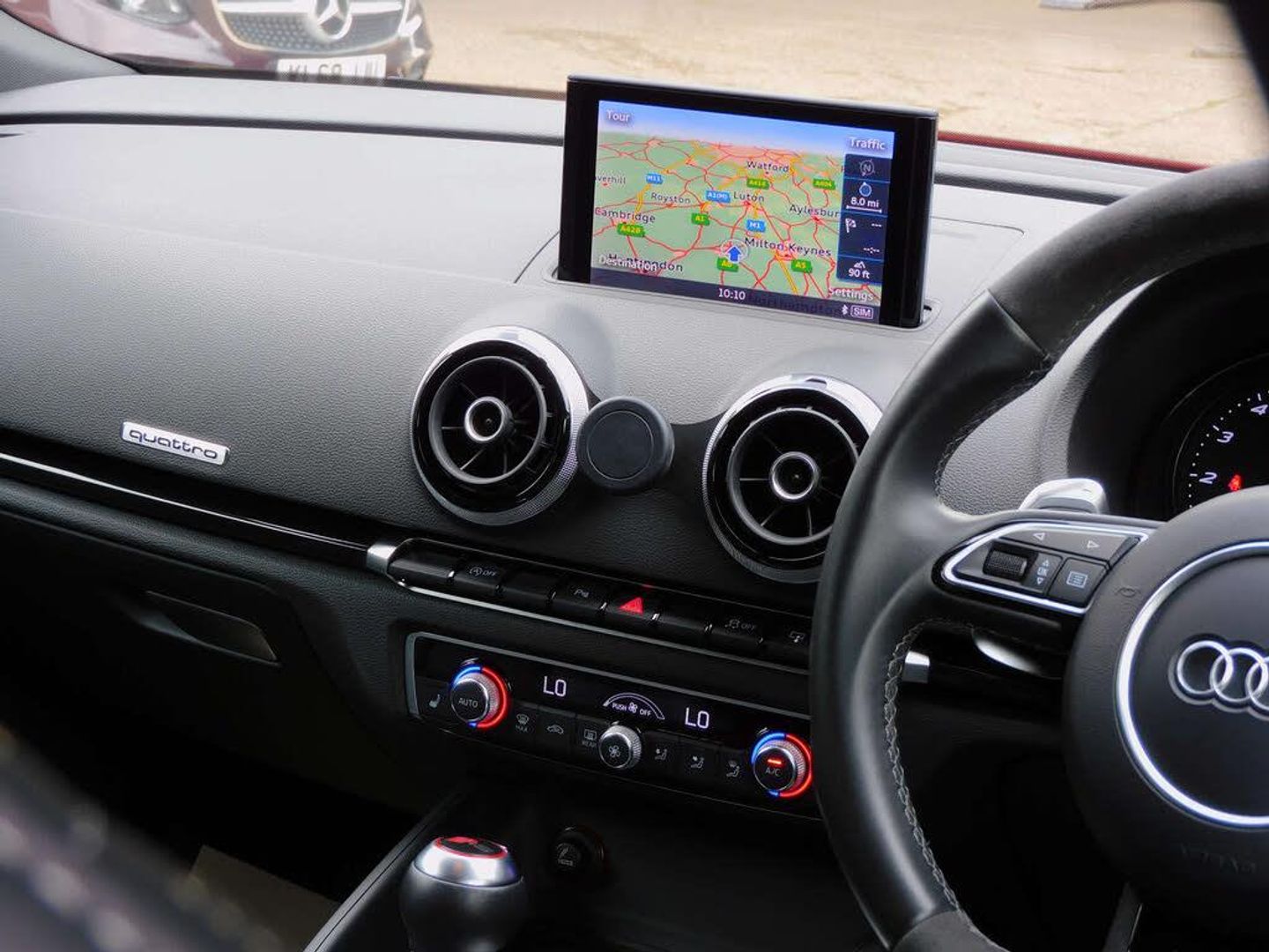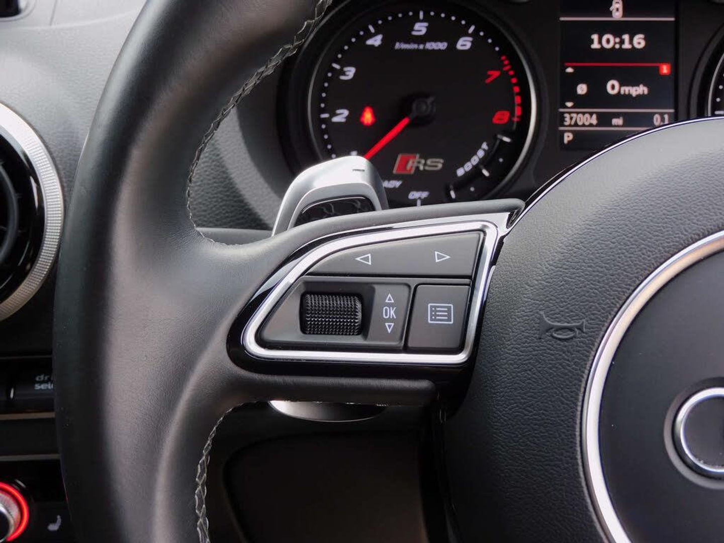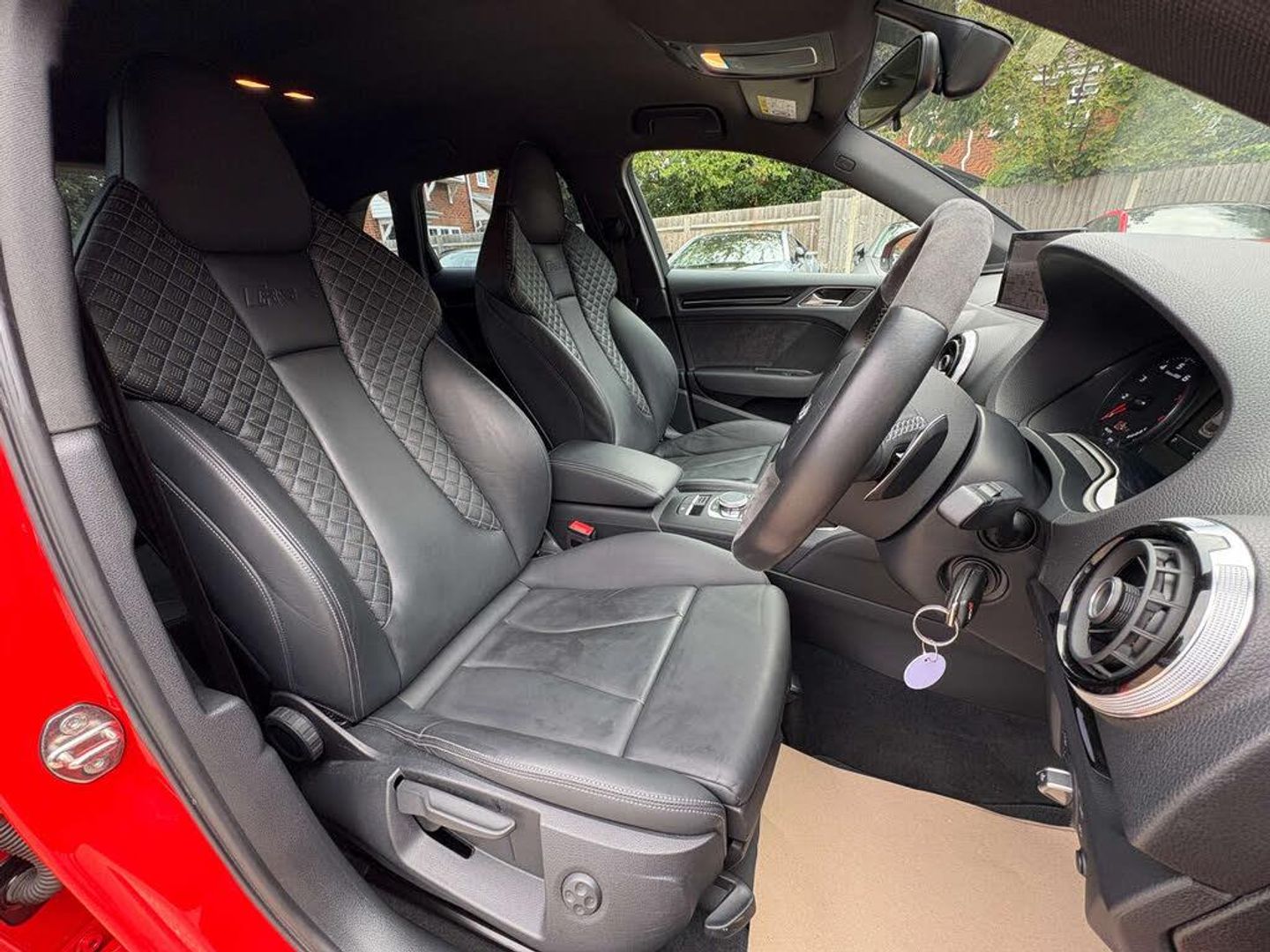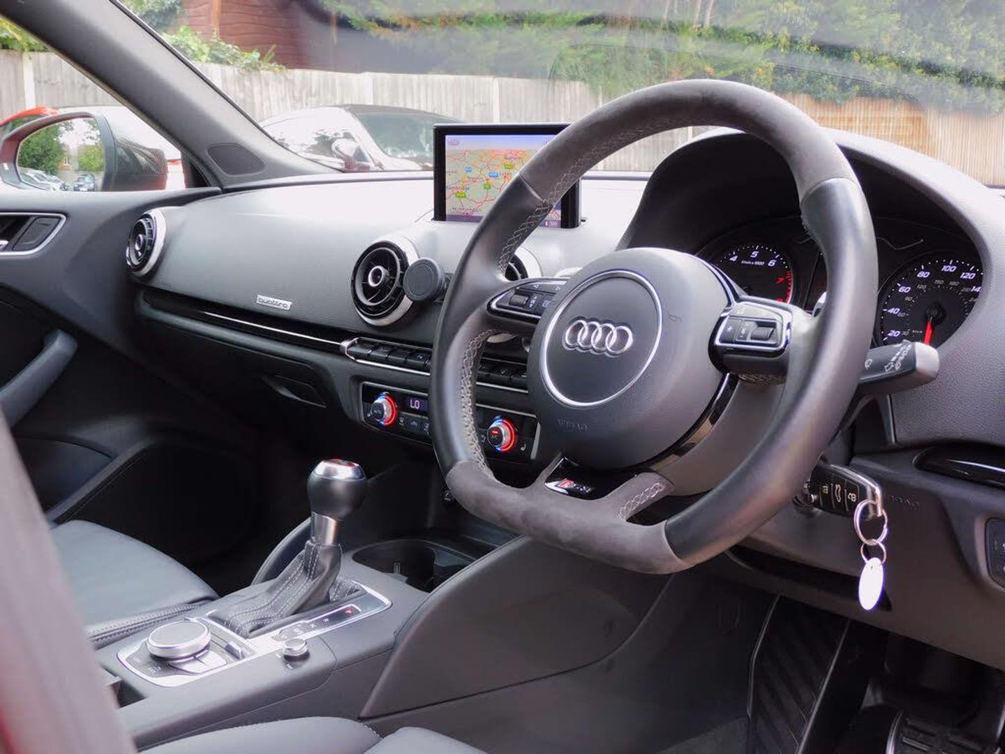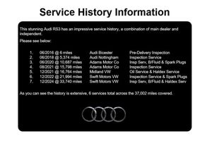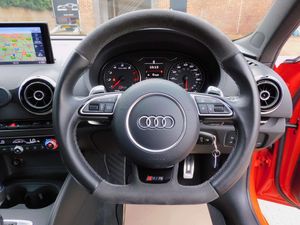 The spec on this vehicle is; 19-inch Rotor diamond cut alloys, RS Super Sports Seat - Diamond Quilting, Front & rear park assist, DAB digital radio, Satellite navigation system, Bluetooth with media connectivity, Auto lights & auto wipers, RS3 stainless steel entry plates, Paddle shift gear change, Heated front seats, Dual automatic climate control.