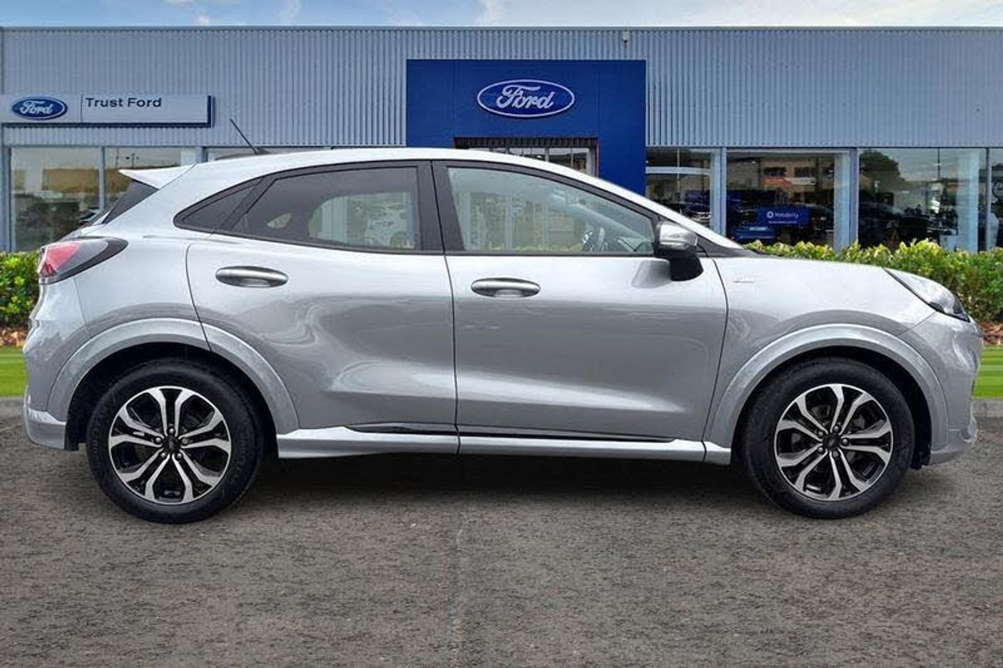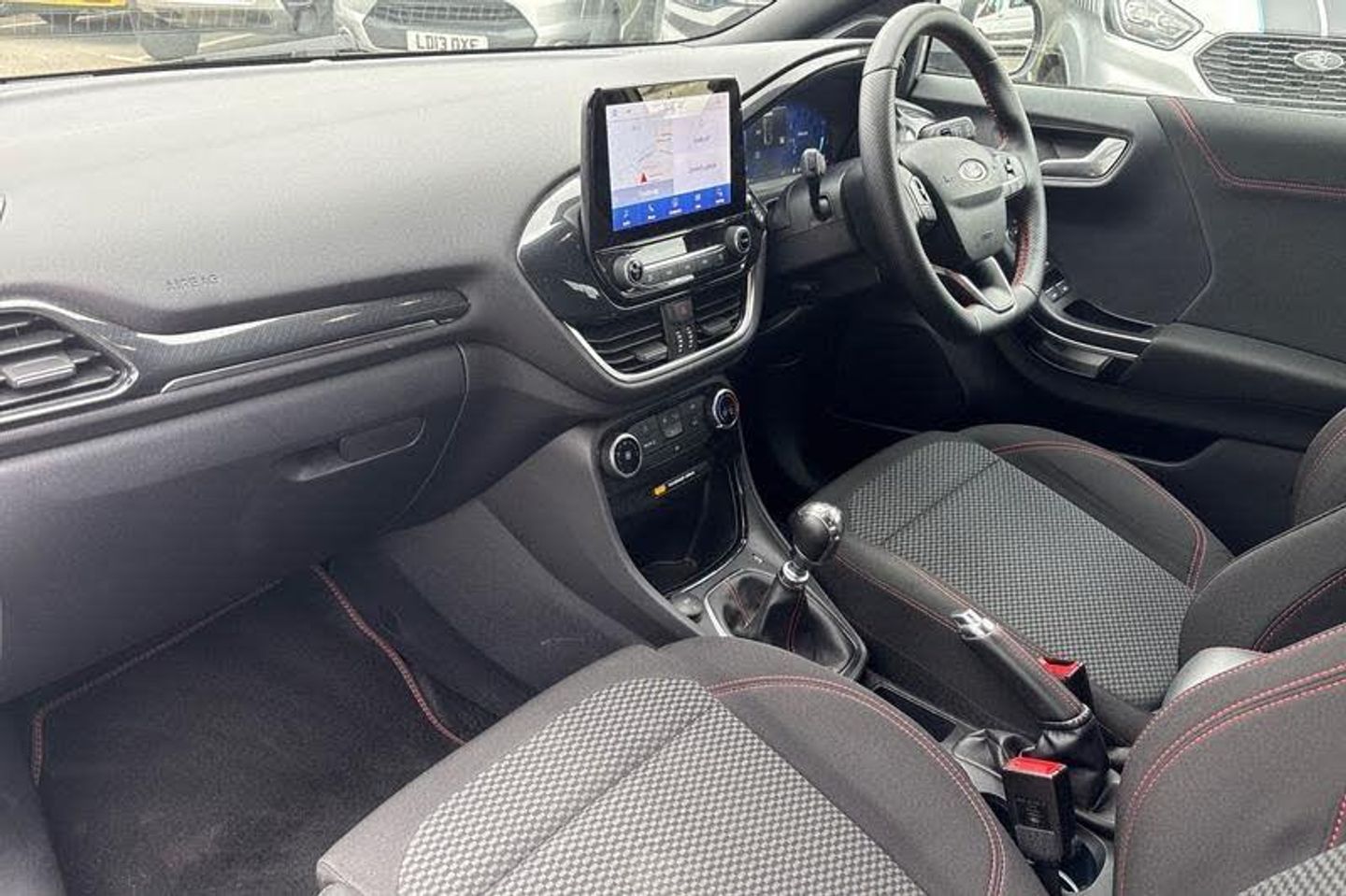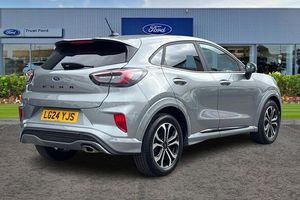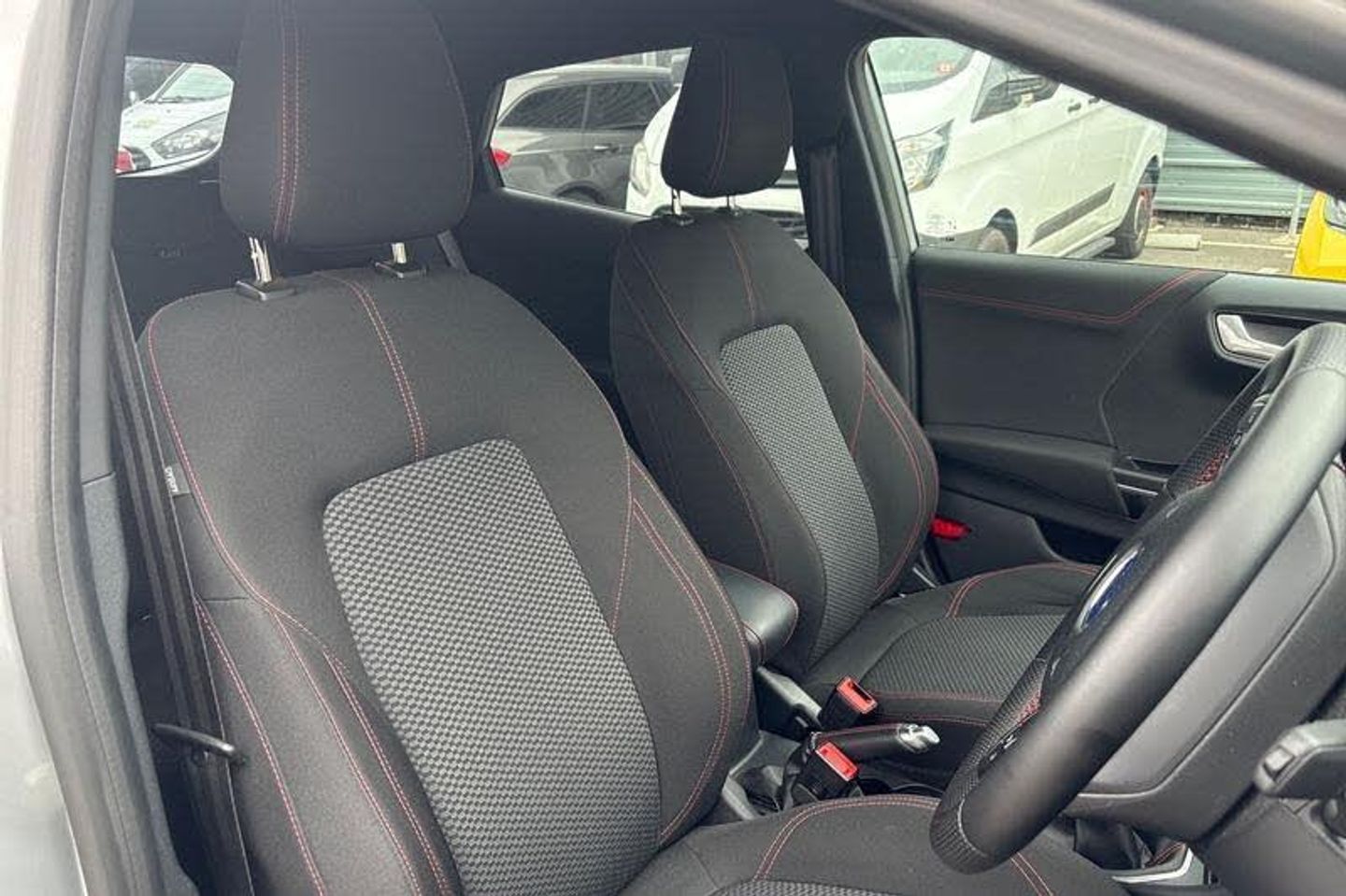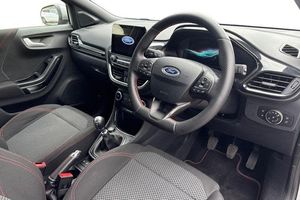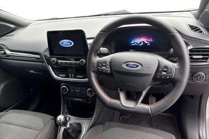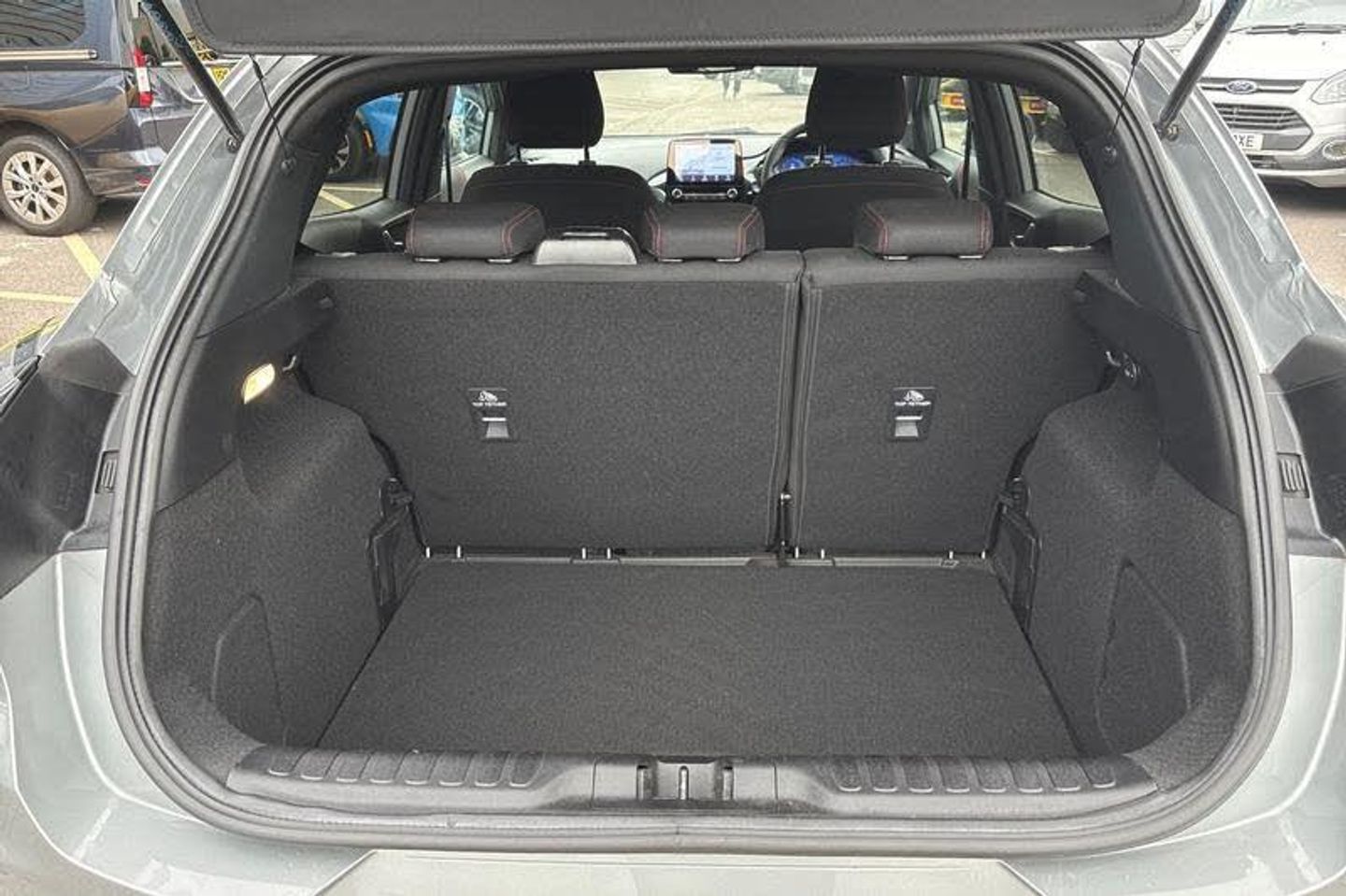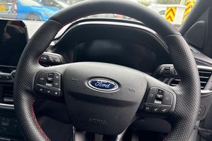 Driver impairment monitor, Emergency call service, Ford easy fuel, Full digital 12.3 instrument cluster, Lane keeping aid with lane departure warning, Power assist steering, Power start button, Rear parking sensor, Selectable drive modes(Normal, sport, Eco, trail, slippery), Speed sign recognition, Automatic headlights with auto high beam, Automatic rain sensing wipers, Front fog lamps, LED daytime running lights, LED rear lamps, Power foldable heated door mirrors with puddle lamps, Privacy glass to side rear windows and tailgate glass, Quickclear heated windscreen, Rear side wing doors, Rear wiper, ST-Line body styling kit with unique grille, Third brake light, 3 seat bench in 2nd row, Centre console with armrest and stowage, Ford megabox extended bootspace, Front and rear head restraints, Front floor mats, Manual 4 way driver seat adjust with lumbar adjustment, Manual 4 way passenger seat with lumbar seat adjustment, Sensico partial premium upholstery, Single front passenger seat, ST-Line flat bottomed sensico leather steering wheel with leather handbrake and aluminium gear knob, Wireless charging pad with electronic air temperature control (EATC), 3 rear seatbelts, Child safety lock, Electronic stability control (ESC) and hill start assist, Pedestrian/cyclist detection & post-collision braking, Pre collision assist system, Tyre pressure monitoring system (TPMS)