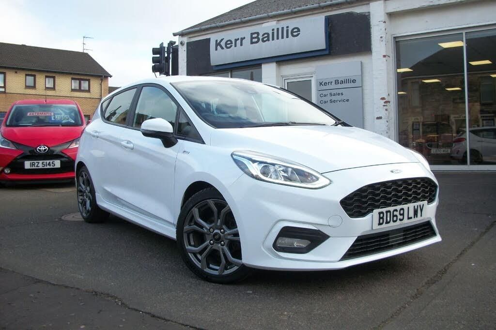 2019 Ford Fiesta 1.0 ST-Line finished in sleek Frozen White with just 35,285 miles on the clock. This sporty and stylish hatchback is in excellent condition and comes packed with features including Ford SYNC Bluetooth, air conditioning, cruise control, heated front screen, DAB radio, and a sporty body kit, along with many more premium extras. The ST-Line trim offers a perfect balance of performance, practicality, and style, making it an ideal choice for those seeking a fun-to-drive yet economical car. Dont miss out on this outstanding Fiesta, ready to drive away today.All our used cars come fully serviced, with at least 10 months mot and 90 days parts and labour warranty. You can extend this warranty to 15 months for £200 (some exceptions may apply). We can deliver locally in Ayrshire and can make arrangements for further a field.We are a small, family run car dealership based in Ardrossan, Ayrshire. Our goals are simple, to provide outstanding customer service, and excellent value for money. We have a large selection of quality nearly new and used cars for sale. We will take any car in part-exchange and offer an excellent range of finance options. Our Service Centre can service, MOT and repair all makes and models of car. Our Accident Repair Centre can carry out insurance repairs; restorations and body servicing. Established in 1966 we have a wealth of experience in the motor industry which is why our customers keep coming back for generations.Thanks for looking!