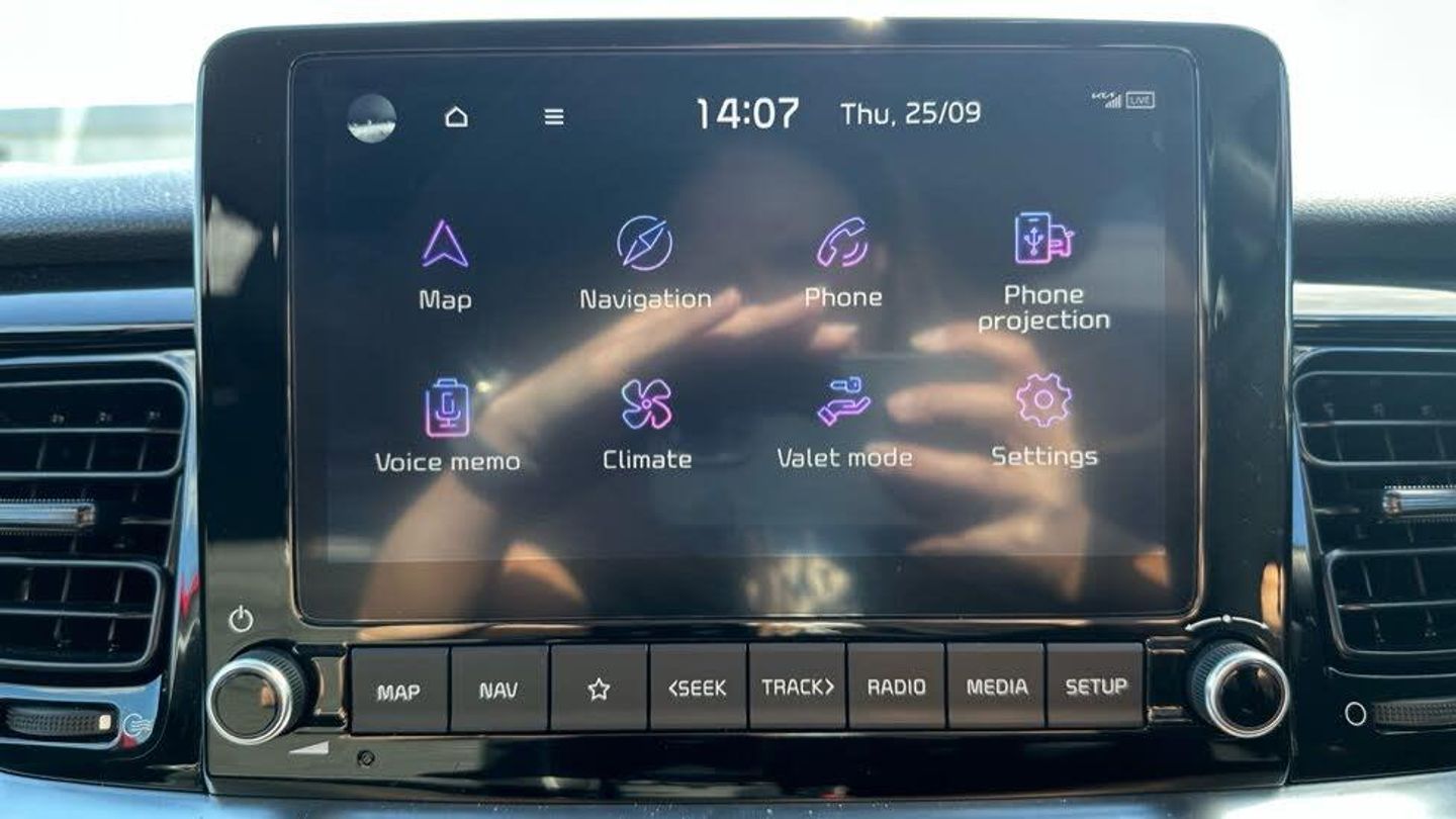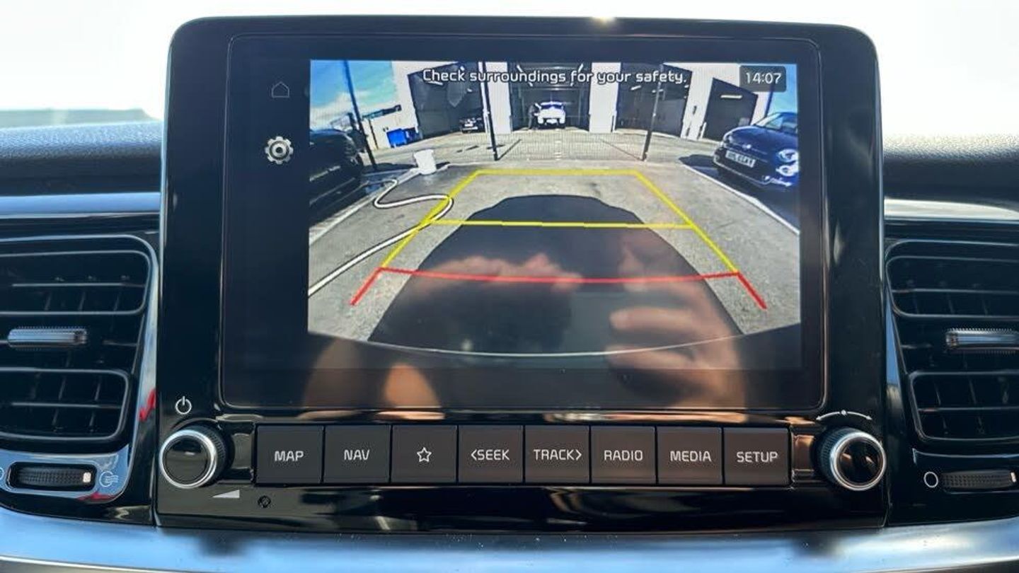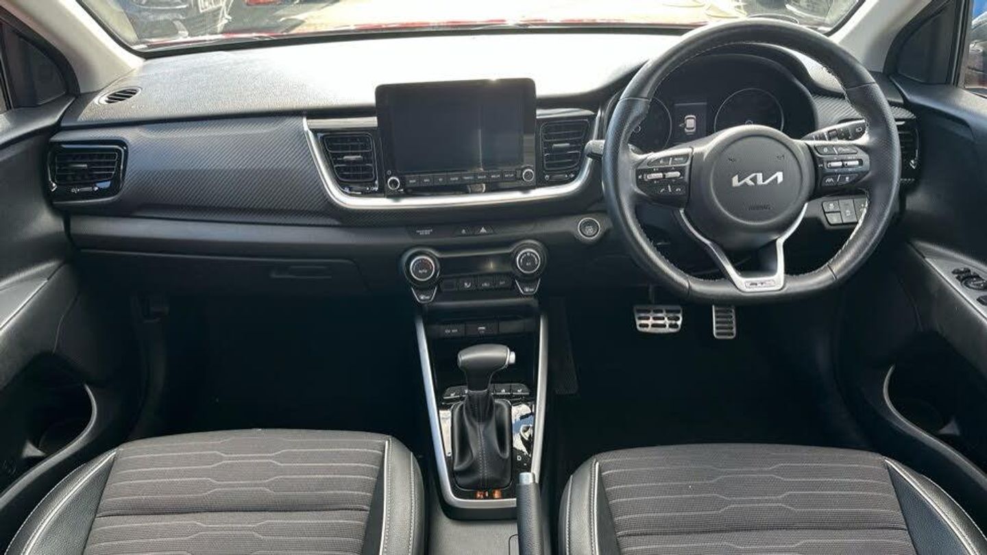 Cloth - Faux Leather - GT Line - Black, 17' GT-Line alloy wheels, 8' Touchscreen navigation featuring Free 7-year Kia Connect services, Standard two-tone Paint with contrasting roof colour, Heated front seats and steering wheel, Smart cruise control (DCT only), Smart key with engine start/stop, LED rear combination lamps, Front parking sensors, Blind spot collision warning, GT-Line black cloth and faux leather upholstery, Roof-coloured rear spoiler with high-mounted brake light, Intelligent speed limit warning (ISLW), Rain sensing front wipers, Blind spot collision avoidance (DCT only), Passenger seat height adjust, Auto-dimming rear-view mirror, Luggage net, Black electric folding door mirrors, Privacy glass (rear windows & tailgate), LED Bi-function projection headlights (Multi MFR), LED front fog lights, Alloy pedals, Reversing camera, Automatic air conditioning, GT-Line body-kit, Gloss black door mirrors with matt black lower housing, Black rear spoiler with high-mounted brake light, Chrome side window trim, D-cut perforated leather trimmed steering wheel, Black high gloss centre fascia, Free 7-year Kia Connect services, Drive mode select (DCT only), 8' Touchscreen display, Apple CarPlay & Android Auto via connectivity, Forward collision-avoidance assist (FCA) (city/pedestrian/cyclist), Roof rails, Rear parking sensors, LED daytime running lights, Cruise control & speed limiter, High gloss black & satin radiator grille, Electrically adjustable heated and folding door mirrors with LED indicator lights, Body-coloured rear spoiler with high-mounted brake light, Black and body coloured bumpers, Black side sills door garnish and wheel arch trims, Front & rear silver skid plates, Front fog lights, Leather trimmed steering wheel and gearshift, 6-Speaker audio system, Bluetooth with music streaming, Apple CarPlay with voice control, Android Auto with voice control, 4.2' Supervision colour cluster display, Front USB, Rear USB charging port, Steering wheel mounted controls, All-round electric windows (with driver's auto down function)