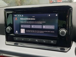 'Lights On' Reminder warning buzzer, Analogue cockpit with physical dials, Digital clock, E-call, Electric speed sensitive power steering, Full Link Smartphone Integration with Mirror Link, Apple Car Play, Google Android Auto with USB Type C cable for Apple and Android compatibility, Lane keeping system, Low fuel warning light, Outside temperature display, Rear parking sensor, RPM counter, Seat connect with safety, service and remote, SEAT Drive profile - Four different models normal-sport-eco-individual, steering response, throttle response, Trip computer, Wireless phone charger, Bluetooth interface for hands free and audio streaming, DAB digital radio and AM/FM radio, Media system with 8.25" colour touchscreen with USB port (type c), Steering wheel mounted audio controls, Anti theft roof antenna, Automatic activation of hazard warning lights, Body coloured bumpers, Body coloured door handle inserts, Chrome roof rails and window surrounds, Dark tinted rear windows, Dimming rear view mirror, Electric front/rear windows, Electrically adjustable and heated door mirrors, Front fog lights with cornering function and rear fog light, FULL LED automatic headlights with dynamic headlight range control, coming and leaving home, LED daytime running lights, LED rear tail lights and licence plate lights, Protective side mouldings, Rear side wing doors, Rear spoiler, Rear window wash/wipe, Roof colour door mirrors, Third brake light, Twin exhaust pipe styling hidden exhaust pipe, Visible VIN plate, Windshield wiper with intermittent control and potentiometer, 2 cupholders, 3 seat bench in 2nd row, 60/40 split folding rear seat, Aircare filter, Black interior roof, Double boot floor, Driver sunvisor with covered mirror + card holder, Dual zone climate control, Front comfort seats, Front courtesy light with 2x front and 2x rear reading lights, Gear shift indicator, Height adjustable front seats, Height/reach adjustable steering column, Illuminated boot, Instrument lighting with brightness control, Interior ambient lighting, Interior light in footwell, central console and door panel, ISOFIX points in outer rear seats with top tether anchorage points, Microsuede cloth upholstery, Passenger sunvisor with vanity mirror, Perforated flat bottomed leather steering wheel/gear knob/handbrake with red stitching and FR logo, Single front passenger seat, Two front and three rear height adjustable headrests, Interior chrome pack - Arona, 3 point seatbelts on all rear seats, ABS, Active front headrests, Child locks on rear doors, Driver and front passenger airbags with front passenger airbag de activation, front side and curtain airbags, Electronic stability control, Emergency Brake Assist (EBA) and front assist, Front and rear seatbelt reminder, Hill hold control, Multi-Collision braking, Tiredness recognition system, Traction control, Tyre pressure monitoring system, Alarm with back-up horn, Electronic engine immobiliser, KESSY Keyless entry and go, Locking wheel bolts, Remote central locking + deadlocks, Tow away protection, Titan black dashboard