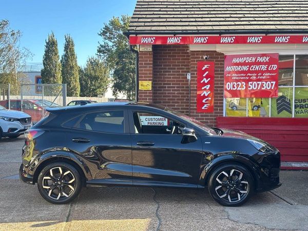 24 MonthPARTS & LABOUR WARRANTY. Hampden Park Motoring Centre is pleased to be offering this ULEZ compliant 2022 Ford Puma 1.0T EcoBoost MHEV petrol hybridfor sale, with ONLY ONE OWNER FROM NEW and 41,700 miles. This car comes with FULL MAIN DEALER SERVICE HISTORY. The car will leave with an interim service, a new MOT and a PDI. Finished in Agate black with black ST-Line trim.