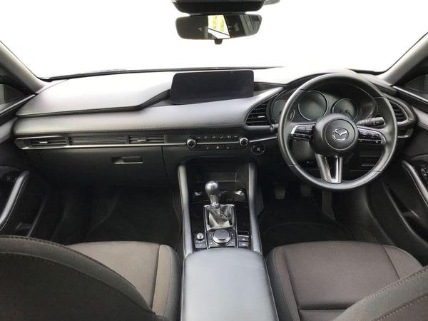 10.25" display with Mazda Connect infotainment, 7" colour TFT display, Audio transfer from bluetooth devices, Blind spot monitoring with rear cross traffic alert, Colour active driving display inc Windscreen projected,Traffic Sign Recognition, turn-by- turn navigation and Mazda Radar Cruise Control information, Digital instrument cluster, Driver attention alert system, E-call with GPS, Emergency stop signalling system, Engine start/stop button, Head up Display, Integrated bluetooth with steering wheel mounted controls, Intelligent speed assist, Lane keep assist system (LAS) with Lane departure warning system (LDWS), Mazda connected services, Mazda Navigation System with european mapping, Mazda Radar Cruise Control, Mobile App interface, Multimedia Commander, PAS, Rear parking sensor with audible and visual warning, Reversing camera, Service indicator, Tailgate, Traffic sign recognition (TSR), Trip computer, Wireless Apple CarPlay/Android Auto, Cylinder Deactivation, i-stop, 2 USB-C ports in the front, Mazda Multimedia System with AM / FM / DAB radio with 6 speakers, B-pillar garnish in satin black, Body coloured door mirrors, Coming/leaving home lighting function, Dark metallic finish signature wing, Daytime running lights, Dual chrome tailpipes tip, Dusk sensing headlights, Electric front/rear windows with one touch/auto up/down, Electrically adjustable, heated auto power folding door mirrors, Front body coloured bumper with black lower bezel, Front kodo turn signal, Gloss black finish front grille, Gloss black rear roof spoiler, High beam control, LED front fog lights, LED headlamps with auto levelling, LED indicator lights, LED rear combination lights, LED third brake light, Rear colour coded bumper with gloss black lower moulding, Rear fog lights, Rear side wing doors, Speed adjustable rear wash wiper with intermittent wipe, 12v electrical power outlet, 3 seat bench in 2nd row, 60/40 split fold down rear seats, Cloth upholstery, Dark cloth door panel inserts, Dark roof headlining, ceiling and pillars, Driver seat manual slide, recline, height and seat tilt adjust, Driver, front passenger and two rear door pockets, Driver, Front passenger and two rear grab handles with coathooks, Driver/passenger sunvisors + vanity mirrors (drivers side with ticket holder), Folding rear centre armrest with two cup holders, Front and rear courtesy lamps, Front armrest, Front centre storage with two cupholders, Front head restraints, Front passenger seatback pocket, Front passengers seat manual slide, recline and height adjustment, Gear shift indicator, Illuminated glovebox, Interior colouration dashboard and doorcards in black with dark stitching, ISOFIX child seat anchorage points attached on outer rear seats, Leather wrapped gear shift knob, Leather wrapped steering wheel, LED interior light, LED light in luggage compartment, Manual air conditioning, Power outlet in luggage compartment, Roof mounted sunglasses holder, Single front passenger seat, Three height adjustable rear head restraints, Tilt/height adjustable steering wheel, 3 point ELR front seatbelts with pretensioners, 3 rear 3 point seatbelts with ELR, Anti-lock braking system (ABS), Drivers knee airbag, DSC - Dynamic Stability Control, Dual stage driver and single stage passenger airbags, EBD - Electronic brakeforce distribution, Electronic parking brake with auto disengage function and auto hold function, Front and rear curtain airbags, Front passenger airbag cut-off switch, Front side airbags, Front smart city brake support, G-Vectoring control plus, Hill launch assist, Intelligent Traction Control system, Manual child lock in rear doors, Mild Hybrid system with regenerative braking, Seatbelt reminder for driver/front passenger and rear seats, Tyre pressure monitoring system (TPMS), Auto door lock when driving, Remote central locking + deadlocks, Thatcham accredited alarm and immobiliser, 16" Silver alloy wheels, Emergency tyre repair kit