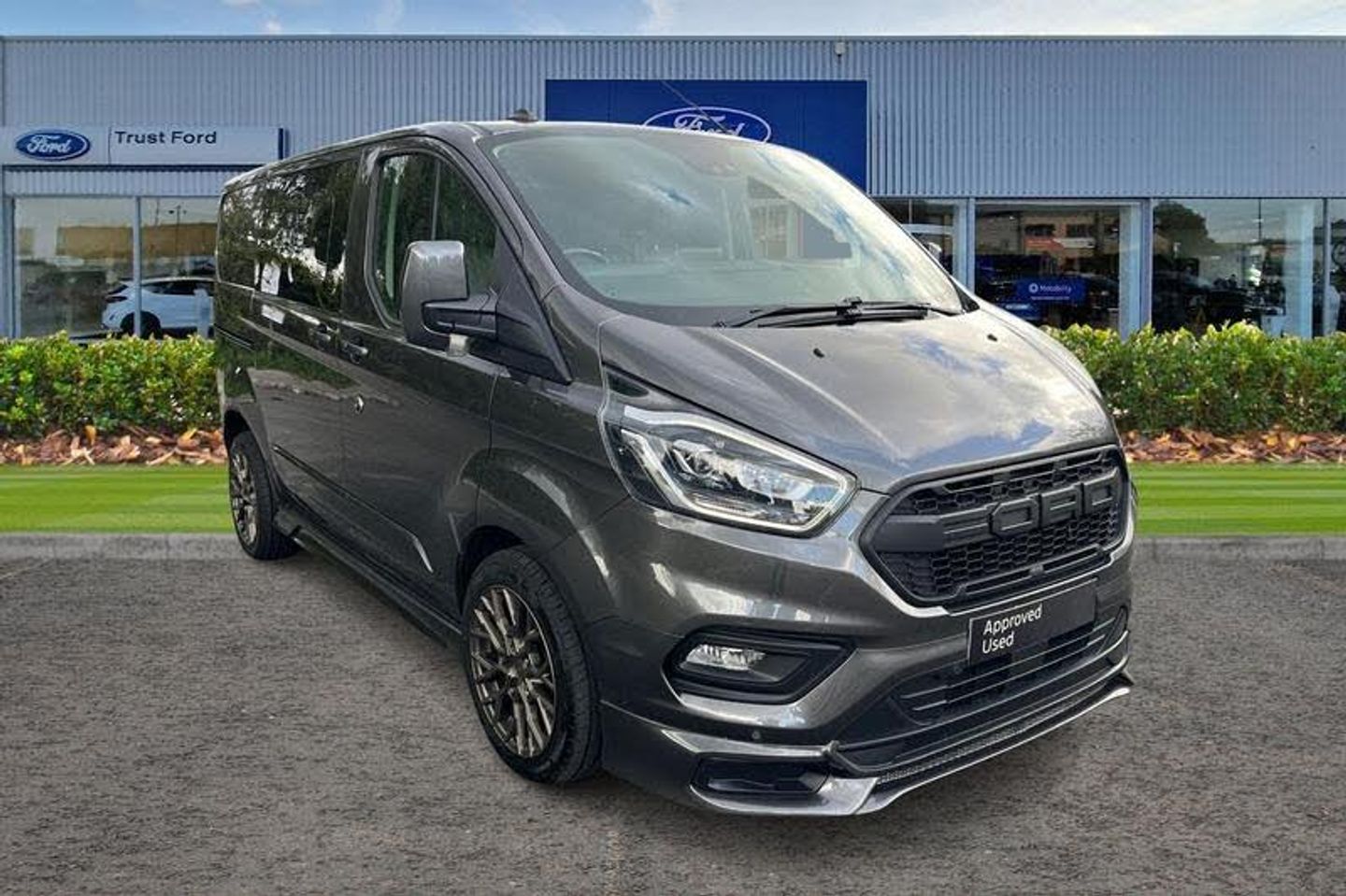 FRONT AND REAR PARKING SENSORS are designed to help you park more confidently helping you judge the distance between your vehicle and obstacles both in front and behind you, CRUISE CONTROL provides extra comfort on longer journeys allowing you take your foot off the acceleration whilst just focusing on steering the vehicle, QUICKCLEAR HEATED WINDSCREEN uses ultra thin filaments that superheat to de-ice and de-mist your windscreen as well as help de-freeze the wipers and works in seconds, HEATED FRONT SEATS Provide comfort in any weather, Auto start/stop system, Thatcham category 1 alarm, Front manual air conditioning, Electric front windows with one touch facility for driver and front passenger, Driver's airbag, Front passenger airbag, Automatic lights and wipers, 16 6.5 alloy wheels, PAS, Recirculation heater, Headlamp levelling, 2nd row three seat wide bench, Header mounted courtesy lights - 2 map lights, Front outer passenger airbag with deactivation switch, Ford Eco mode, Side wind mitigation, Selectable drive mode, Rear mudflaps, Vehicle maintenance monitor, Electronic Stability Programme, Body coloured front bumper, Glazed bulkhead, Illuminated footwell, 180 Degree rear cargo check arms, Height adjustable head restraints, Easy fuel capless refuelling system, Passenger side sliding load door with track cover, Cloth upholstery, 3 point seatbelts for all seats, Extra heavy duty alternator, Height adjustable drivers seatbelt mount, Map reading lights, Reach and rake adjustable steering column, Moulded cab headlining, Body coloured door mirrors, Intermittent front wash/wipe, Body coloured body side mouldings, Seatbelt warning indicator, Tool kit, Audio controls mounted on steering wheel, Anti-lock brake system, Coat hook, Passenger underseat storage box, Configurable Unlocking, Full wheelcovers, Body coloured rear bumpers, Power door dead locks, Auto relocking, Auto locking on drive-away, Assist handle, Passenger seatbelt height adj, Remote central locking, 2 12v sockets, Diesel particulate filter, Isofix child seat attachments - centre and offside 2nd row seats, 80 litre fuel tank, Driver and passenger sunvisors with illuminated vanity mirrors, Mechanical parking brake, Roll stability control, Lockable glove box, Washer tank level warning lamp, Body coloured lift/decklid exterior handles, Chormed grille with 3 bars, Leather gearshift knob, Colour keyed exterior pack, Sunglasses roof storage, Seatbelt remainder for driver and passenger, Embedded modem, Emergency brake light flashing, LED load compartment light, Dual note electric horn, Standard duty suspension, Door open tyre carrier drop, Wide bodyside grey mouldings, Rear door edge warn reflectors, 2 Interior grab handles, Extended carpet inside floor cover with rubber rear, 2nd/3rd Row courtesy light, 4 Load compartment tie down loops, Interior trim accent pack C - Transit custom, Rear seat pack 3 - Transit Custom, Front splash guards/Mud flaps, Side rear door trim panel - Level 1, Partial molded headliner, Locking wheel lug nut, Rear splash guards, SHORT WHEEL BASE, ULEZ COMPLIANT, ULEZ, NATIONWIDE DELIVERY AVAILABLE, EURO 6, DCIV, CREW, CREW CAB, CAMERA, MSRT SPEC, SPORT SPEC, TAILGATE