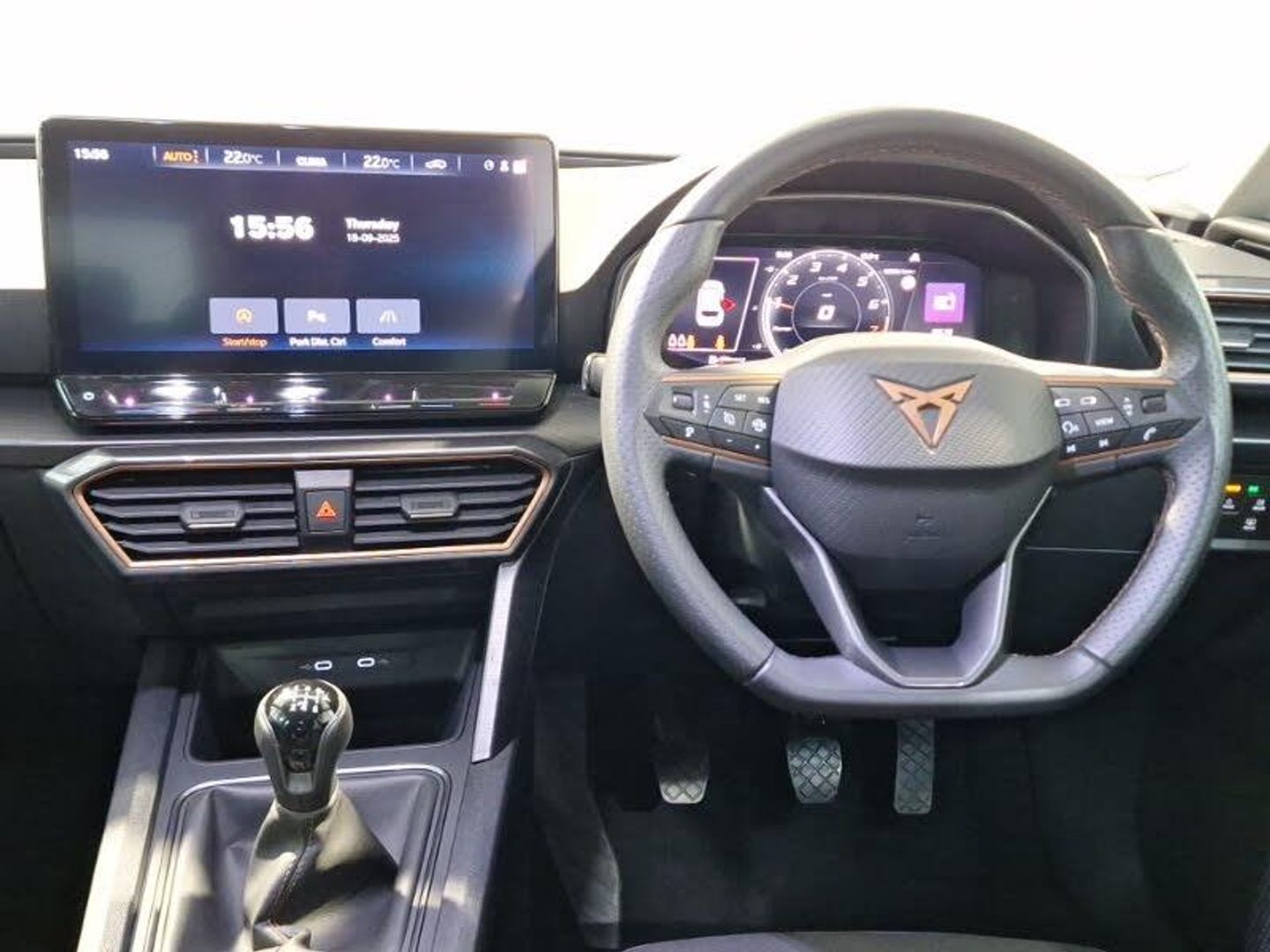 Adaptive cruise control, Android Auto, Apple CarPlay, LED daytime running lights, LED Headlights, MirrorLink, Rear parking sensor, Steering wheel audio controls, CUPRA drive profile selection with (Comfort/Sport/Individual), throttle response and gearshift mode, Digital cockpit, E-call, Electro mechanical speed sensitive power steering, Four x USB Type C ports (2 in front and 2 in rear), Front assist with forward collision warning braking reaction to vehicles, pedestrians and cyclists, Full link smartphone integration with Mirror Link, wireless Apple CarPlay and wired Google Android Auto, Lane assist, Lockable tailgate, Park assist (inc front/rear parking sensors), Rear view camera, RPM, trip computer, outside temp gauge, instrument light brightness, low fuel warning light, lights on reminder, gearshift indicator, Service interval indicator, Start/stop system with regenerative braking, Wireless phone charger