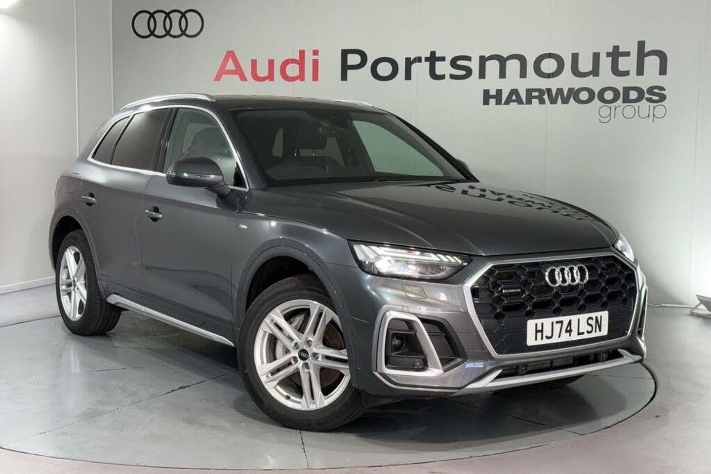 TECHONOLOGY PACK, PARK ASSIST PLUS, EXTENDED LED INTERIOR LIGHTING, BANG AND OLUFSEN SOUND SYSTEM, AUDI PHONE BOX WITH WIRELESS CHARGING, SATELLITE NAVIGATION, REAR PARKING CAMERA, MULTI FUNCTION STEERING WHEEL, HILL HOLD ASSIST, CRUISE CONTROL, SPEED LIMITER, AUDI VIRTUAL COCKPIT, LANE DEPARTURE WARNING, APPLE CARPLAY, ANDROID AUTO, DAB RADIO, TINTED REAR WINDOWS, FRONT AND REAR PARKING SENSORS, SPLIT FOLDING REAR SEATS, LIGHT & RAIN SENSOR, AUTO DIMMING REAR VIEW MIRROR, SELECTABLE DRIVING MODES, PUSH BUTTON START, DAYTONA GREY PEARL EFFECT WITH PART LEATHER UPHOLSTERY, 19'' ALLOY WHEELS, DUAL ZONE CLIMATE CONTROL, HEATED FRONT SEATS LED HEADLIGHTS WITH DYNAMIC REAR INDICATORS, VOICE ACTIVATED CONTROLS AND MUCH MORE.All Audi Approved used cars are offered with a 12-month warranty and roadside assistance.This car comes with the balance of the manufacturers warranty until 29/09/2027.Portsmouth Audi are delighted to offer this Audi Q5 in Daytona Grey over Part Leather and has completed just 19 miles. We are proud to be part of the Harwoods group, a family run business established in 1931. With four Approved Audi retailers within our group, we have access to over 400 vehicles. If this isn't the right car for you our group stock has spec to include Sunroof, Leather, Heated Seats, Apple Car Play, Heated Steering Wheel, Reverse Camera, Rear Entertainment, Towbar, 360-degree camera, Comfort & Sound Pack, Tech Pack, Panoramic Sun Roof, Tow Bar, Black Pack, Air Suspension, Apple Carplay, Adaptive Cruise, Massage Seats, Refrigerator, AWD, Technology Pack, Head up Display, Vorsprung, Technik, Black Edition, S-Line, S Line, Edition 1, TFSI, Quattro, Sportback, LWB. Other colour options including Black, Blue, Green, Silver, White, Red, Grey, Yellow, Orange. Interior options of Ebony, Black, Ivory, White, Tan, Cream, Oyster, & Euro 6 ULEZ compliant drive trains.-TECHNOLOGY PACK, APPLE CARPLAY-Video Presentation available on Request