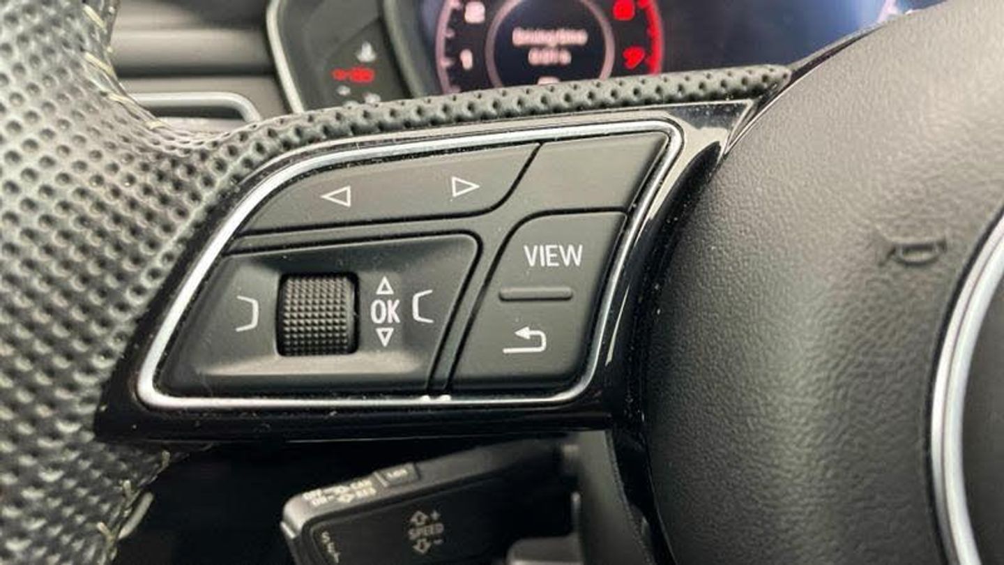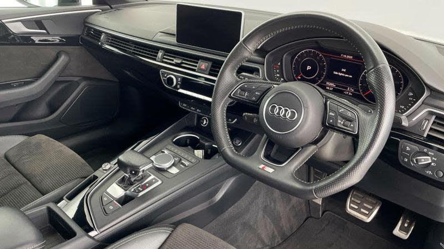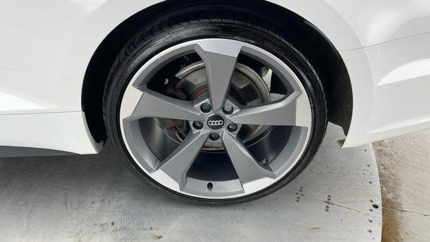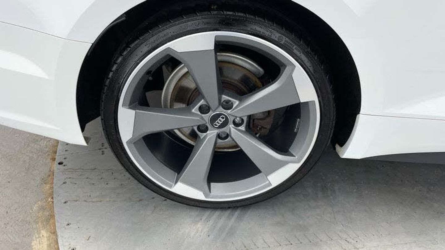 Launch model, 20 x 9.0J '5-arm-rotor' design alloy wheels - matt titanium look with 265/30 R20 tyres, 265/30 R20 tyres, Audi Connect - 36 months, MMI Navigation Plus with 8.3 high-resolution colour screen, Leather/Alcantara with S line embossing on the front seats, S line black exterior package, S line exterior pack, Audi Sport cast alloy wheels - 5-arm rotor style - Matte Titan. look - diam.- turned - 9J x 20 with 265/30 ZR20 tires, Illuminated door sill trims with S logo, S line Sports package, Control code, Special control I/VP, S line front and rear bumpers, Black Styling Pack, Additional stone guard body covers, Black door mirror housing, S badge on the steering wheel, Audi Virtual Cockpit, Audi Phone Box with wireless charging, Equipment options subset for Great Britain, [Audio and Communications]Audi Connect Infotainment Services - 3 month trial, Technology Pack, MMI Navigation Plus with MMI Touch, [Exterior]Privacy glass (side and rear windows), Larger rear spoiler, [Illumination]LED headlights, High beam assist, LED headlights, LED rear lights and dynamic rear indicators, [Interior]Pedals in stainless steel, Flat-bottomed 3-spoke leather high multi-function steering wheel, Piano finish - black, Black cloth headlining, [Performance]Sport suspension