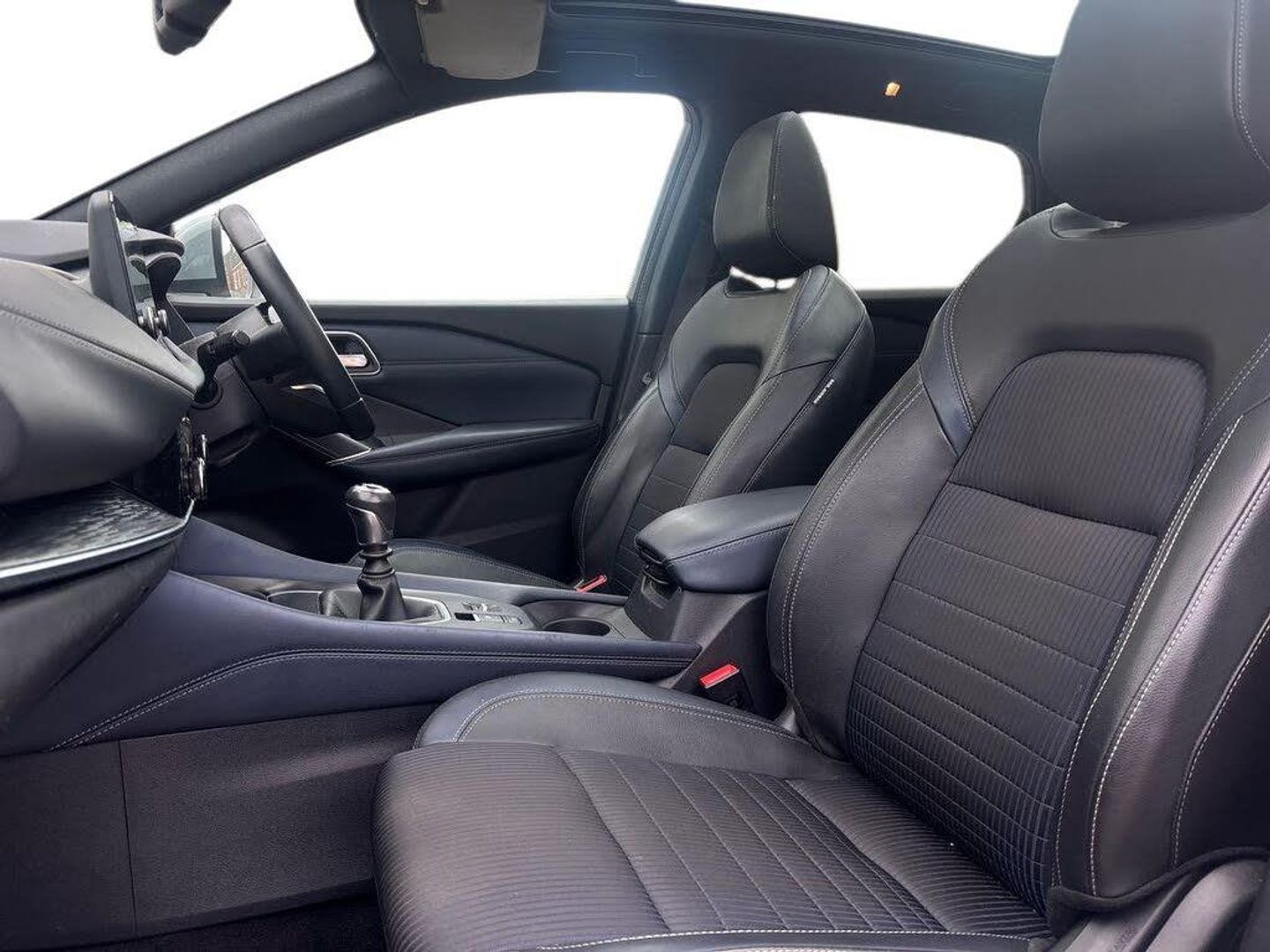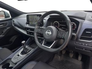 Blind spot warning, Drive modes (sport, normal, eco), Electric speed sensitive power steering, Emergency and breakdown call, Front and rear parking sensors, Full Digital 12.3" TFT Digital Combimeter, Google maps services - search, weather, 3D maps and Google street view, Hands free power tailgate, Idle stop/start system, Intelligent around view monitor, Intelligent Cruise control (ICC), Intelligent driver alert system, Intelligent forward collision warning, Intelligent lane intervention, Lane departure prevention, Lane departure warning system, Moving object detection, Nissan connect 12.3 inch touchscreen infotainment system, Nissan connect navigation, Push button starter, Rear cross traffic alert, Remote control services - door locks, lights, horn and car locator, Telematics - notifications and connectivity services, TomTom live traffic services, Traffic sign recognition with legal speed adjustment, Trip computer, Virtual personal assistant and firmware over the air capability, Wireless Apple CarPlay and wired Android Auto, Wireless charging pad, 6 speakers, AM/FM audio system with DAB, Bluetooth audio streaming, Front USB connections (Type-A and Type-C), Rear USB charging only ports (Type-A and Type-C), Auto dimming rear view mirror, Auto rear wiper when reversing, Automatic hazard signal with emergency stop signal, Body colour mirror caps, Body coloured door handles, Bodyside mouldings, Chrome side window finisher, Door handle with button, Dusk sensor, Electric auto folding door mirrors, Electrically adjustable and heated door mirrors with LED turn indicator, Fixed panoramic glass roof with electric sunshade, Follow me home headlights, Front and rear LED turning signals, Intelligent auto headlights, LED daytime running lights, LED rear lights, One touch front and rear electric windows with remote opening and closing, Partially body coloured bumpers, Privacy glass, Rain sensor, Rear bumper with graphite insert, Rear roof spoiler, Rear side wing doors, Rear styling plate, Roof rails, Shark fin antenna, Splash free rain sensing wipers, Super UV and infrared cut glass, Three blink turn signal, 12v power socket in dashboard and luggage, 2 way electrical driver lumbar adjustment, 2x Rear coat hooks, 3 bench rear seats in 2nd row, 3 rear headrests, 4 folding assist grip, 6 Luggage hooks - 4 on floor, 2 on side, 60/40 split folding rear seat bench, 8 way electric adjustable drivers seat, Ambient lighting around centre console, Ambient lighting in front doors, Centre console storage tray, Chrome interior door handles, Cloth/syntech leather monoform upholstery, Dark black/blueish PVC wrapping, Dark headlining, Driver and front passenger sunvisors with illuminated vanity mirrors, Driver seat back pocket, Dual zone automatic climate control with pollen filter, Front and rear door storage, Front cupholders x 2, Front door with bottle holders, Glovebox with light, Hard trunk cover, Height adjustable front headrests, Leather shift knob, Leather steering wheel, Luggage board system, Luggage space lighting, Manual lumbar support on passenger seat, Manually adjustable passenger (slide recline + lifter), Multifunction steering wheel, Passenger seat back pocket, PVC front centre console and armrest, Rear armrest with 2 cupholders, Rear door bottle holders, Single front passenger seat, Soft PVC kneepad, Steering wheel switches, Tilt/telescopic adjustable steering wheel, Two rear isofix child seat anchorage points with top tether, Welcome light and doors with console tray ambient lighting, Drive assist pack - Qashqai, Heat pack - Qashqai, Tech Pack (Drive Assist + HUD), 3x3 point rear seatbelt pretensioners + load limiters, ABS, ESP, EBD and brake assist, Active brake limited slip, Auto hold function, Child locks on rear doors, Curtain and front side, far side airbags, Driver and passenger airbags, Driver, passenger and 2nd row rear seat belt reminder, Electronic parking brake, Front seatbelt pretensioners + load limiters, Height adjustable front seatbelts, Hill start assist, Intelligent blind spot intervention, Intelligent front emergency braking with pedestrian, cyclist recognition and junction assist, Intelligent rear automatic braking, Tyre pressure monitoring system, Vehicle dynamic control, Capless fuel filler, Engine immobiliser, Nissan i-key, Remote central door locking with deadlocking, Thatcham Cat.1 alarm, Interior instrumental panel C finisher, 19" Alloy wheels, Tyre puncture repair kit