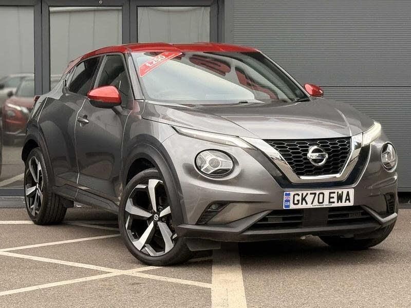 Exterior Features, Shark fin roof antenna in Fuji sunset red, Two tone metallic paint with Fuji sunset red roof, Safety, Fuji sunset red door mirrors, Paint - Two Tone, Two tone metallic - Gun metallic grey with Fuji sunset roof, Trim - Part Leather, Cloth/synthetic leather - Black, Wheels, 19 inch Alloy wheels, Tyre puncture repair kit, Exterior Features, Front and rear electric window with one touch driver and passenger window, Rain sensor windscreen wipers, Rear privacy glass, Rear wiper, Thermaclear heated windscreen, Body colour bumpers, Body colour door handles, Rear spoiler, Automatic hazard signal with emergency stop signal, Follow me home headlights, High beam assist, LED daytime running lights, LED front fog lights, LED headlamps, LED rear fog lamp, LED rear lamps, Three blink turn signal, Safety, ABS with EBD and brake assist, Electric handbrake with auto hold function, Electronic Stability Programme (ESP), Hill start assist, Intelligent emergency braking with pedestrian and cyclist recognition, Traction control, VDC Dynamic Vehicle Control, Ventilated rear brake discs, Drive modes select (Eco, normal and sport), Front parking sensor, Intelligent lane intervention, Lane departure warning system, Power Steering, Rear parking sensor, Traffic sign recognition, Auto dimming interior rear view mirror, Electrically adjustable door mirrors with integrated indicators, Heated and auto folding door mirrors, Active ride control, Active Trace Control, Driver and passenger airbags, Driver and passenger side airbags, Front and rear curtain airbags, Height adjustable seatbelts, Seatbelt reminder for driver/front passenger and rear seats, Single tone horn, Three 3 point rear seatbelts, Tyre pressure monitoring system, Driver Convenience, Idle start/stop system, Miscellaneous, 7 inch full colour TFT screen combimeter, 8 inch infotainment colour display with touch screen, Apple CarPlay and Google Android auto, Emergency and breakdown call, Nissan connect nav with TomTom traffic, Nissan connect services and Wifi connection, Outside temperature sensor, Trip computer, Gasoline particulate filter, Audio / Communications, Bluetooth system, USB, Aux-in and 12V socket, Bose personal plus audio system with 8 speakers(4 speakers and 2 headrest speaker for driver and passenger seats), Bose personal sound stage control, DAB Digital radio, Rear console USB port, Interior Features, Automatic climate control, Card holder on driver sunvisor, Cloth/Synthetic leather upholstery, Driver side rear coat hanger, Front armrest, Front door pockets with bottle holders, Front/rear passenger grab handles, Grey synthetic leather kneepad, Internal chrome door handles, Leather gearshift knob, Leather steering wheel, Luggage board, Multifunction steering wheel, Rear door bottle holders, Steering wheel mounted gearshift paddles, Telescopic steering wheel adjustment, Two cupholders in front centre console, Voice recognition switch on steering wheel, Door ambient lighting, Front and rear cabin lights, Gear console ambient circle lighting, Luggage space lighting, Welcome light and console tray ambient lighting, Driver/passenger sunvisors and illuminated vanity mirrors, Packs, ProPilot pack - Juke, Trim, 3 height adjustable rear headrests, 60/40 split folding rear seat, Driver and passenger sliding and reclining seats, Driver seat back pocket, Front head restraints, Front passenger isofix child seat anchorage point, Heated front seats, Height adjustable driver's seat, Height adjustable passenger seat, Monoform sporty seats, Passenger seat back pocket, Two rear isofix child seat anchorage points with top tether, Security, Alarm, Immobiliser, Intelligent Key with push button starter, Remote central locking