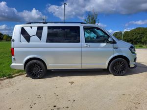 Composition Colour DAB+ Radio with 5in Touch Screen, SD Card Reader,MP3 Compatible CD Player, Cruise Control, Multi-Function Display, Electric Front Windows, Heated Front Windscreen, Start/Stop System with Regenerative Braking, Electrically Heated and Adjustable Door Mirrors, Remote Central Locking with Internal Switch and Deadlocks, ABS - Anti-Lock Braking System ,ASR - Anti Slip Regulation ,EDL - Electronic Differential Lock ,Electronic Brakeforce Distribution - EBD,ESP - Electronic Stability Programme, Hill Hold Assist, TCS - Traction Control System. This 2016 Volkswagen Transporter is a reliable and practical panel van with a spacious interior, perfect for transporting goods or a small team of workers. With only 79000 miles on the clock and a valid MOT until 2025, this diesel vehicle is ready for the road. Its 5 doors provide easy access and ample space, while its gross weight of 2800kg ensures it can handle heavy loads. The included features such as Bluetooth connectivity, cruise control, and start/stop system make this van a comfortable and efficient choice for commercial use. THIS IS A COMBI VAN WITH 6 SEATS, THE SEATS ARE REMOVABLE, 20'' black alloys, side skirts, bonnet stone guard, sold with new MOT.