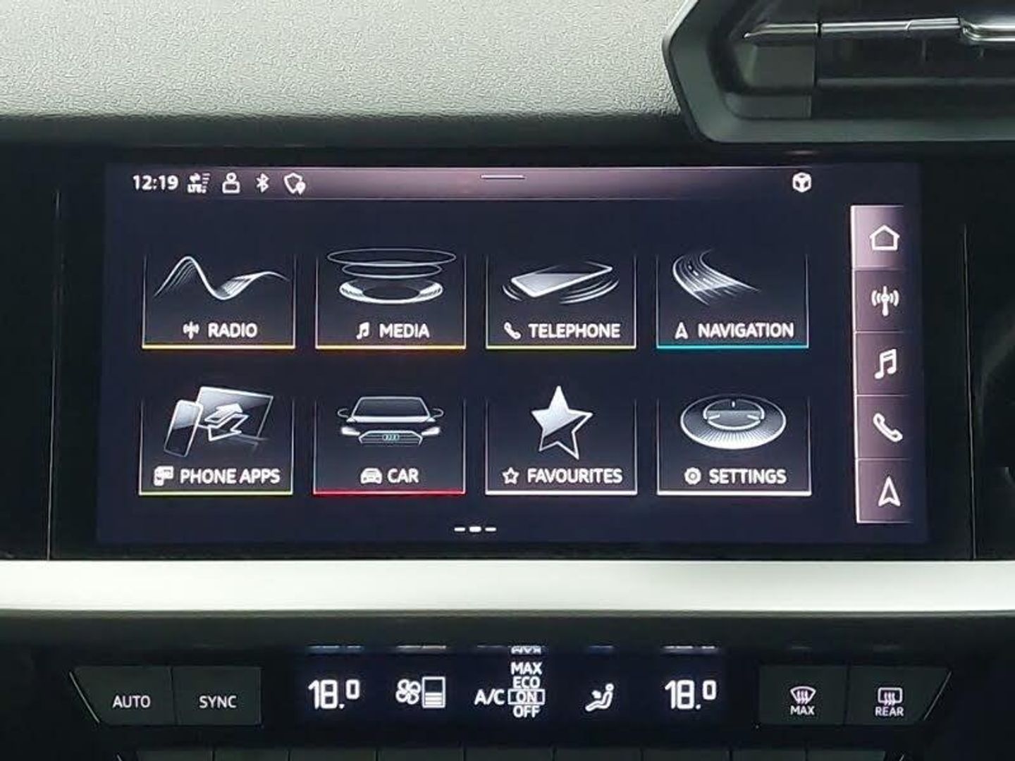 S line styling pack - A3 Sportback, Aluminium interior elements pack - A3 Sportback, MMI Navigation Plus with high resolution 10.1" colour touch screen display, Audi Virtual Cockpit - 10.25" digital and colour instrument cluster, Audi smartphone interface, Rear parking sensors, Bluetooth interface, DAB Digital radio, 1xUSB-A and 1xUSB-C connection
