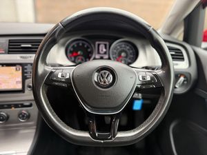Clean VW Golf with 80k miles, full service history (10 services inc 3 at VW), Comes with 12 months MOT and 6 months Comprehensive Nationwide Warranty upon purchase. One previous keeper from new. Only 35 annual road tax. Features include SatNav, Bluetooth, Heated Seats, Car-Net/App-Connect (activation required), Front/Rear Parking Sensors w/ Optical Aid, Speed Limiter, Adaptive Cruise Control, Engine Stop-Start (Eco Mode), Radio/CD/MP3 Player, SD Card Reader, DAB Tuner, Air-Conditioning, Alloy Wheels, Electric Windows and Mirrors, etc.