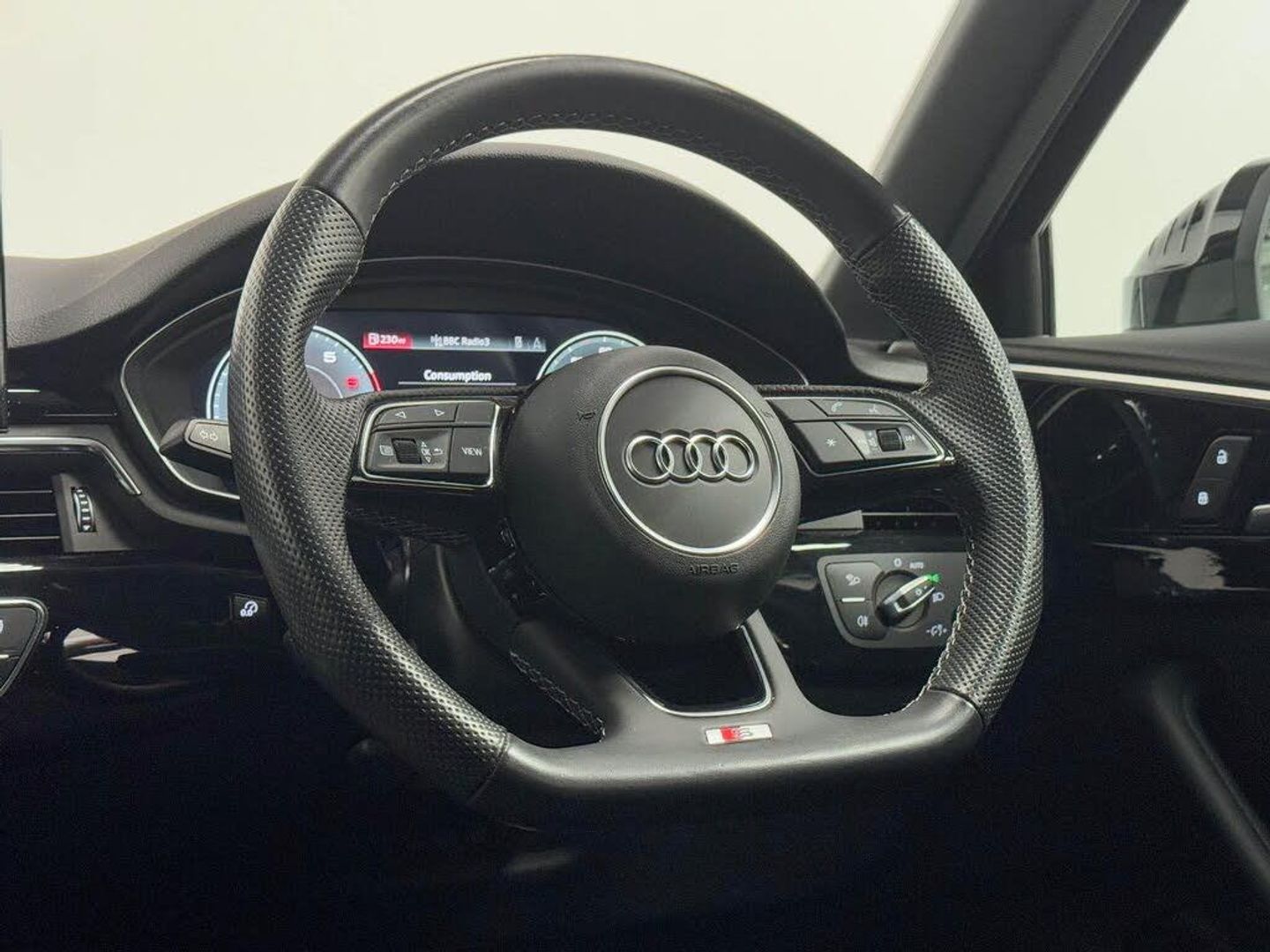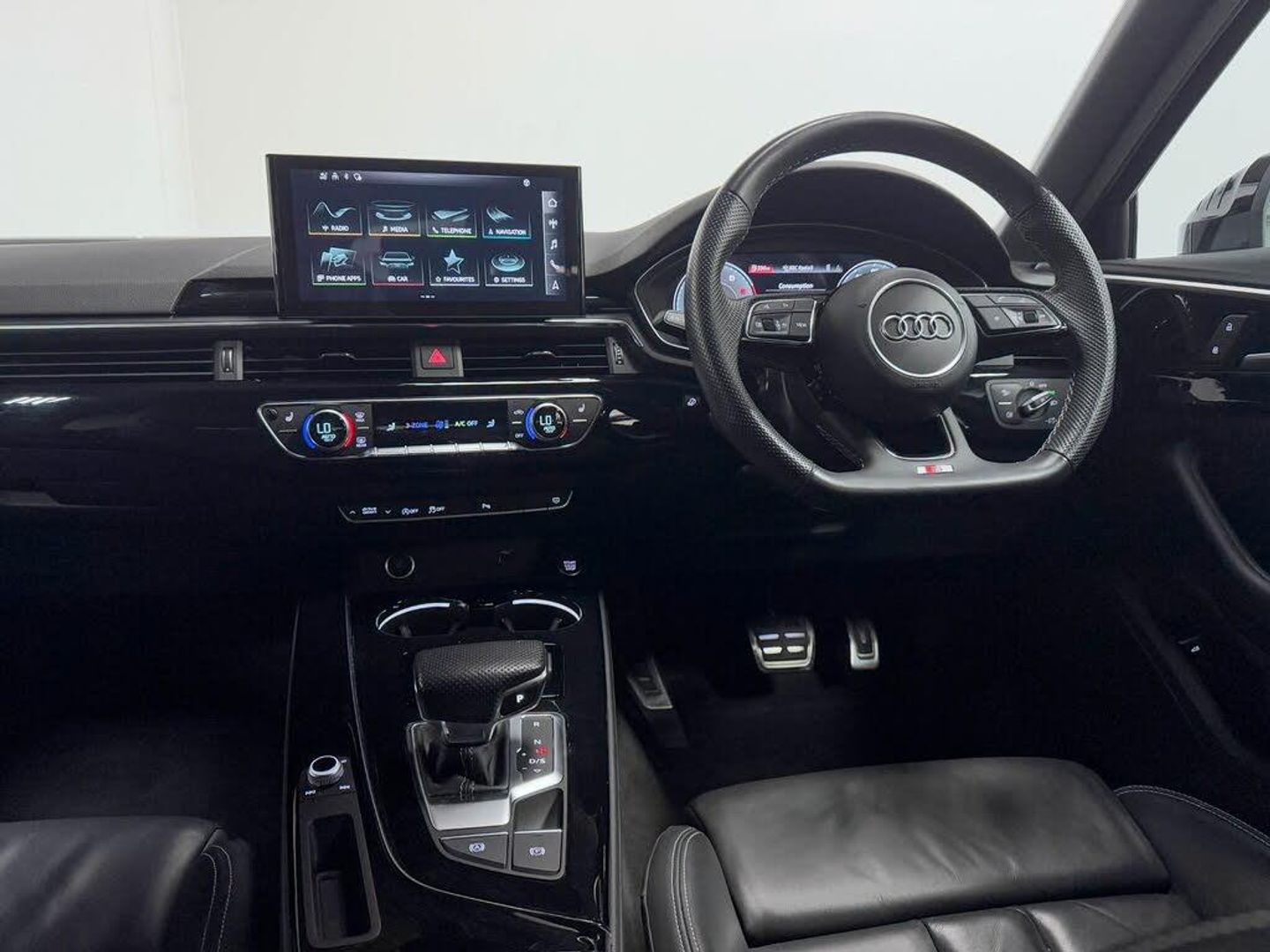 19in Alloy Wheels - 5-Arm Flag Design - Audi Sport - Diamond Cut Gloss Anthracite Black, 2 USB Charging Ports, 4-Way Electric Lumbar Support, 6-Airbag System, 8 Passive Loudspeakers, Anti Theft Locking Wheel Bolts, Anti-Theft Alarm, Audi Beam, Audi Connect Infotainment Services (36 Month Subscription From New), Audi Connect with Amazon Alexa Integration, Audi Drive Select, Audi Rings in Black and Black Model Badging and Removed Engine Badging, Audi Smartphone Interface, Audi Virtual Cockpit, Auto-Dimming Rear-View Mirror, Automatic Start-Stop with Coasting Functionality and Efficiency Programme, Bluetooth Interface, Body Coloured Side Sill Trims, Cloth Headlining in Black, Contrast Stitching on Seats - Steering Wheel and Gear-Lever Gaiter, Cruise Control System with Speed Limiter, DAB Digital Radio Reception, Deluxe 3-Zone Electronic Climate Control, Door Handles - Body Coloured, Door Mirrors - Folding with Auto-Dimming, ESC - Electronic Stabilisation Control inc ABS - ASR and EDL, Electric Boot Lid Release, Electric Windows - Front, Electromechanical Power Steering, Email - Calendar and Text Messages can be Displayed on your Vehicles MMI, Exhaust Tailpipe - Gloss Black Trims, First Aid Kit and Warning Triangle, Flat-Bottomed 3-Spoke Leather High Multi-Function Sport Steering Wheel, Front Centre Armrest, Front Spoiler Lip in Body Colour, Front Sports Seats, Gear-lever Knob in Black Perforated Leather, Headlights - High-Beam Assist, Heated Front Seats, High Gloss Package, Hill Hold Assist, ISOFIX Child Seat Mounting and Top Tether, Illuminated Door Sill Trims with S Logo, Inlays - Piano Finish - Black, Keyless Go, LED Headlights with LED Rear Lights and Dynamic Rear Indicators, LED Interior Lighting Pack, Light and Rain Sensor, MMI Navigation Plus including MMI Touch, Manual Seat Adjustment, Multi Collision Brake Assist, Parking System Plus - Front and Rear Sensors, Pedals and Footrest - Stainless Steel, Pop-Up Bonnet for Pedestrian Protection, Pre-Sense City, Privacy Glass, Radiator Grille with Honeycomb Structure in Grained Matt Black, Rear-View Camera, S Line Rear Diffuser in Matt Anthracite Black with Trim Strip in Matt Aluminium Silver, S line Front and Rear Bumpers and Side Skirts, Seat Belt Monitoring, Side Air Inlets in Grained Matt Black with Inlay in Matt Aluminium Silver, Split-Folding Rear Seat Bench in 3 Parts - 40-20-40 with Rear Centre Armrest, Sport Suspension, Steering Wheel - Gear Shift Paddles, Titanium Black Styling Pack, Tool Kit, Tyre Repair Kit, Voice Control, Windscreen with Acoustic Glazing, Fine Nappa Leather - Black, 19in Alloy Wheels - 5-Arm Rotor Matt Titanium Look