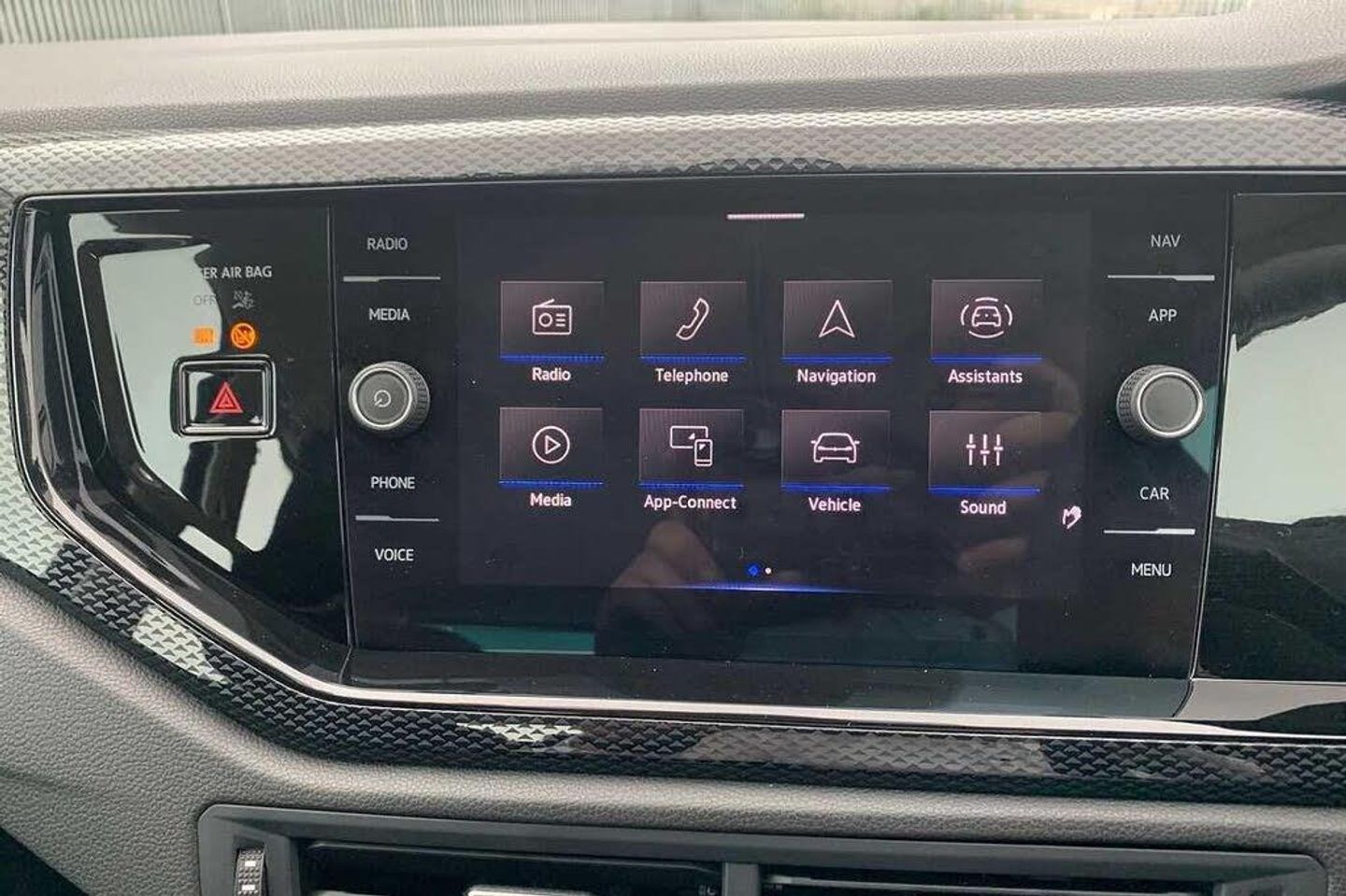 Pearl - Deep black, 15'' Essex alloy wheels, Electric front windows, Heat insulating and laminated safety glass windshield, Rain sensor, Rear electric windows, Rear windscreen washer and wiper with interval delay, Front wheel drive, Rear shock absorpion, Body colour bumpers with chrome inserts, Body colour door handles, Engine badge deletion, Rear side wing doors, Automatic headlight control with LED separate daytime running lights with coming/leaving home function, Headlight range adjustment, LED Headlights, LED rear combination lamps, Rear fog light, Third brake light, ABS, ESC (Electronic stability control) + EDL (Electronic Differntial lock) and ASR (Traction control), Front assist with autonomous emergency braking (for Adaptive Cruise Control ACC up to 130 mph), Front disc brakes, Hill hold control, Rear drum brakes, Advanced driver attention and drowsiness monitor, Cruise control + speed limiter, Dynamic road sign display, Lane keeping system Lane Assist, Multifunction camera, Power assisted speed sensitive steering, Automatic dimming interior rear view mirror, Body colour door mirrors, Power folding adjustable/heated exterior mirrors and front passenger exterior mirror lowering function, 3 point height adj front seatbelts + pretensioners, 3x3 point rear seatbelts, Driver and front passenger airbag with front passenger airbag deactivation, Drivers and front passengers safety optimised head restraints, Extended and predictive pedestrian/ cyclist protection, Front curtain and side airbags with center airbag, Manual child lock in rear doors, Single tone horn, Tyre pressure loss indicator, Bluetooth mobile phone interface, Preparation for We connect and We connect plus, Wireless app connect, DAB Digital radio, Diversity antenna for FM reception, Front and rear 6 speakers, Standard rear axle, Emergency call service, Preparation for navigation system with media and internet package, Speedo and rev counter, electronic odometer, trip, service interval display and exterior temperature gauge, Trip computer, Warning signal and warning light for front and rear seatbelts not fastened, Washer fluid level indicator, Start-stop system with battery regeneration (recuperation - energy recovery during braking), Lava stone black gloss/matt decorative inserts in dash and front door panels, 3 rear head restraints, 60/40 split folding rear seat and rear seat bench not split, Driver and front passenger seat height adjustment, Front seat backrest storage pockets, Front standard seats, Isofix child seat preparation easy-fit (for two outer rear seats, and front passenger seat) compatible with I-size, Single front passenger seat, Standard climatic zones, 12V power socket in centre console, 2 USB-C ports in the front, 2 USB-C charging sockets on the center console in the rear, Ceramique roof lining, Chrome plated radiator grille inserts, air vent surrounds and light switch surrounds, Door and side trim panel, Front centre armrest, Handbrake lever handle in leather, Hartley/Thomas cloth upholstery, Headliner in recycled material, Leather trimmed gear knob, Luggage compartment cover, Removable luggage compartment floor, Standard pedal cluster, Three spoke leather wrapped multifunction steering wheel, 2 front and 2 rear reading lights with switch off delay and dimmer, Luggage compartment lighting, Driver/passenger sunvisors with illuminated vanity mirrors, Light and vision pack - Polo, Alarm with interior protection, Anti-theft alarm system with interior monitoring, backup horn, and towing protection, Anti-theft wheel bolts, Electronic engine immobiliser, Low rolling resistance tyres