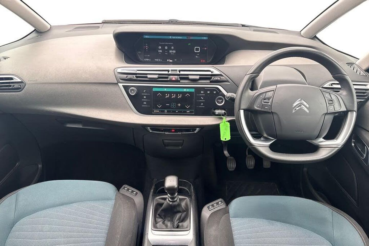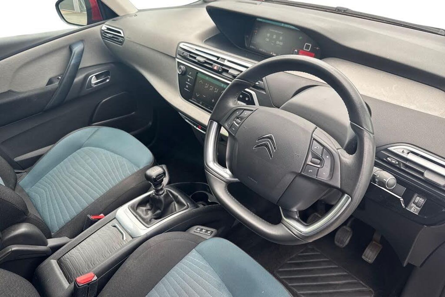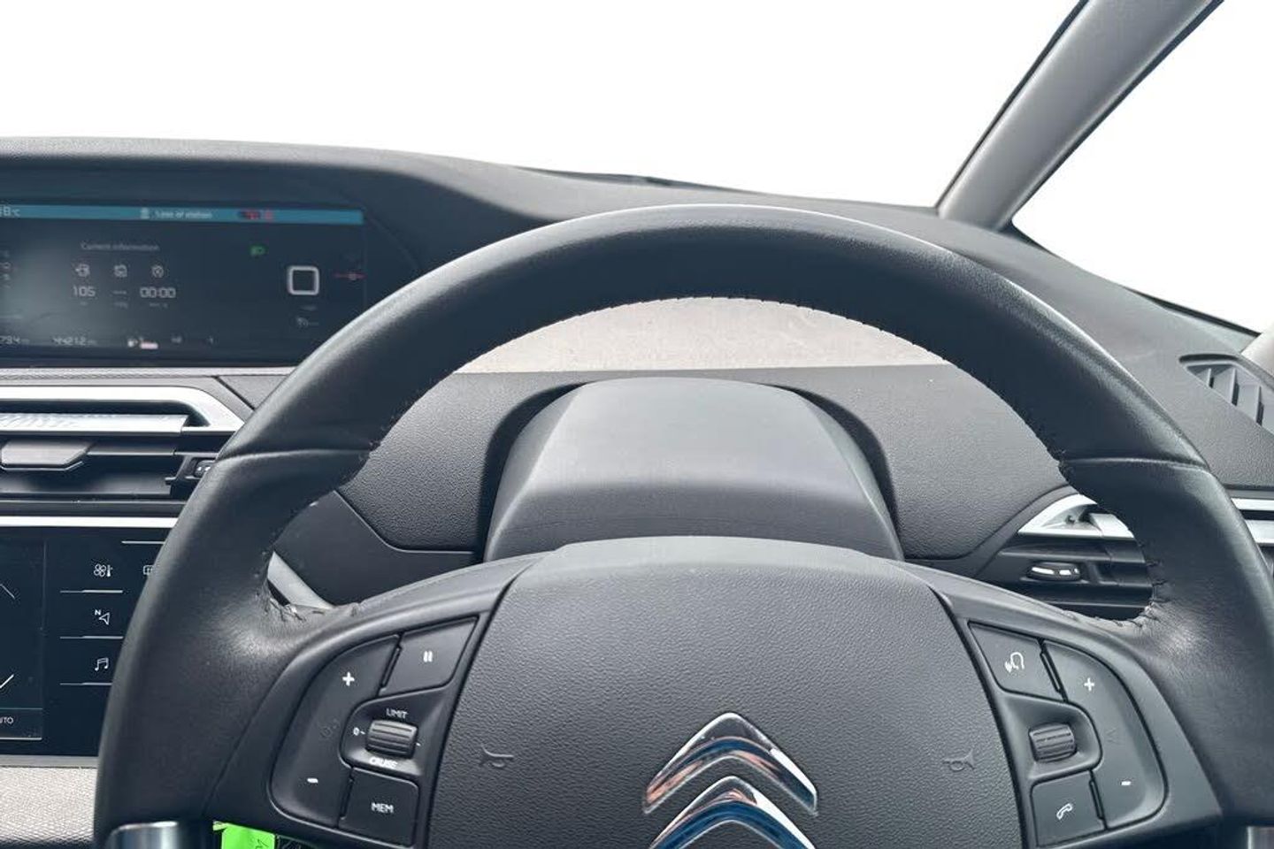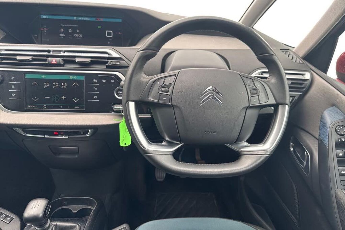 12" Panoramic HD central display, 7" Touch drive interface, Audible lights on warning, Citroen connect box emergency assist system, Citroen Connect Nav, Coffee Break Alert, Engine start button, Find my car feature, Flat tyre indicator, Front parking sensor, Gear efficiency indicator, Mirror screen with mirror link and car play, Power door closure, Rear parking sensor, Remote fuel cap release, Service indicator, Trip computer, Variable assistance power steering, Bluetooth hands free and media streaming, DAB Digital radio, RDS radio with 6 speakers and Aux socket, Steering wheel mounted controls, Aluminium front sill scuff protectors, Aluminium side profile with integrated roof bars, Automatic activation of hazard warning lights, Automatic lights and windscreen wipers, Body colour bumpers, Body colour door handles, Body colour electrically heated and folding door mirrors with LED indicators, Chrome lower front bumper insert, Cornering function, Electric adjustable door mirrors, Electric front/rear windows with one touch/auto up/down, Front fog lights, Halogen twin optic headlights, LED daytime running lights, Panoramic windscreen with sliding interior sun blinds, Rear wiper, Windows total closure mode, 12 volt accessory power socket in central storage compartment, 3 separate full size rear seats with adjustable recline angle, 8 lashing eyes in boot, Additional 12 volt sockets in row 2 and boot, Air vents for rear seat passengers, Automatic digital dual zone air conditioning, Black panel on/off instrument lighting, Boot light, Cup holders, Driver and front passenger seats adjustable armrests, Driver/passenger sunvisors and vanity mirrors, Fabric load cover (parcel shelf), Fixed centre storage box with sliding lid, Front and rear courtesy reading lights, Front door pockets with bottle holders, Front headrests, Front passengers seat flat folding, Front seat back storage pockets, Height adjustable front passenger seat, Height and reach adjustable leather steering wheel with 2 control zones, Height/tilt adjustable driver's seat, Illuminated and ventilated glove box, Illuminated centre console storage, Interior lights activated when doors unlocked, Massage function for driver and front passenger, Rear seats with individual sliding fore/after adjustment, Rear underfloor storage [row 2], Storage under driver and front passengers seat, Three ISOFIX mounting points with top tether on all rear seats, Three retractable rear head restraints, ABS with Electronic brakeforce distribution and Emergency braking assistance, Automatic electronic parking brake, Driver, front passenger, front lateral and curtain airbags, Electronic Stability Control (ESC) with intelligent traction control (auto re-activation 30mph+), Five 3 point inertia reel seat belts, Front inertia reel seatbelt with pre-tensioners and force limiters, Hill start assist function, Passenger airbag deactivate switch, Tyre pressure monitor, Unfastened seatbelt visual warning system on all seats + audible warning for driver/front passenger (front passenger presence detection), Immobiliser, Perimetric and volumetric anti theft alarm, Remote central locking + deadlocks, Aluminium dashboard trim and air vent surrounds, Two tone soft touch upper dashboard, 17" Boa alloy wheels, Space saver spare wheel