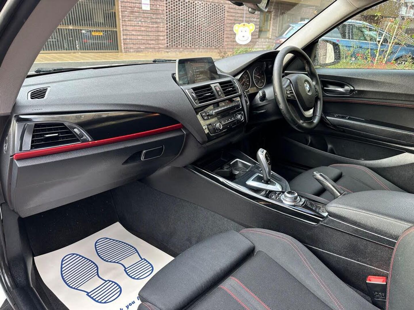 12V Power Socket - Centre Console, 12V Power Socket - Passenger Footwell, 12V Power Socket - Rear of Centre Console, 17in Alloy Wheels - Light Double Spoke Star - 655, 6.5in Colour Display Screen, ABS - Anti Lock Braking System, ADB Sport - Active Differential Brake, ASC - Automatic Stability Control, Air Conditioning - Automatic - Single Zone, Airbags - Curtain Head Protection system, Airbags - Driver, Airbags - Front Side, Airbags - Passenger, Airbags - Passenger Deactivation, Alarm System Thatcham 1 with Remote Control, Ambient Lighting - Switchable BMW Classic Orange - Cold White - LED, Armrest - Front and Rear Integrated into Door Trim, Armrest - Front with Sliding Adjustment, Auxiliary Input, BMW Emergency Call, BMW Mobility System, BMW Professional Radio - Single CD and MP3, BMW TeleServices, Battery Safety Cut Off, Bluetooth Hands Free with USB Audio Interface, Brake Assist, Brake Drying, Brake Pad Wear Indicator, Bumper - Rear with Black High Gloss Finisher, Bumpers - Body Colour, CBC - Cornering Brake Control, Central Locking - Remote, Check Control Warning System, Child Proof Locking System - Rear Doors, Child Seat ISOFIX Attachment - Rear, Crash Sensor - Activating Central Locking-Hazard Warning Lights-Fuel Cut Off, Cup Holders x2, DAB Digital Radio, DBC - Dynamic Brake Control, DSC - Dynamic Stability Control Plus, DTC - Dynamic Traction Control, Daytime Running Lights, Door Handles - Body Colour, Door Mirrors - Body Coloured, Door Mirrors - Electric and Heated, Door Sill Finishers - Sport Designation, Drive Performance Control - ECO PRO - Comfort - Sport and Sport Plus, Dynamic Brake Lights, Electric Windows - Front Open and Close Fingertip Control, Engine Immobiliser, Exhaust Tailpipes - Dark Chrome, Extended Storage, First Aid Kit, Floor Mats - Velour, Follow Me Home Headlight Function, Front Air Inlet with High-Gloss Black Finisher, Front Fog Lights, Gear Knob - Leather, Glove Compartment - Opener with Chrome Trim, Grab Handles - Integrated in Roof Lining x4, Halogen Headlights, Handbrake - Leather, Head Restraints - Rear and Folding, Headlights - Automatic Activation, Headlights - Beam Throw Control, Heat Protection Glazing with Green Tint, Heated Windscreen Washer Jets, High Level Third Brake Light, Hill Start Assist, Incorrect Fuelling Protection System, Interior Lighting - Front and Rear Centre, Interior Trim - Black High Gloss, Interior Trim Finisher - Coral Red, Kidney Grille - Extra Wide High Gloss Black Vertical Slats, Lights-on Audio Warning, Locking Wheel Bolts, Luggage Compartment - Lashing Eyes, Multifunction Controls for Steering Wheel, OBC - On-Board Computer, Personal Profile, Power Socket - 12V in Luggage Compartment, Power Steering - Electric, Rain Sensor, Roof Mouldings - Body Colour, Run Flat Tyres, Seats - Driver Manual Adjustment, Seats - Passenger Manual Adjustment, Seats - Split Rear 60-40, Shark Fin Aerial, Smokers Package Deletion, Speakers x6, Speed Limit Function, Sport Seats - Front, Start-Stop Button with Comfort Go Keyless Engine Start, Steering Column with Manual Reach and Rake Adjustment, Steering Wheel - Leather - Sports with Red Stitching, Storage Compartment in Rear Centre Console, Storage Nets on Seat Backrests, Sun Visors with Illuminated Vanity Mirrors and Ticket Pocket, TPMS - Tyre Pressure Monitoring System, Trim Designation Deletion, Warning Triangle, Welcome Lighting, Driver Comfort Package, Enhanced Bluetooth Telephone Preparation with USB Audio Interface
