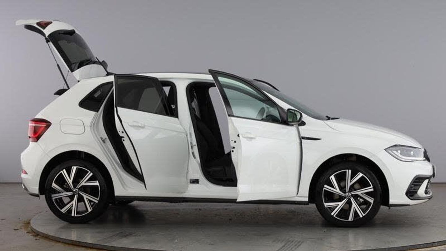 Special solid - Pure white with deep black pearl roof, Front wheel drive, Rear side wing doors, Third brake light, ABS, Adaptive cruise control with follow-to-stop and speed limiter, Manual child lock in rear doors, Headliner in recycled material, Karoso artvelours cloth upholstery, Standard pedal cluster, Three spoke leather wrapped multifunction steering wheel with shifting paddles, Driver/passenger sunvisors with illuminated vanity mirrors, Front and rear 6 speakers, Travel Assist - Lane keeping system and traffic jam assist, Trip computer, Start-stop system with battery regeneration (recuperation - energy recovery during braking), Black dashboard, Chrome applications on rotary light, window regulator switches, outlet with frame in black, Isofix child seat preparation easy-fit (for two outer rear seats, and front passenger seat) compatible with I-size, Light and sight pack - Polo R-Line/Black Edition, Low rolling resistance tyres, [Audio and Communications]12V power socket in centre console, 2 USB-C ports in the front, 2 USB-C charging sockets on the center console in the rear, Bluetooth mobile phone interface, Preparation for We connect and We connect plus, Wireless app connect, DAB Digital radio, Emergency call service, [Drivers Assistance]Advanced driver attention and drowsiness monitor, Dynamic road sign display, Multifunction camera, Tyre pressure loss indicator, front and rear, Speedo and rev counter, electronic odometer, trip, service interval display and fuel gauge, Washer fluid level indicator, [Exterior]Electric front windows, Heat insulating glass windscreen, Rear electric windows, Body colour bumpers, Body colour door handles, Front scuff plates with Black edition logo, Front/rear disc brakes, Power folding adjustable/heated exterior mirrors and front passenger exterior mirror lowering function, Black roof pack - Polo, Anti-theft wheel bolts, 17 York alloy wheels, [Illumination]IQ LED matrix headlights pack - Polo, [Interior]Rear fog light, Drivers and front passengers safety optimised head restraints, Carpet mats, Air care climatronic air conditoning system with active combination filter and 2-zone temperature control, Black roof lining, Chrome plated radiator grille inserts, air vent surrounds and light switch surrounds, Door and side trim panel, Front centre armrest, Handbrake lever handle in leather, Leather trimmed gear knob, Luggage compartment cover, Luggage compartment floor, Stainless steel pedals, Front footwell illumination, LED interior light with switch off delay and dimmer, 2 reading lights front and rear, Luggage compartment lighting, Diversity antenna for FM reception, Digital Cockpit Pro with 10.25 Display, mirror adjustment, Dark grey anodised matt decorative inserts in dash and front door panels, 3 rear head restraints, 60/40 split folding rear seat and rear seat bench not split, Driver and front passenger seat height adjustment, Front seat backrest storage pockets, Front sports comfort seats, Heated front seats, Lumbar adjustment for front seats, Single front passenger seat, [Performance]Rear shock absorpion, Power assisted speed sensitive steering, Standard rear axle, [Safety and Security]Rear windscreen washer and wiper with interval delay, ESC (Electronic stability control) + EDL (Electronic Differntial lock) and ASR (Traction control), Hill hold control, 3 point height adj front seatbelts + pretensioners, 3x3 point rear seatbelts, Driver and front passenger airbag with front passenger airbag deactivation, Extended and predictive pedestrian/ cyclist protection, Front curtain and side airbags with center airbag, Single tone horn, Travel assist including emergency assist, Warning signal and warning light for front and rear seatbelts not fastened, Alarm with interior protection, Anti-theft alarm system with interior monitoring, backup horn, and towing protection, Electronic engine immobiliser