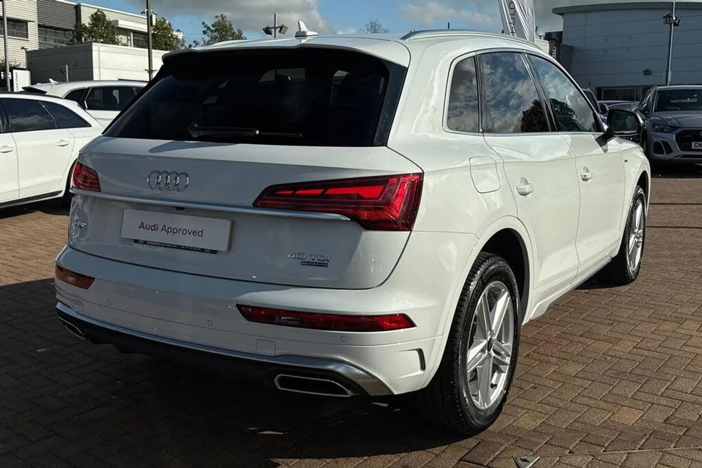 ;Discover the perfect balance of performance, practicality, and premium styling with this Approved Used Audi Q5 S line 40 TDI quattro, finished in the elegant and timeless Glacier White Metallic. This mid-size SUV delivers refined diesel efficiency, confident quattro all-wheel-drive handling, and the sophisticated presence expected of the Audi brand. Powered by a robust 2.0-litre 40 TDI diesel engine, this Q5 offers a smooth and responsive driving experience, with 204 PS on tap and Audi?s renowned quattro system providing confident traction in all conditions. Paired with a 7-speed S tronic automatic transmission, the drive is both effortless and efficient, making it ideal for everything from city commutes to long-distance touring. The S line trim adds a sportier edge, with enhanced styling elements such as sculpted bumpers, S line badging, and privacy glass, all complemented beautifully by the crisp Glacier White paintwork. LED headlights and dynamic rear indicators not only add to its premium appearance but also improve visibility and safety. Inside, the Q5 offers a refined and spacious cabin with luxury materials and a clean, driver-focused layout. Sports seats in leather and Alcantara, a flat-bottomed S line steering wheel, and aluminium inlays elevate the interior ambiance. The intuitive MMI Navigation Plus system, Audi Virtual Cockpit, and a responsive central touchscreen keep you connected and in control, while features like front and rear parking sensors, cruise contr...
