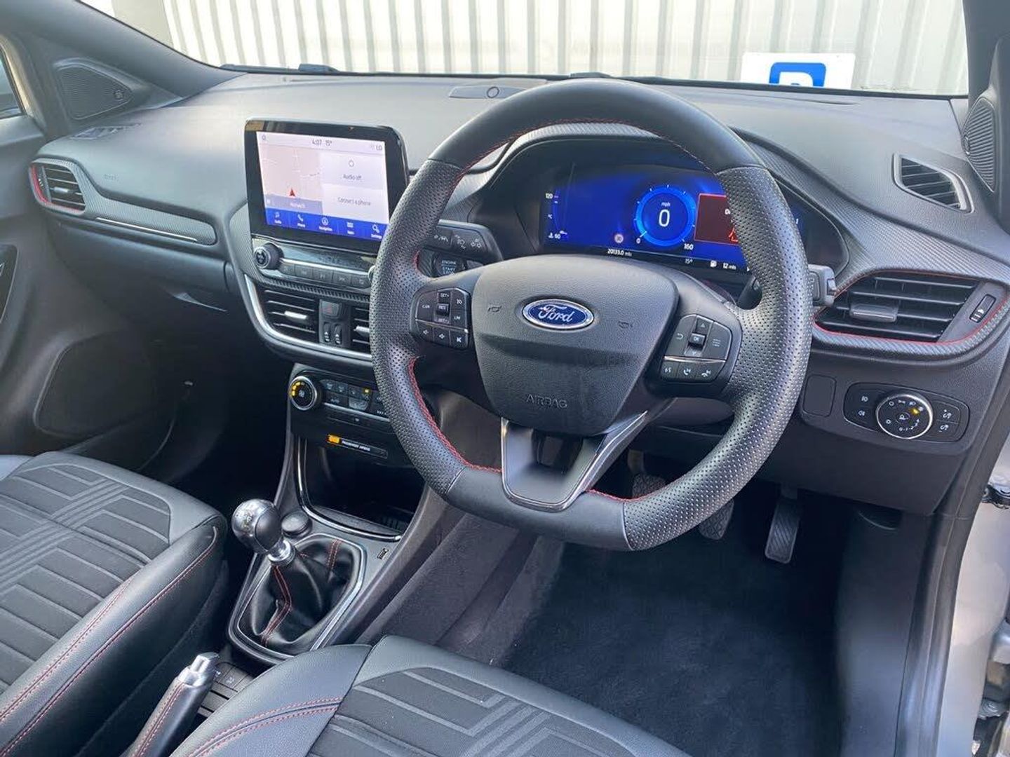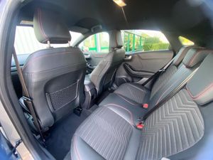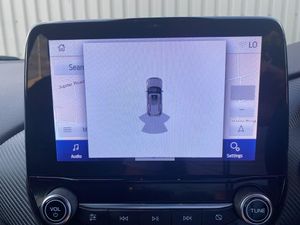Driver impairment monitor, Emergency call service, Ford easy fuel, Full digital 12.3" instrument cluster, Lane keeping aid with lane departure warning, Power assist steering, Power start button, Rear parking sensor, Selectable drive modes(Normal, sport, Eco, trail, slippery), Speed sign recognition, Sport suspension, Automatic headlights with auto high beam, Automatic rain sensing wipers, Front fog lamps, LED daytime running lights, LED rear lamps, Power foldable heated door mirrors with puddle lamps, Privacy glass to side rear windows and tailgate glass, Quickclear heated windscreen, Rear side wing doors, Rear wiper, ST-Line body styling kit with unique grille and large body colour rear spoiler, Third brake light, 3 seat bench in 2nd row, Centre console with armrest and stowage, Ford megabox extended bootspace, Front and rear head restraints, Front floor mats, Manual 4 way driver seat adjust with lumbar adjustment, Manual 4 way passenger seat with lumbar seat adjustment, Sensico partial premium upholstery, Single front passenger seat, ST-Line flat bottomed sensico leather steering wheel with leather handbrake and aluminium gear knob, Wireless charging pad with electronic air temperature control (EATC), B&O Premium Audio system + Ford SYNC 3 navigation pack - Puma, 3 rear seatbelts, Child safety lock, Electronic stability control (ESC) and hill start assist, Pedestrian/cyclist detection & post-collision braking, Pre collision assist system, Tyre pressure monitoring system (TPMS), Thatcham alarm, Carbon look interior deco spears